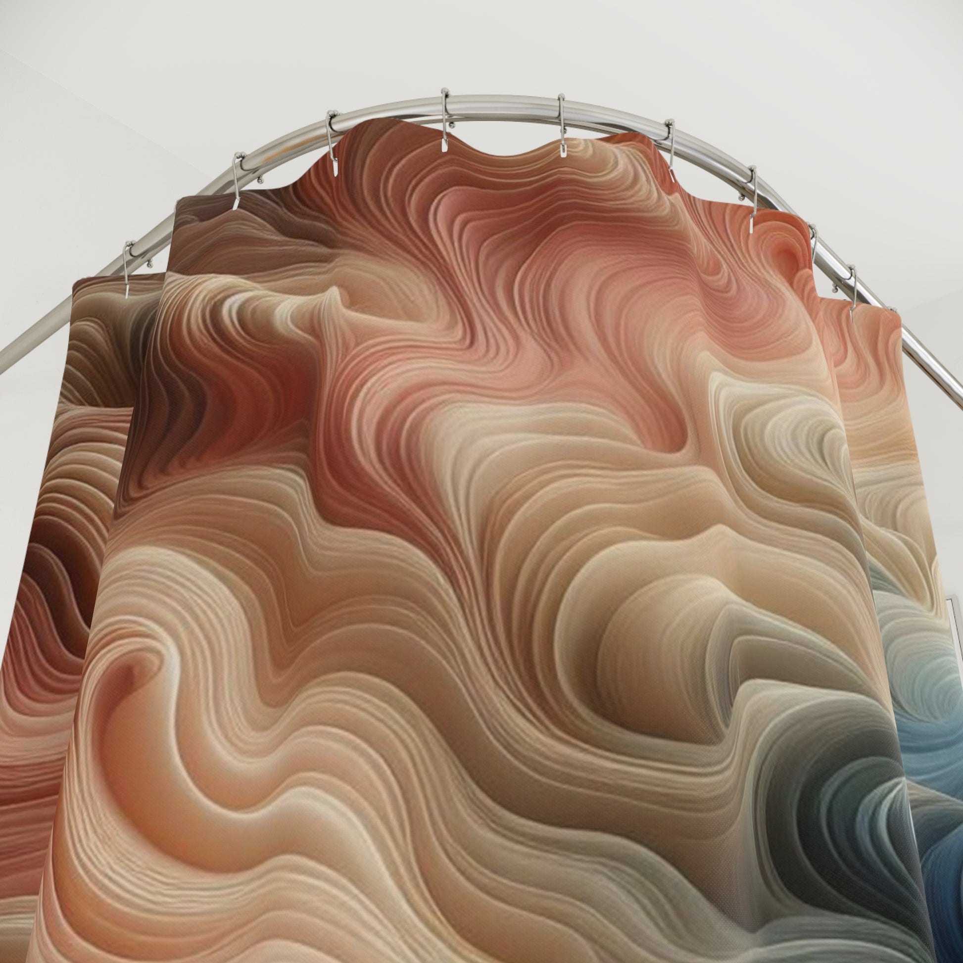 Abstract Fluid Swirl Shower Curtain — Earthy Tones Bathroom Decor