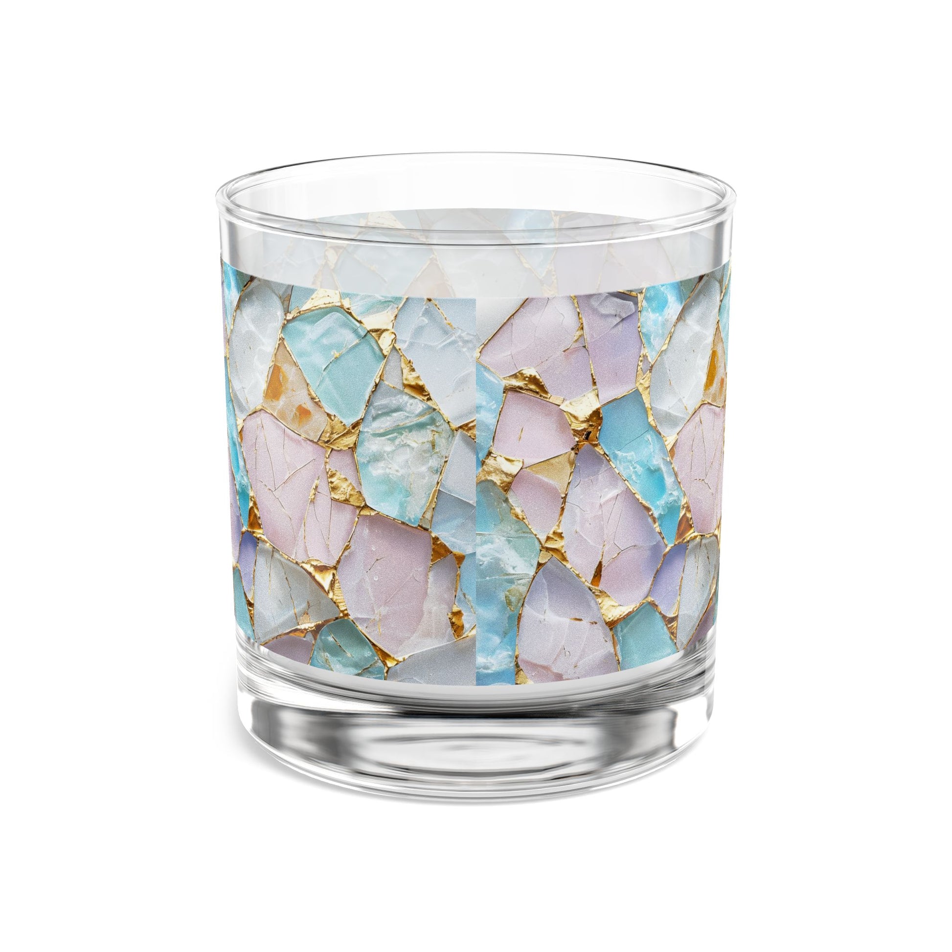 Artisan Mosaic Rocks Glass, 10oz - Geometric Design, Colorful Drinkware