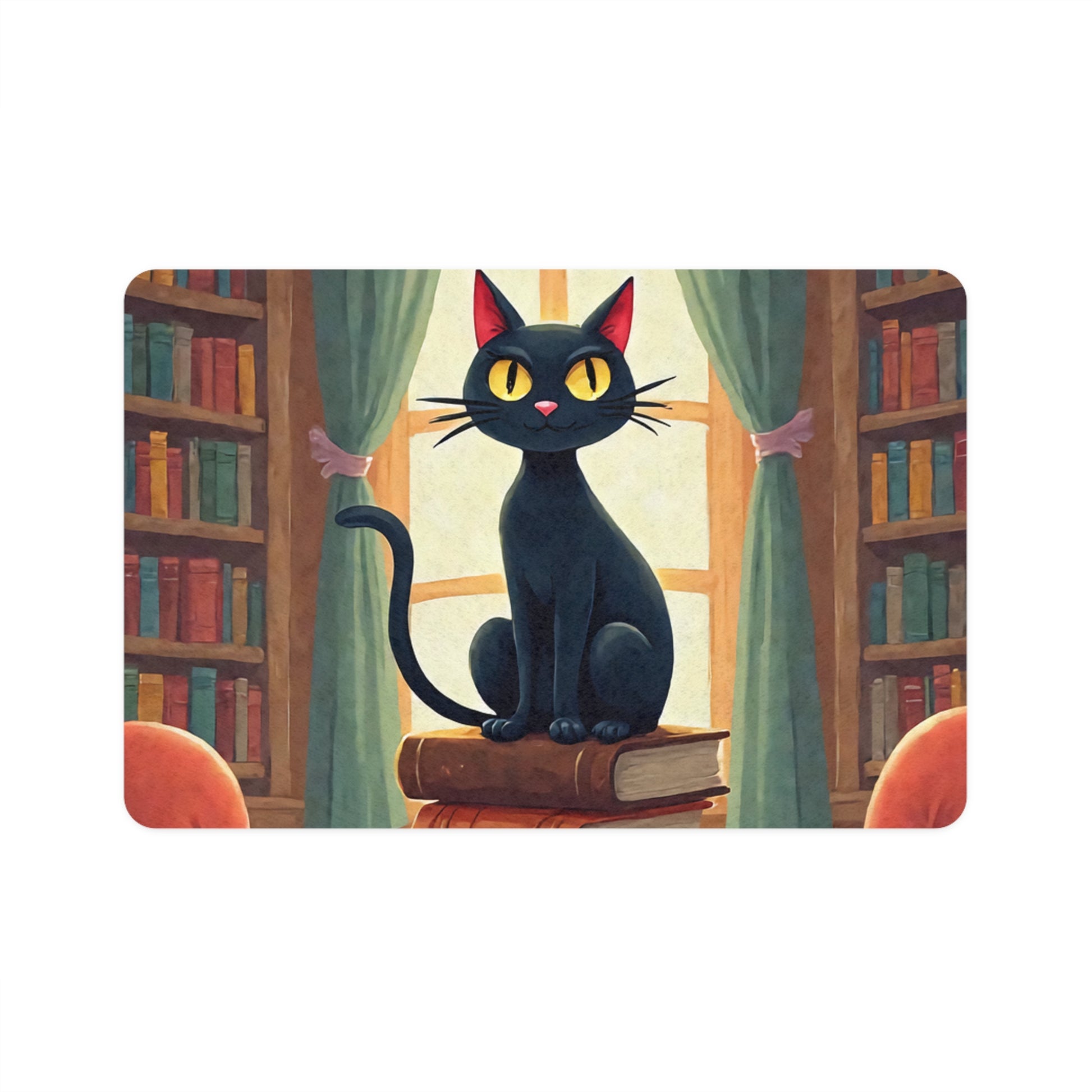 Black Cat Library Pet Food Mat (12x18) - Cute Cat Feeding Mat for Cats & Small Dogs