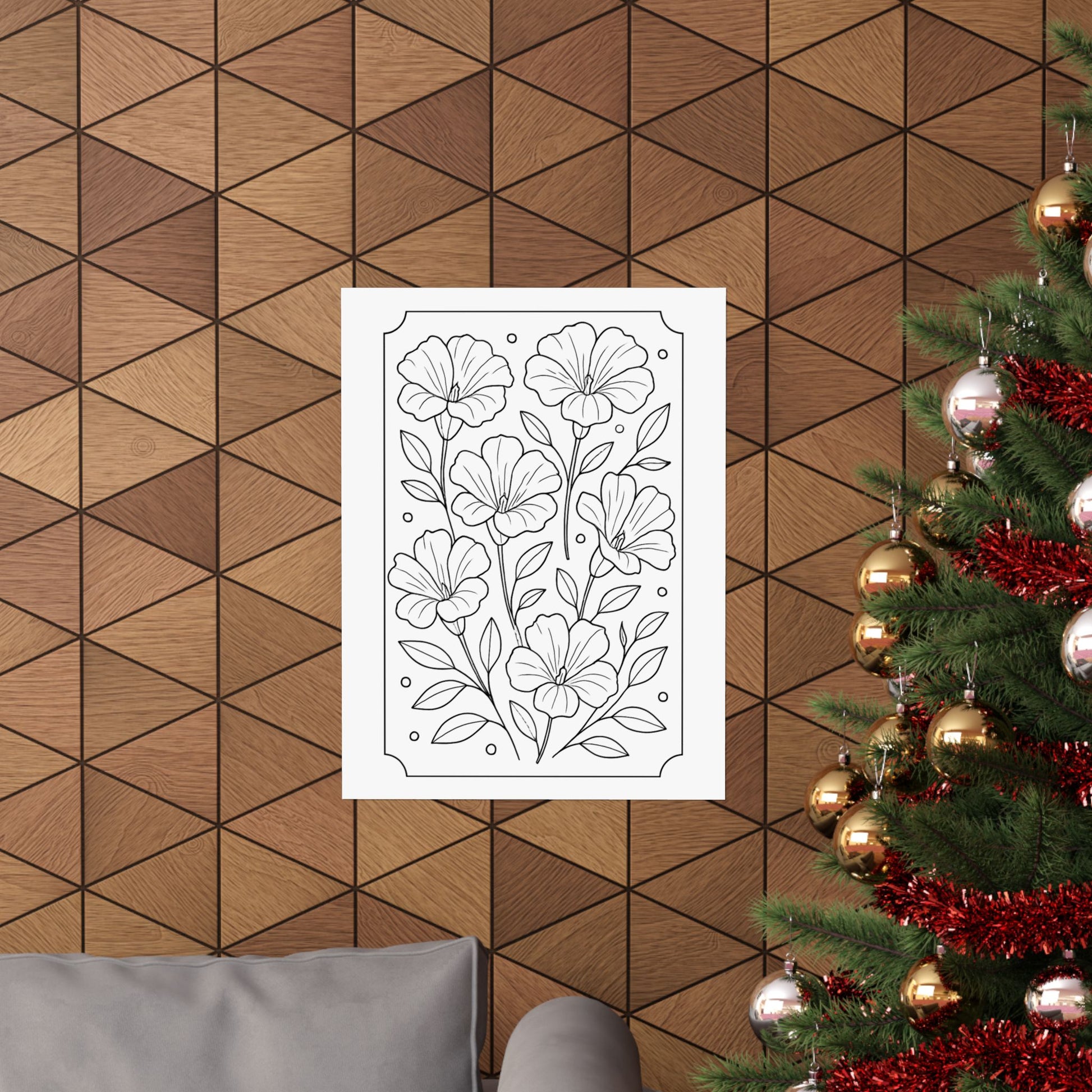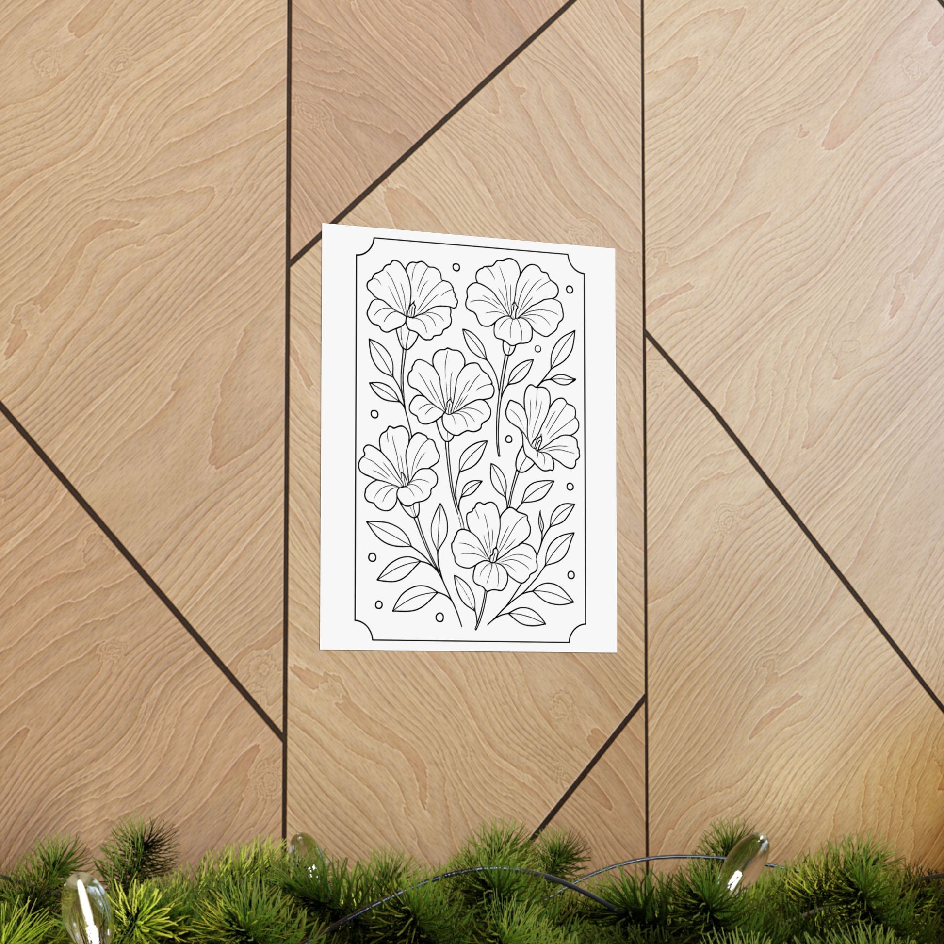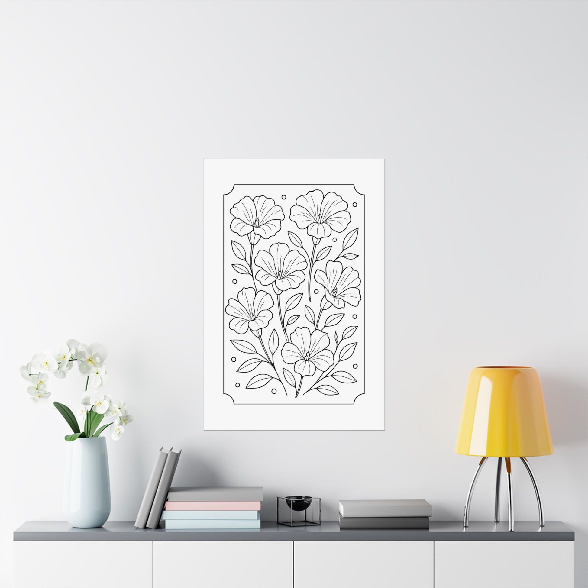 Botanical Line Art Poster — Matte Vertical Floral Wall Art - DIY