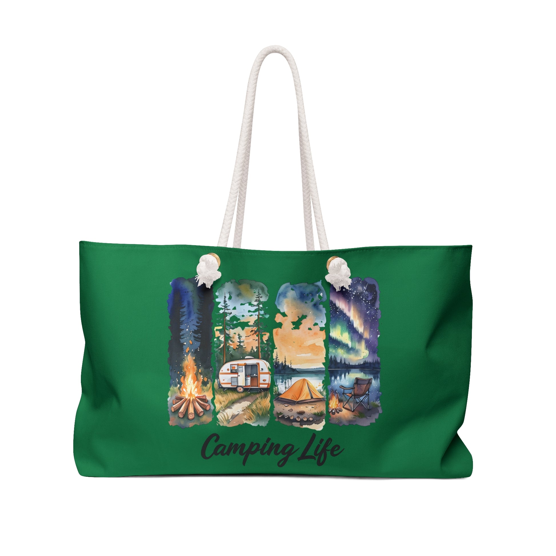 Camping Life Weekender Bag - Outdoor Travel Duffel with Campfire, Tent & RV Design