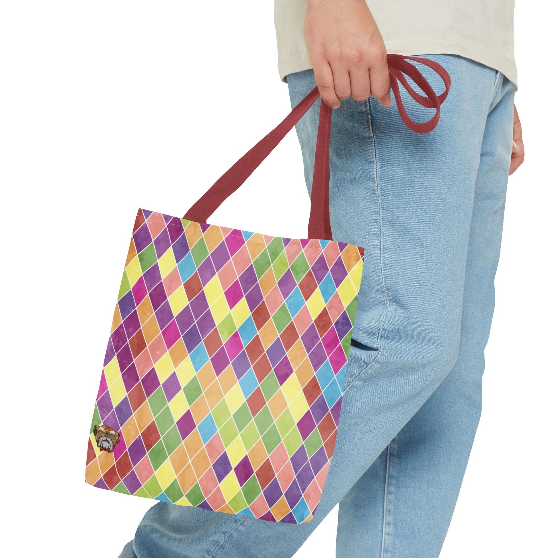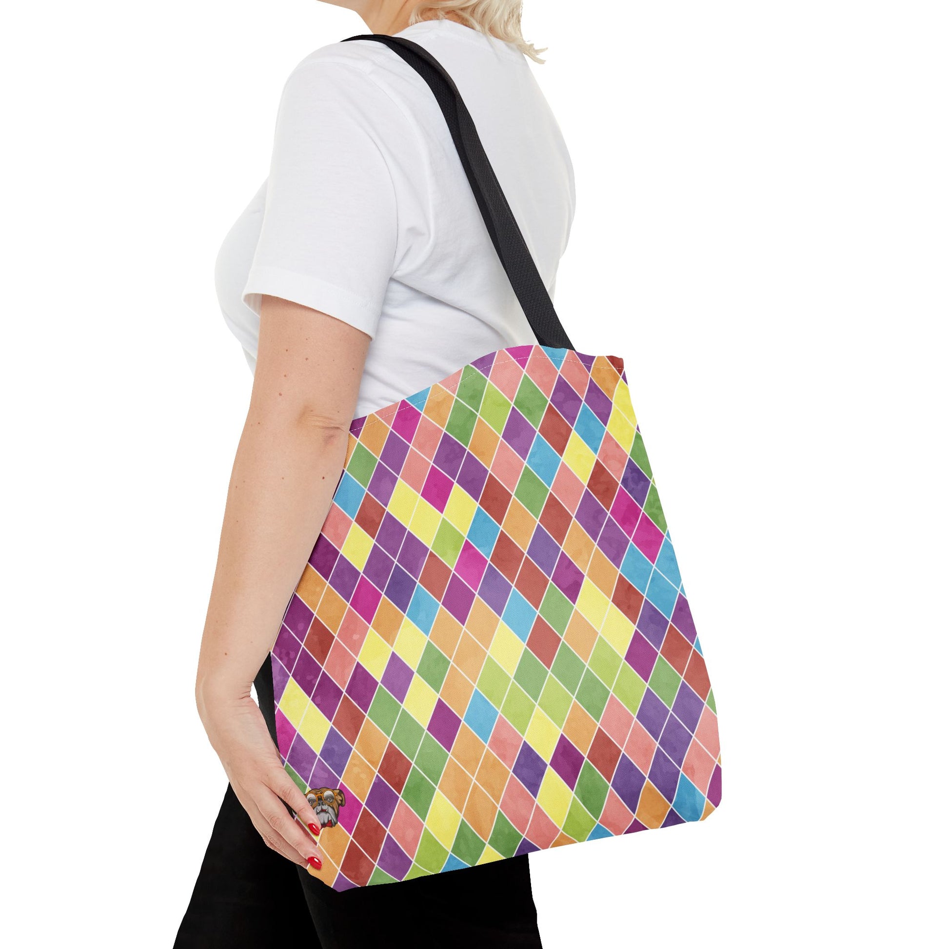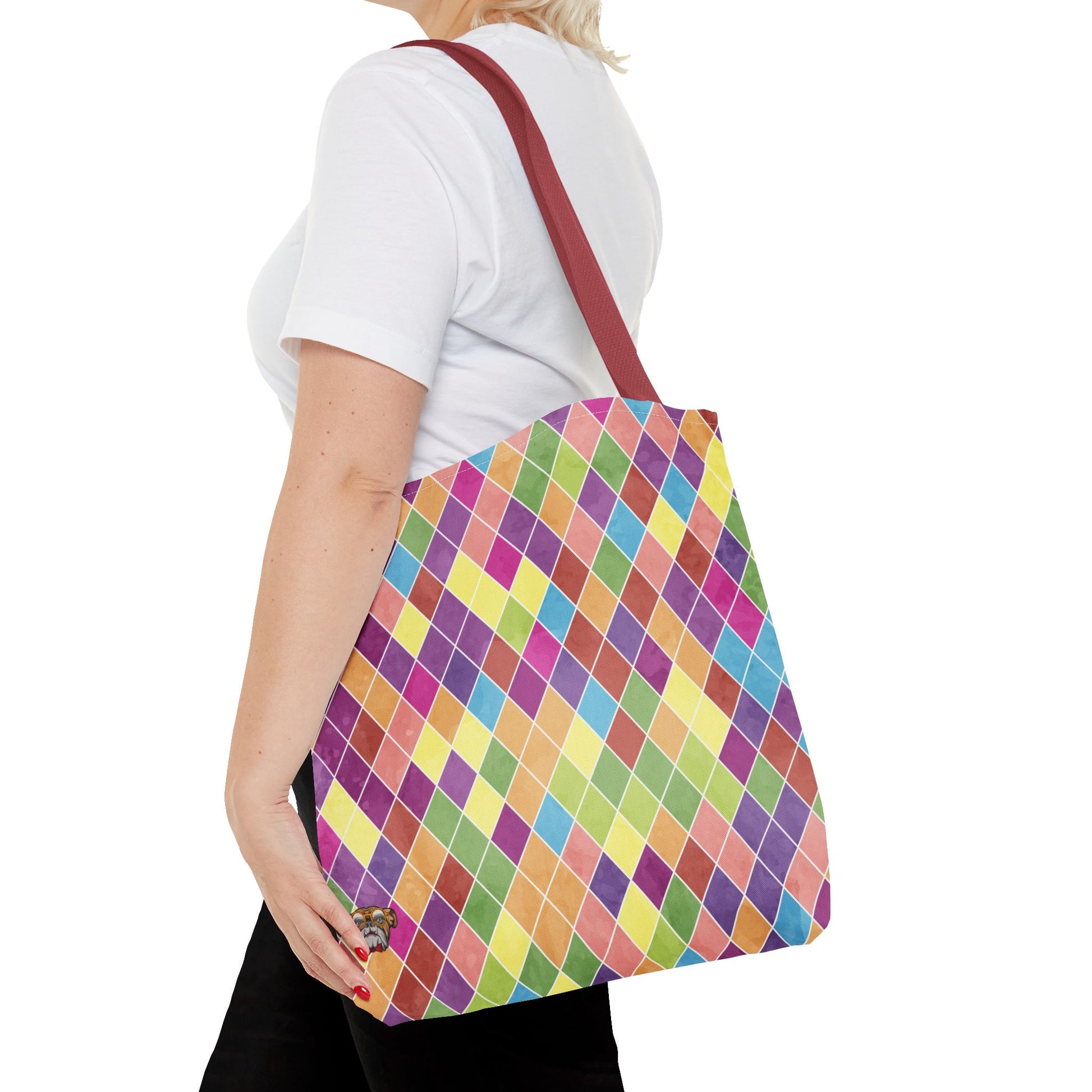 This vibrant tote bag is perfect for those who love to showcase their unique style while staying practical. With its colorful geometric pattern, it adds a cheerful touch to any outfit. Ideal for everyday errands, beach trips, or as a stylish carryall for your yoga gear, this tote is designed for fashion-forward individuals looking to express their personality. It's an excellent choice for gifts during celebrations like birthdays or holidays, ensuring your loved ones feel special. Support local artisans while enjoying a blend of functionality and flair with this eye-catching accessory!