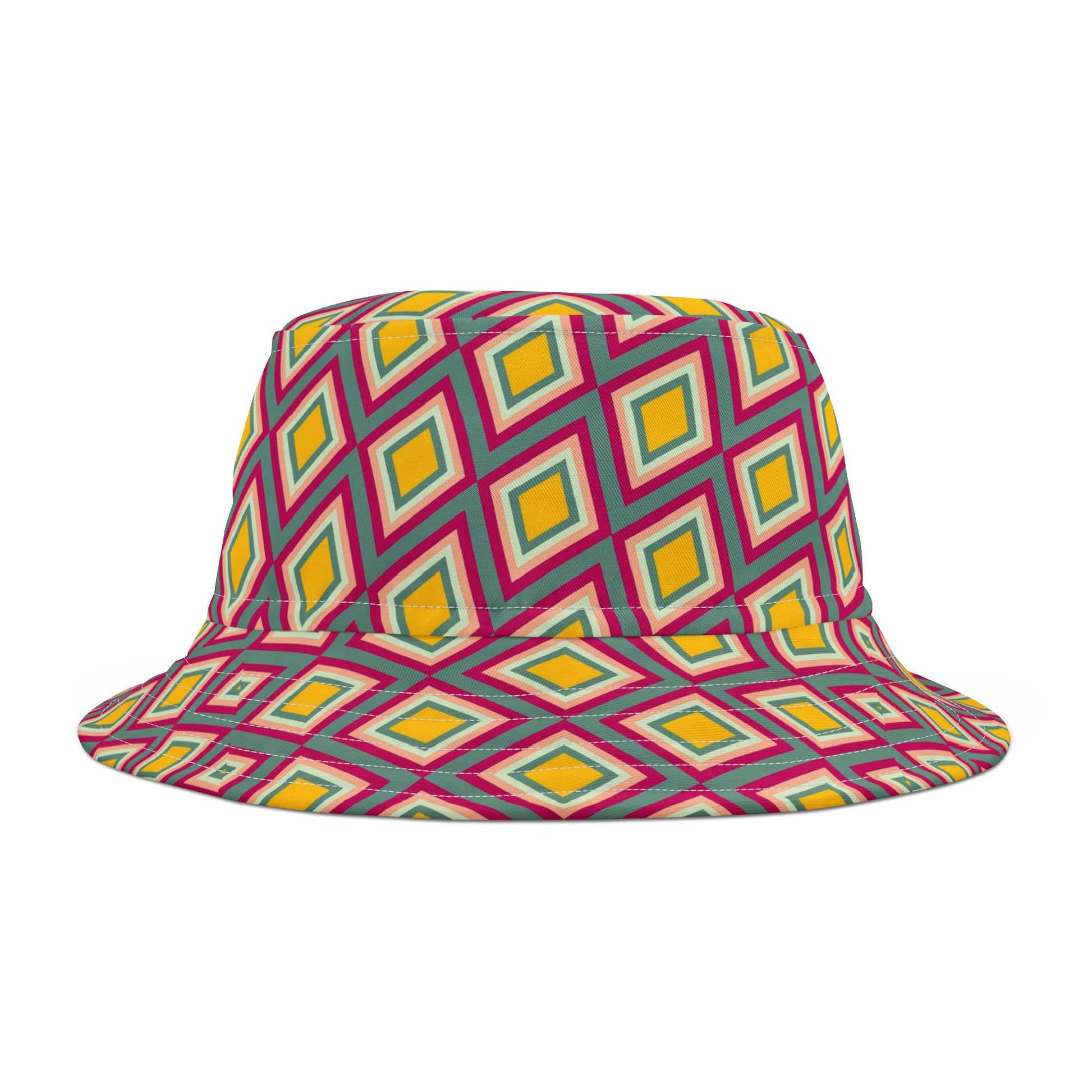 Diamond Geo Print Bucket Hat — Colorful Retro Festival Sun Hat