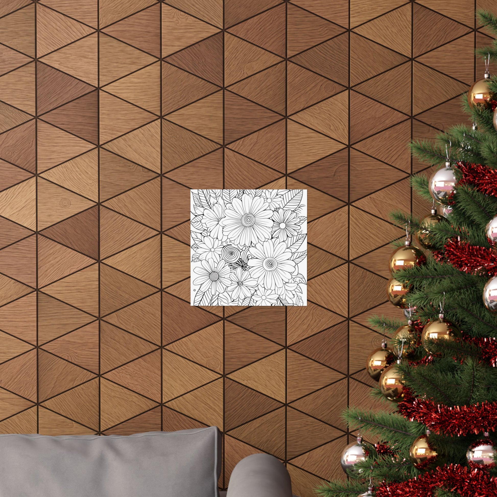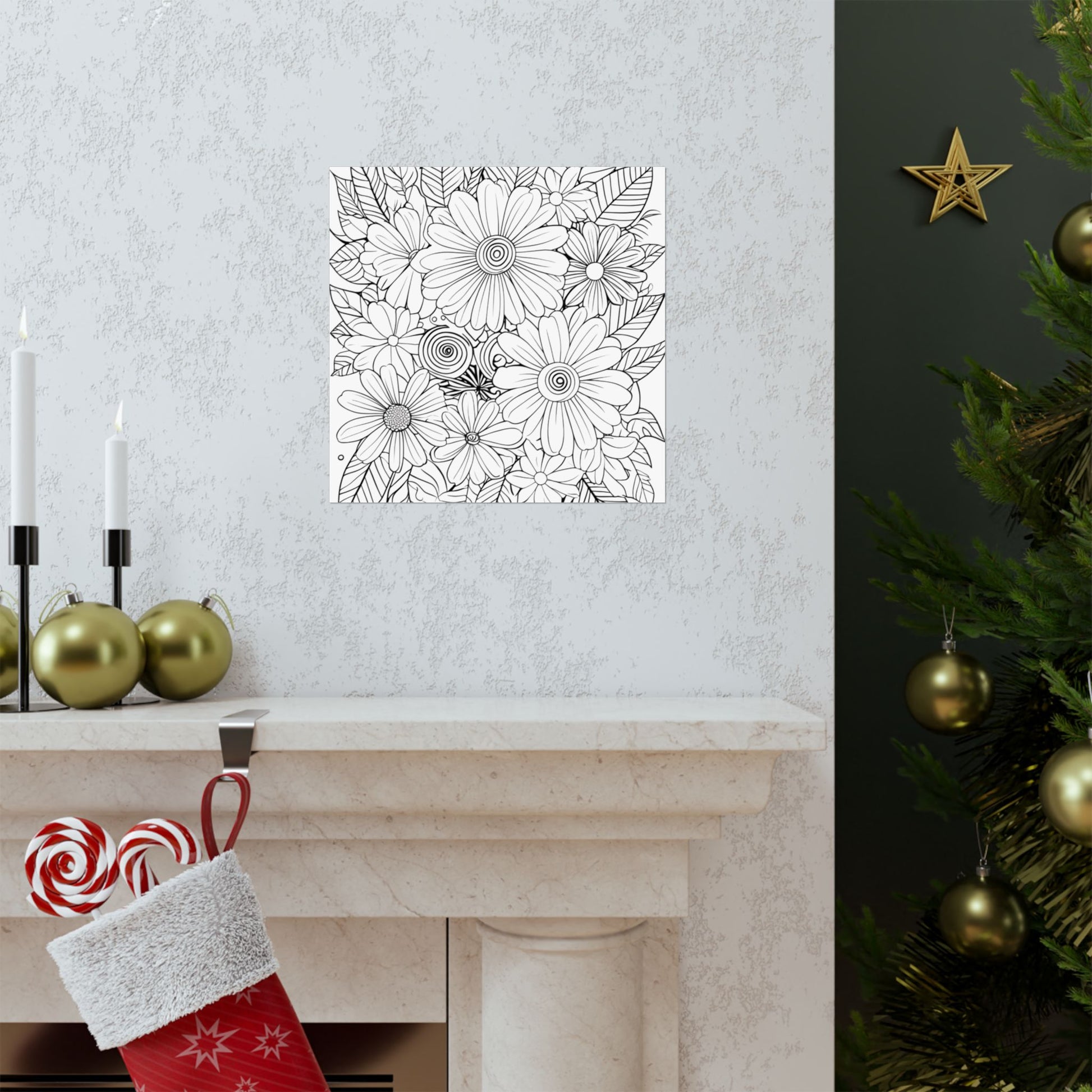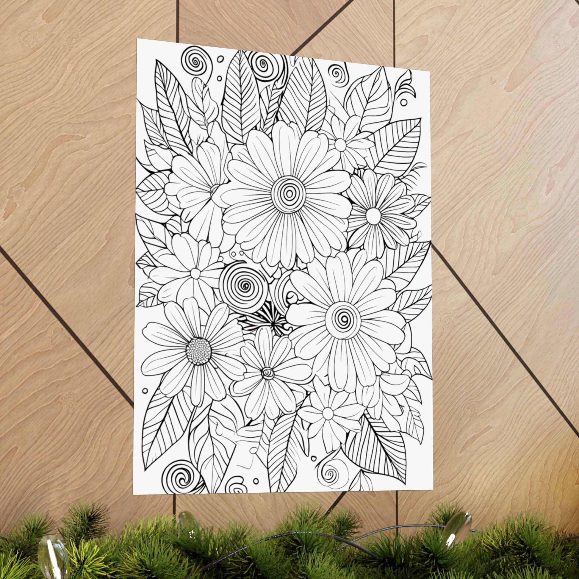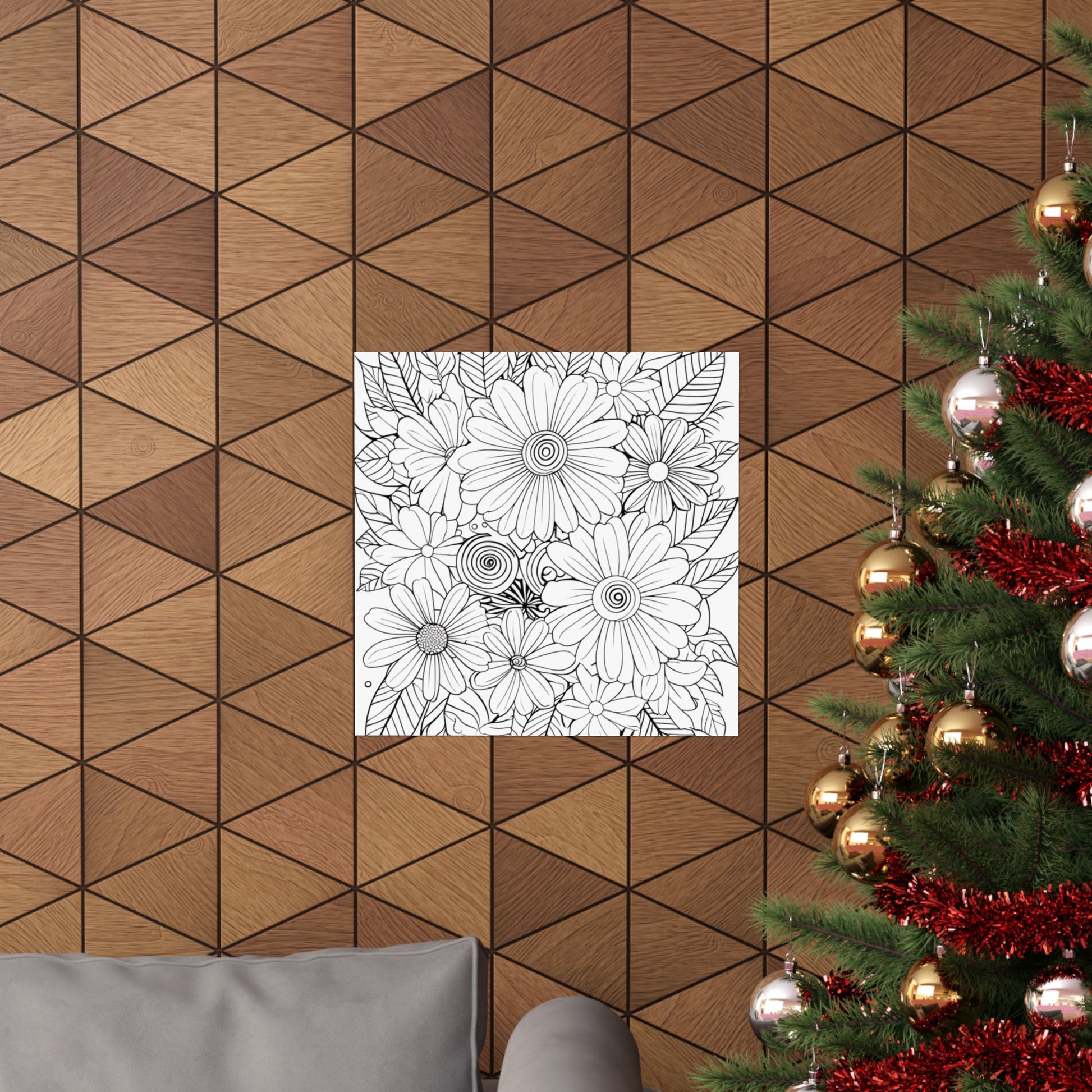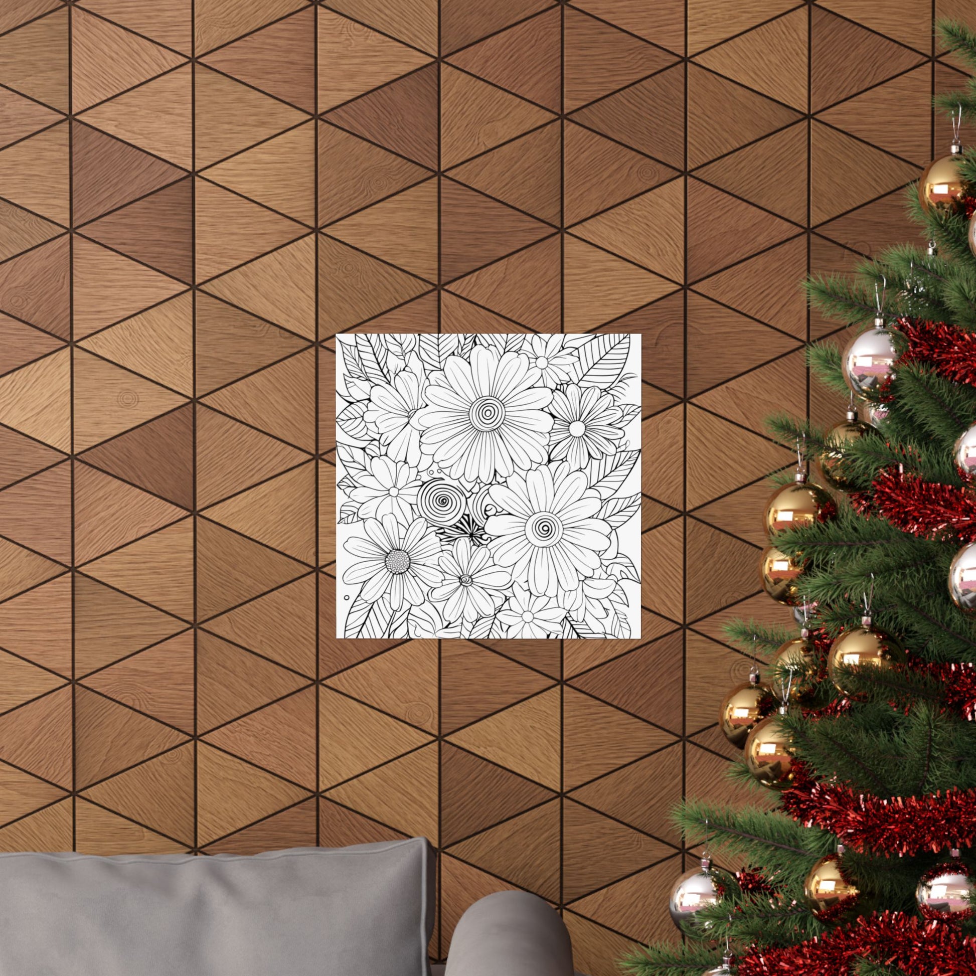 Hand-drawn blossoms and layered leaves fill the page in this matte vertical poster, waiting for color or standing beautifully as a monochrome statement. The fine-line floral composition brings a calm, meditative energy — like a quiet afternoon in a sunlit garden where you can slow down and notice the small details. Hung in a studio, reading nook, or hallway, it invites close-up moments: tracing petals with a fingertip, imagining palettes, or simply enjoying the rhythm of repeating shapes. The archival, museum-grade paper and giclée printing keep those delicate lines crisp and the blacks deep, so the artwork maintains its presence without glare thanks to the soft matte finish. Available in many sizes for framed or unframed displays, this poster is made for indoor spaces that value subtlety, craftsmanship, and a gentle, botanical mood.