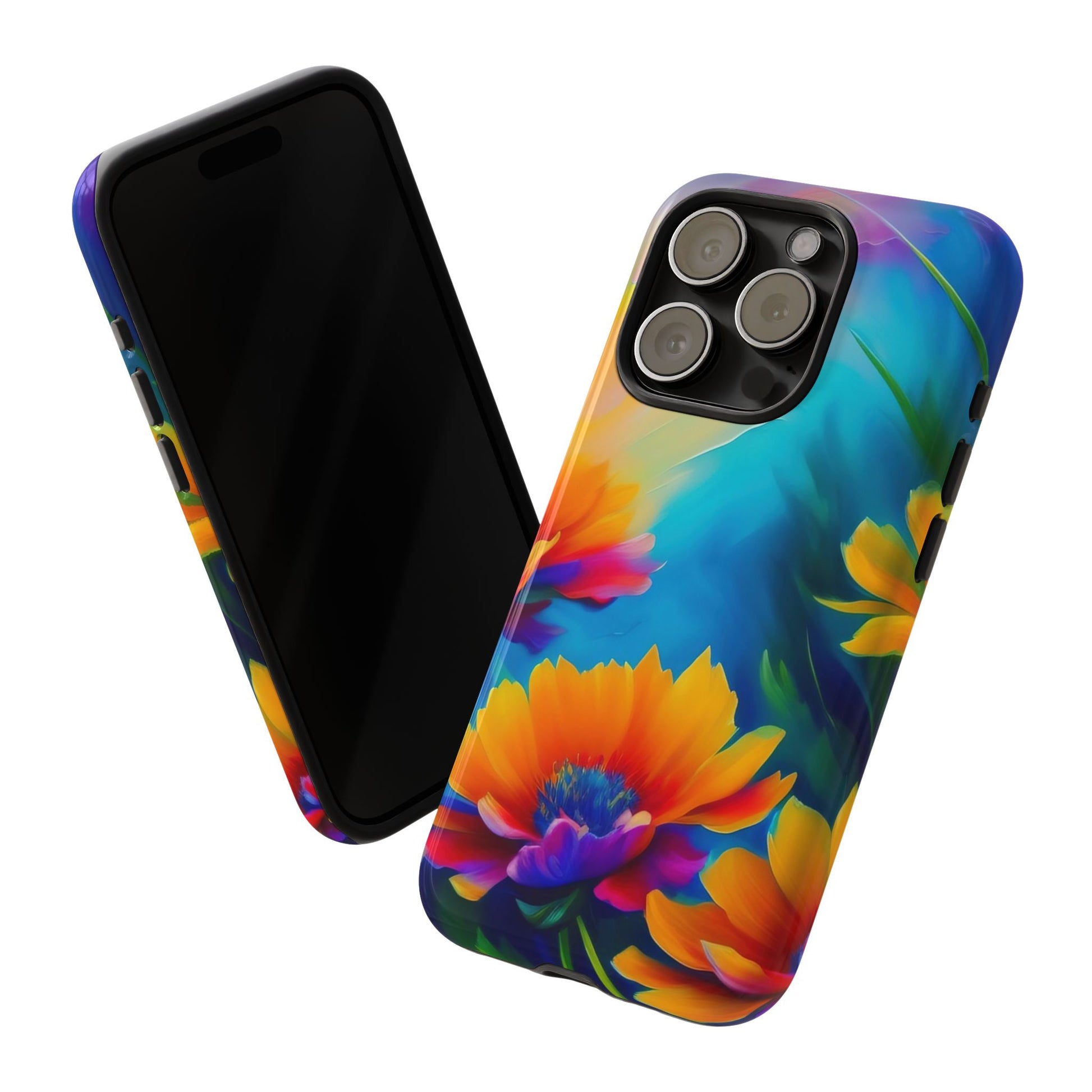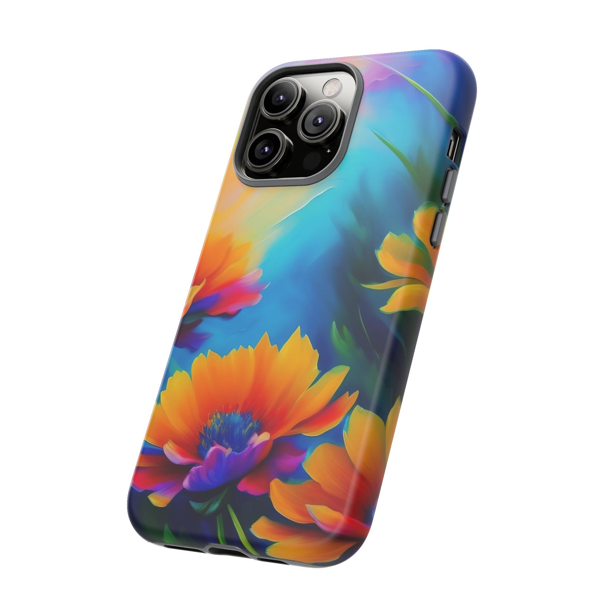 Floral Burst Tough Phone Case — Vibrant Watercolor Flowers Protective Cover