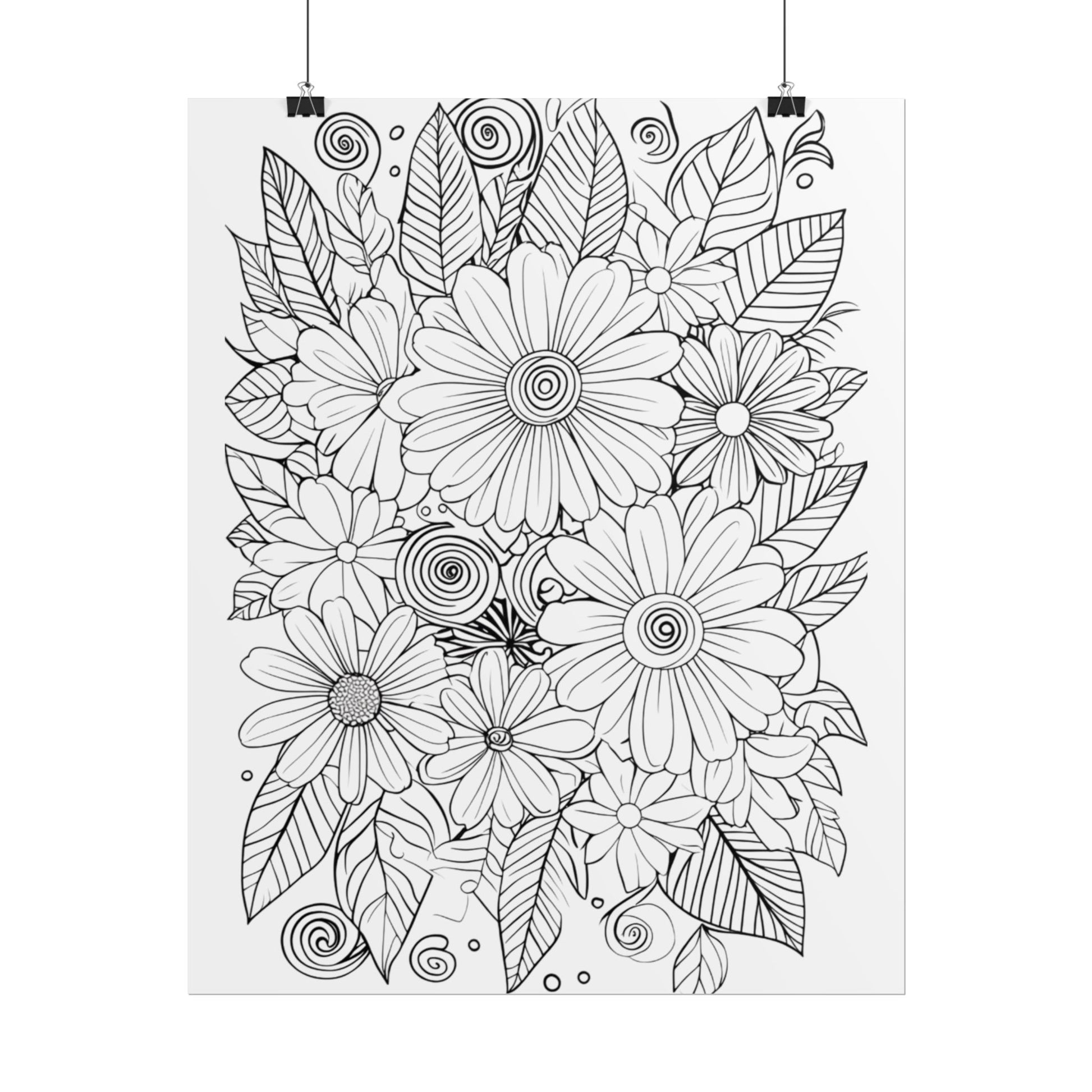 This rolled poster brings a hand-drawn floral coloring-page aesthetic into bright, archival-quality prints. The intricate daisy-and-leaf illustration invites quiet focus — great for someone who loves detailed linework, meditative coloring, or botanical-themed décor. Choose from fine art, semi-glossy, or matte paper to suit how you plan to display or color it: textured fine art for a painterly, archival feel; semi-glossy for sharp, vivid contrast; or matte for a softer, low-sheen finish. Available in multiple sizes and both horizontal and vertical layouts, the poster ships rolled for safe, crease-free delivery and can be framed or clipped for an instant focal point in a studio, craft nook, or calm living space.