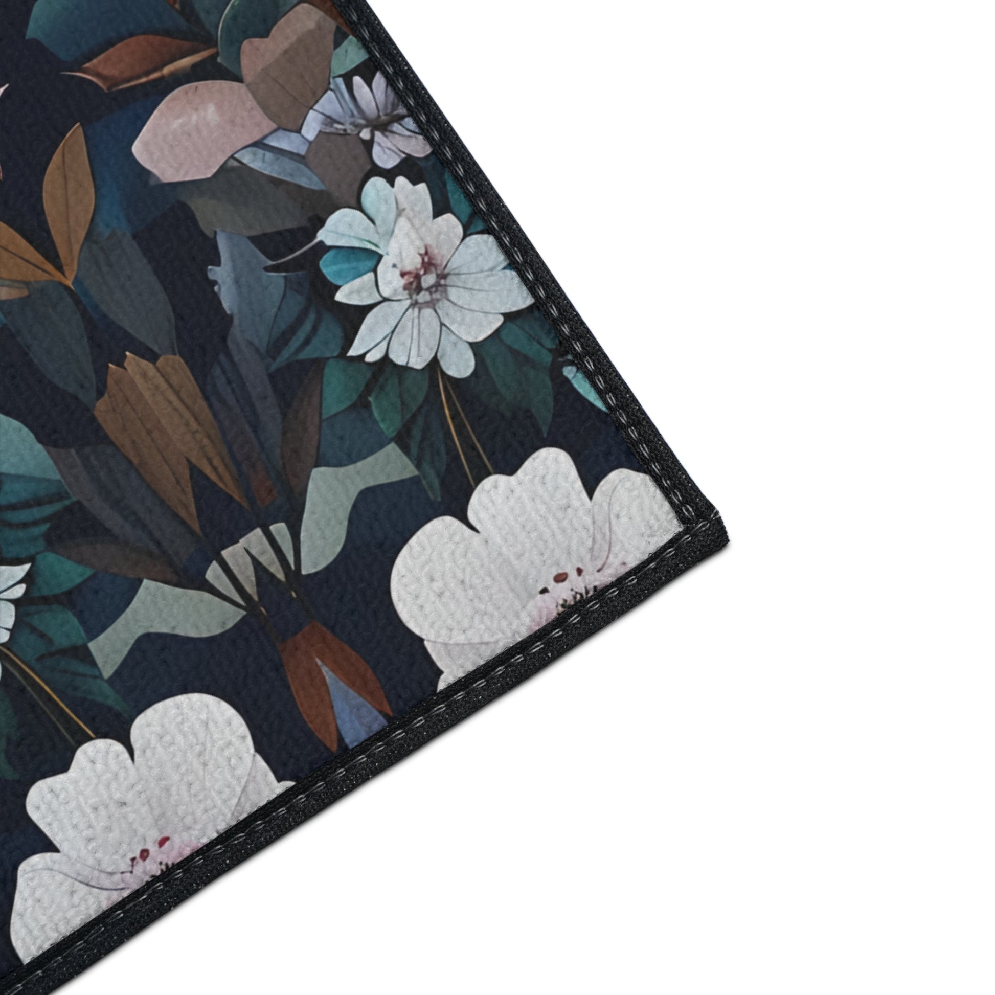 Floral Heavy Duty Floor Mat — Dark Botanical Non-Slip Door Rug