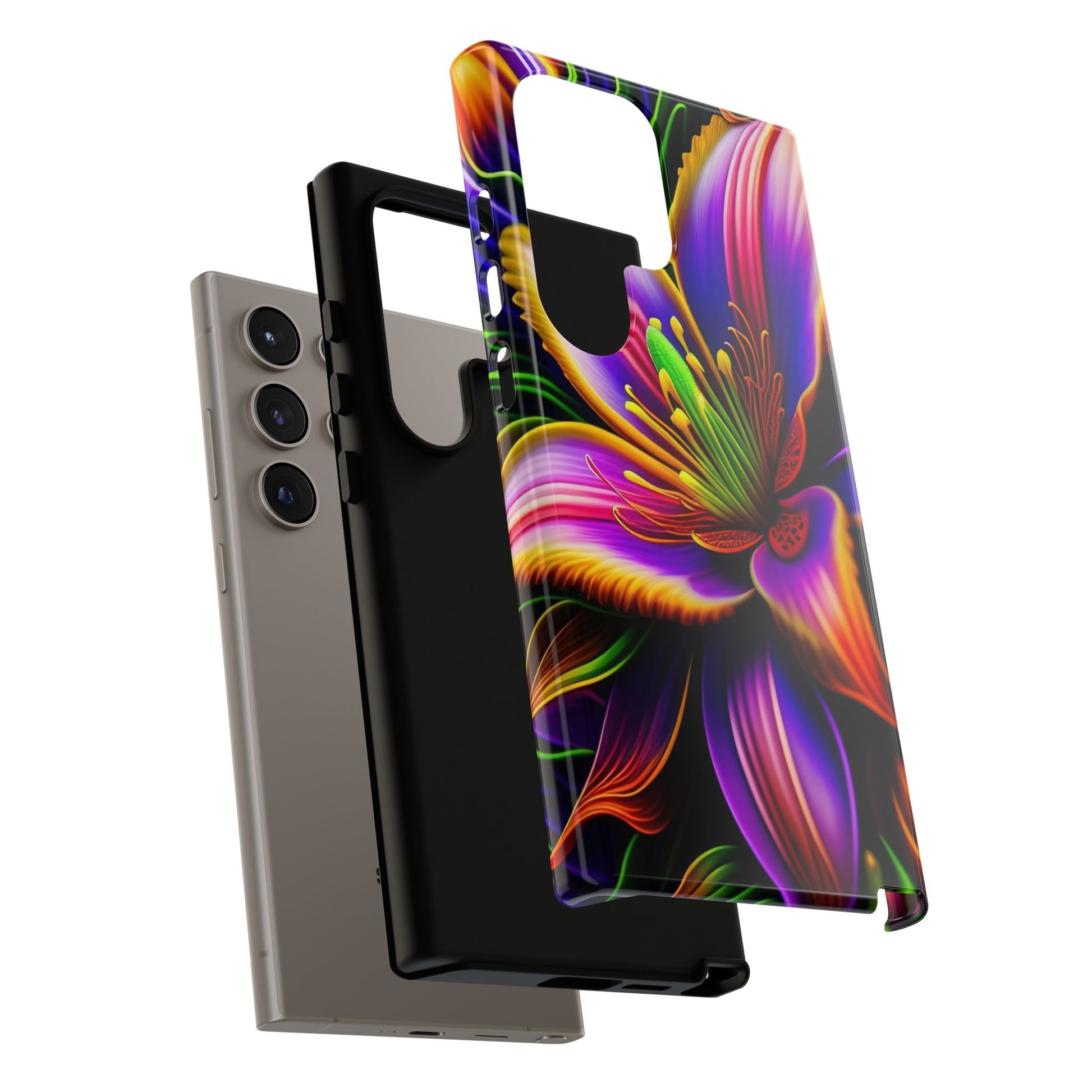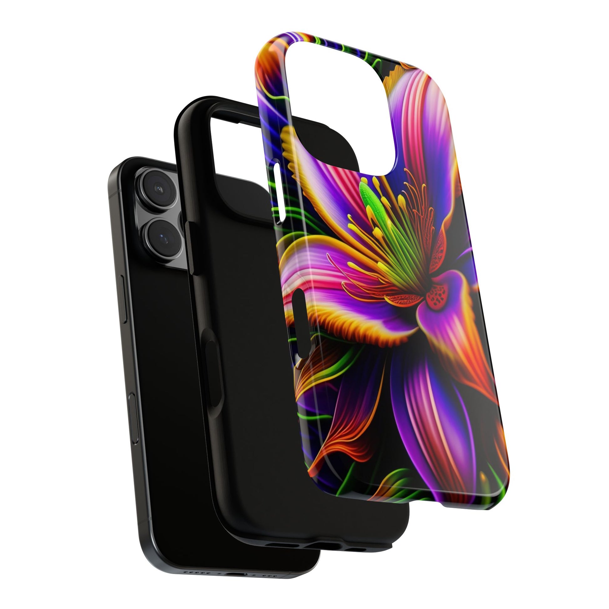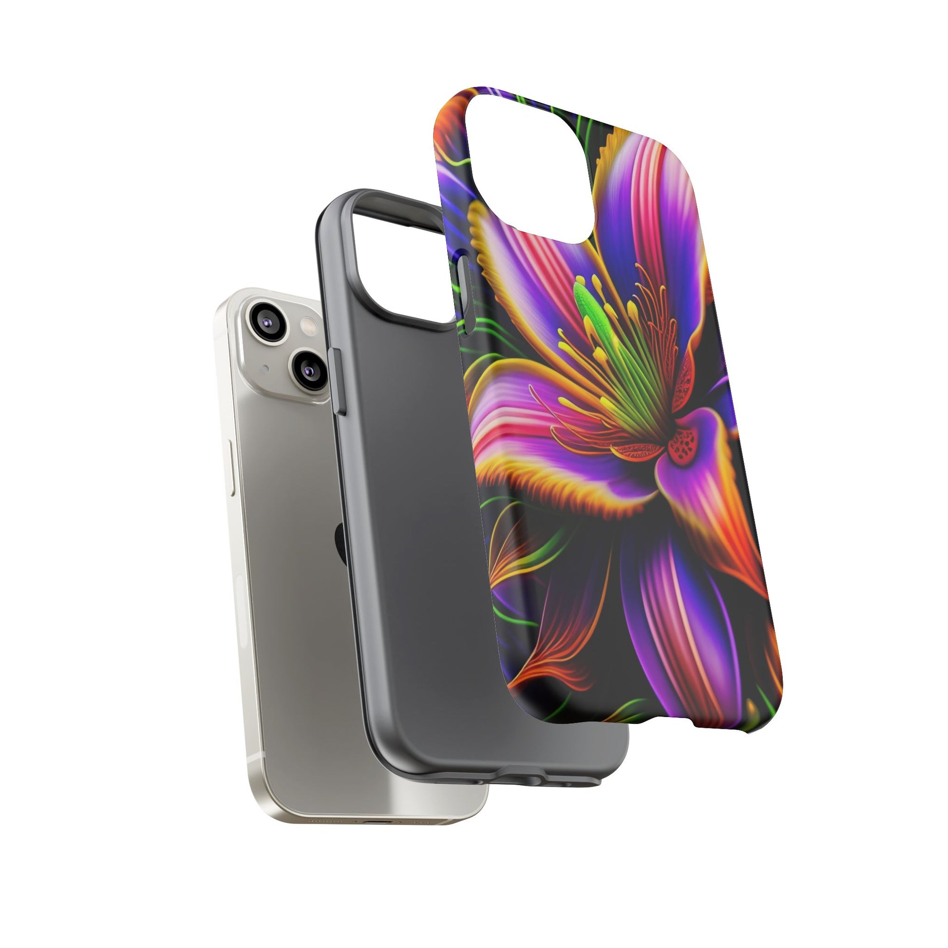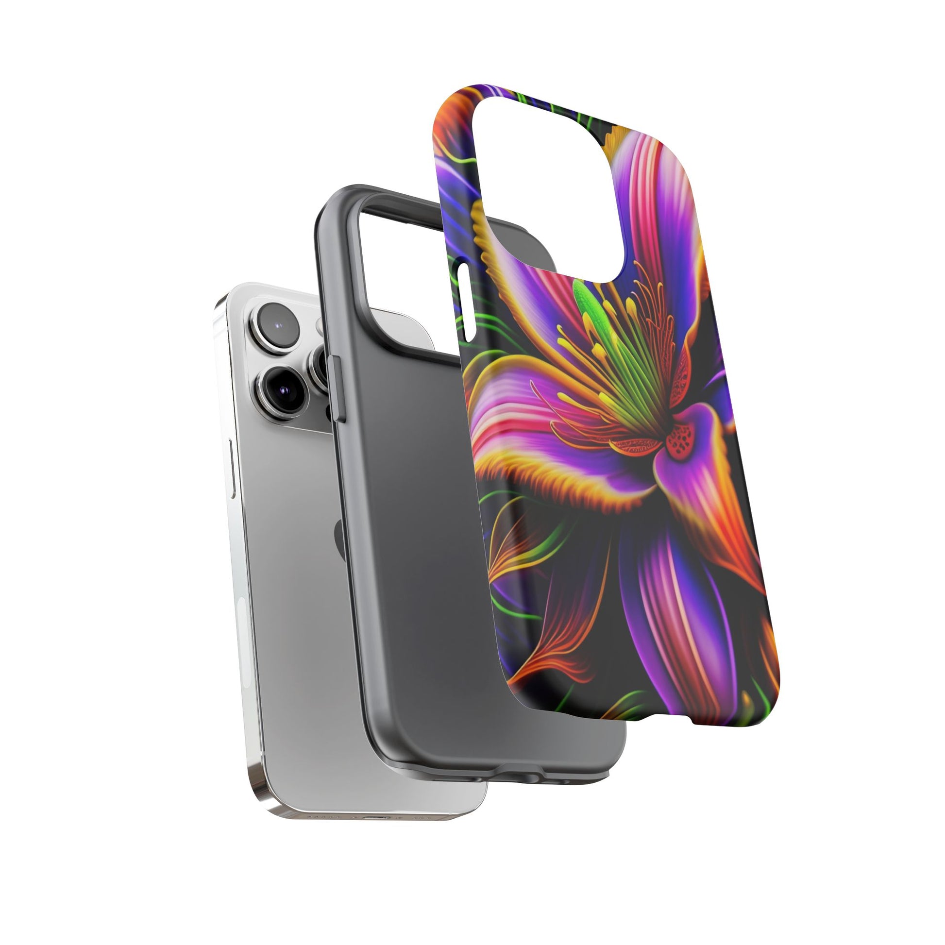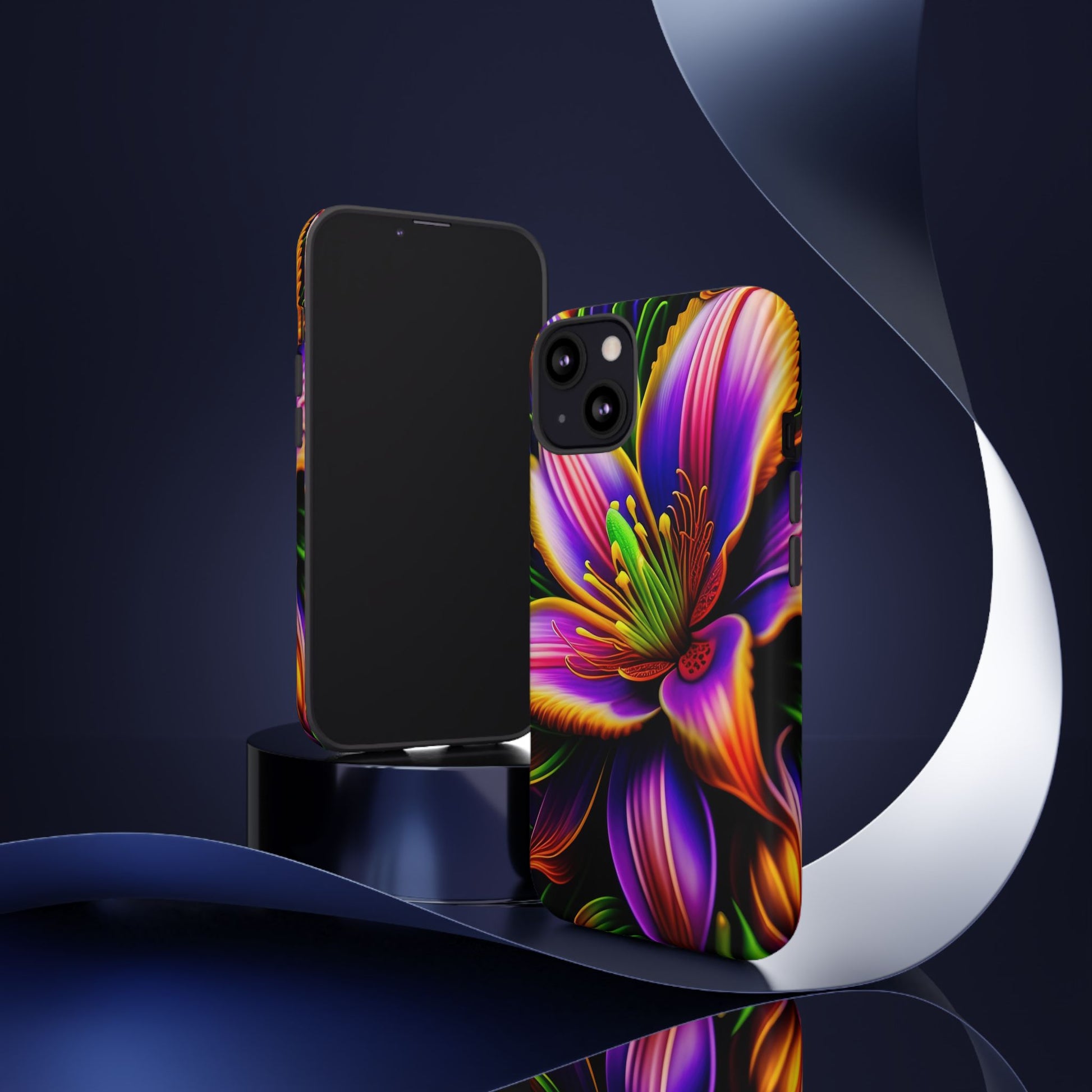 Floral Neon Tough Phone Case — Vivid Purple & Orange Lily Protective Cover