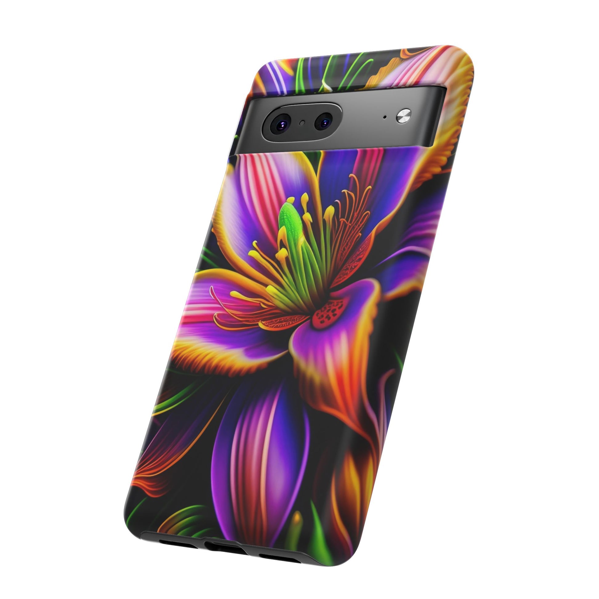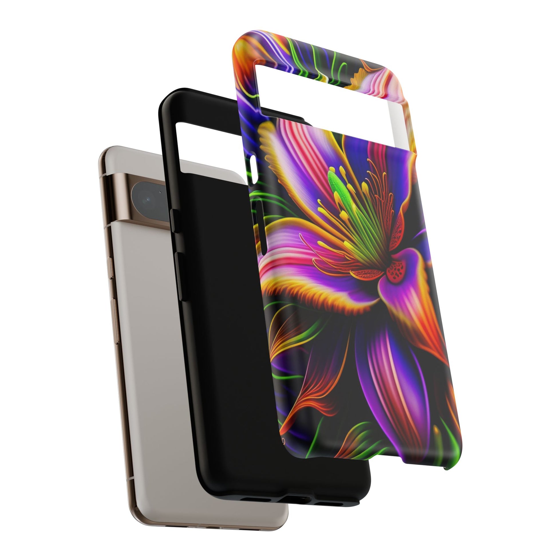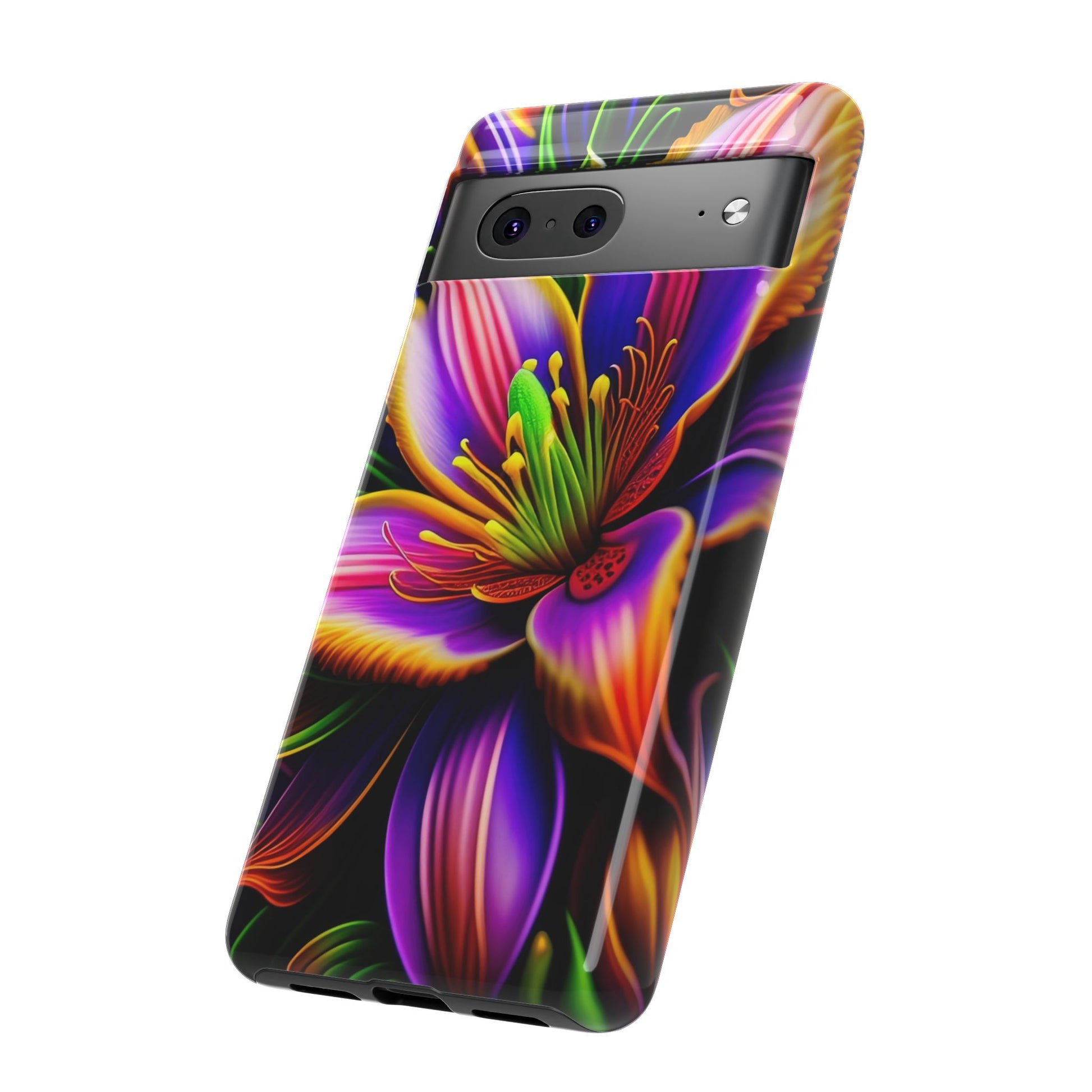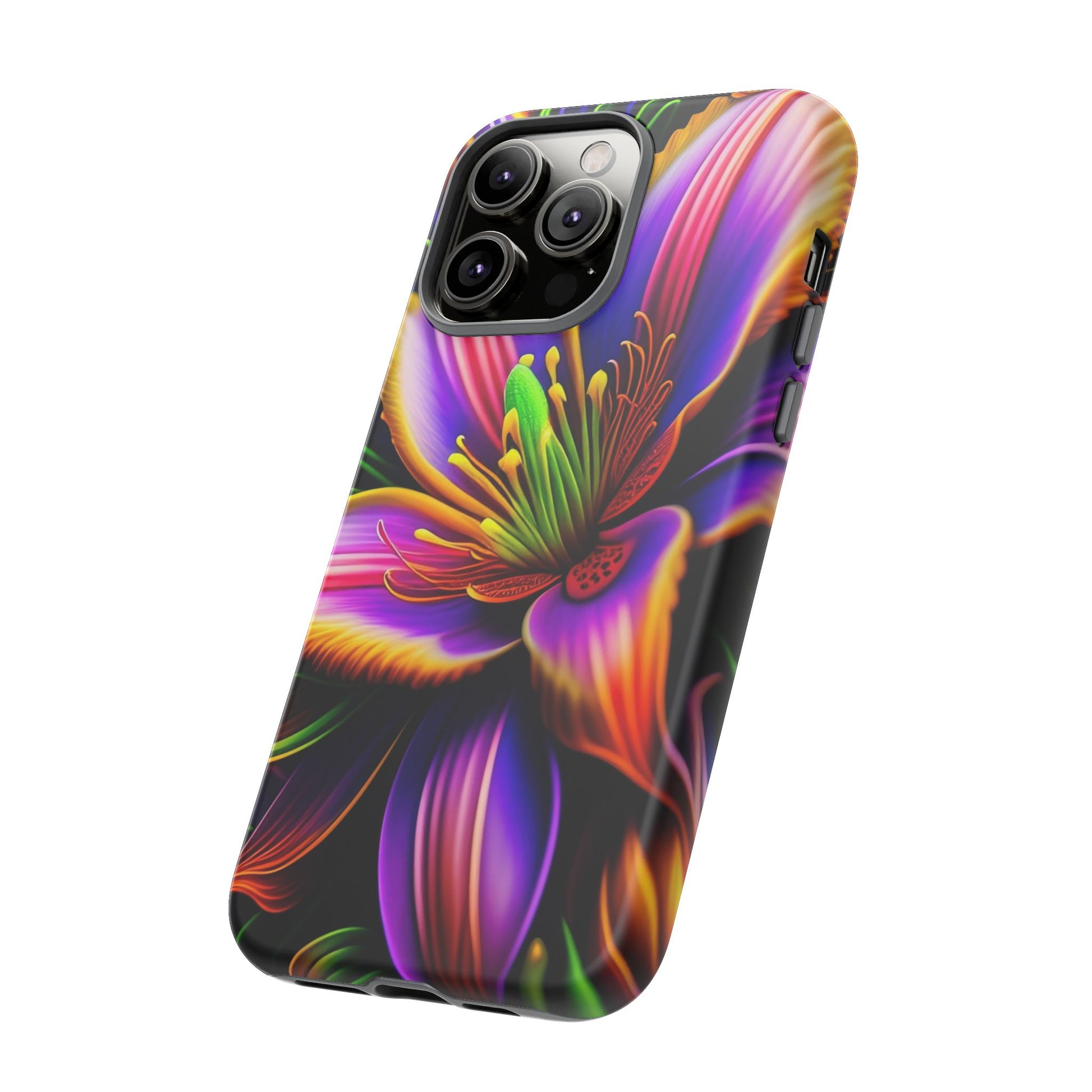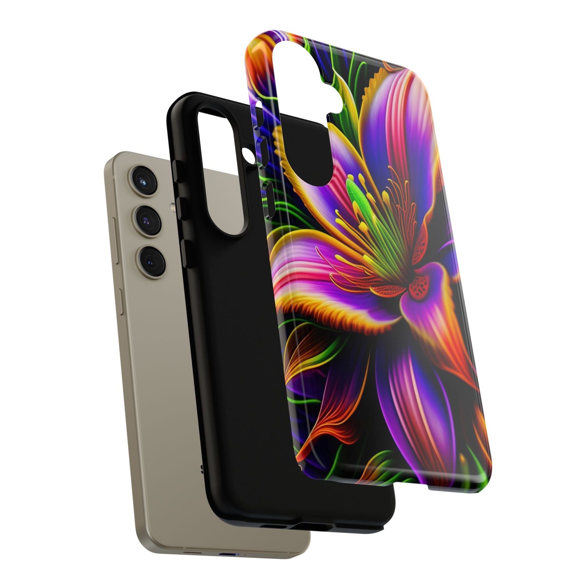 Floral Neon Tough Phone Case — Vivid Purple & Orange Lily Protective Cover