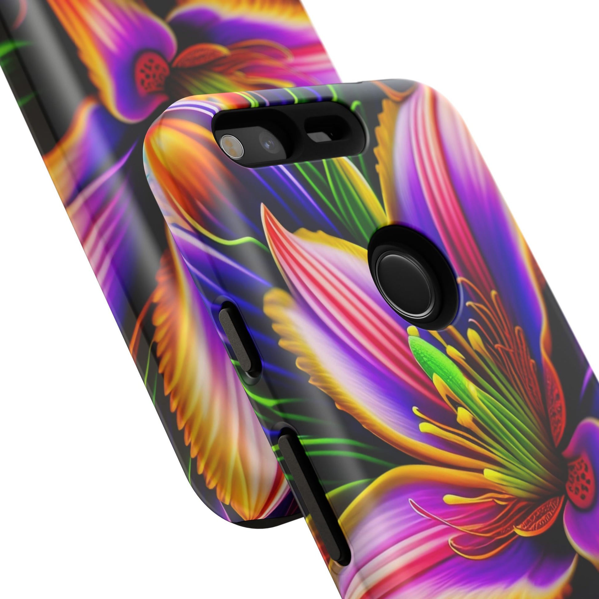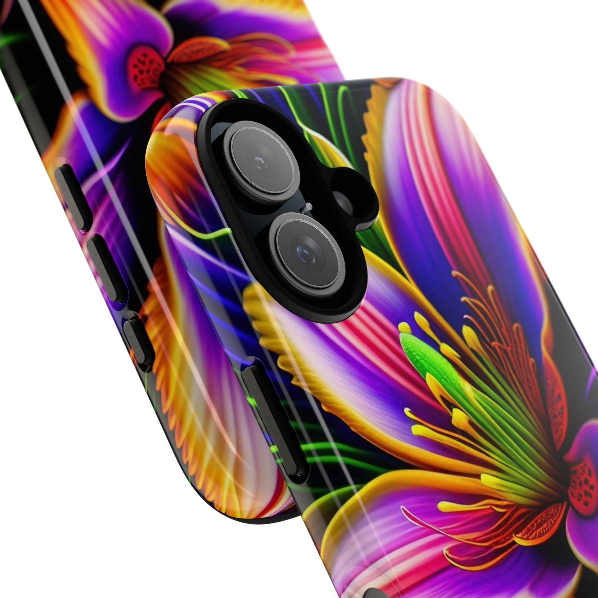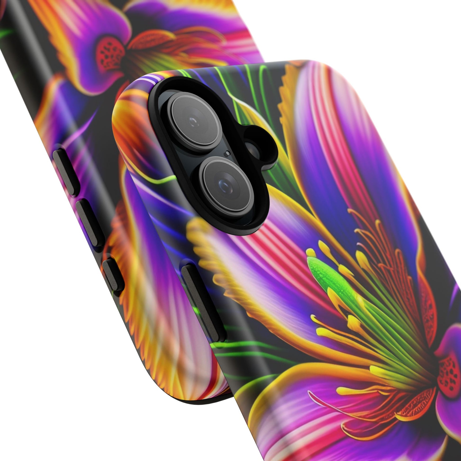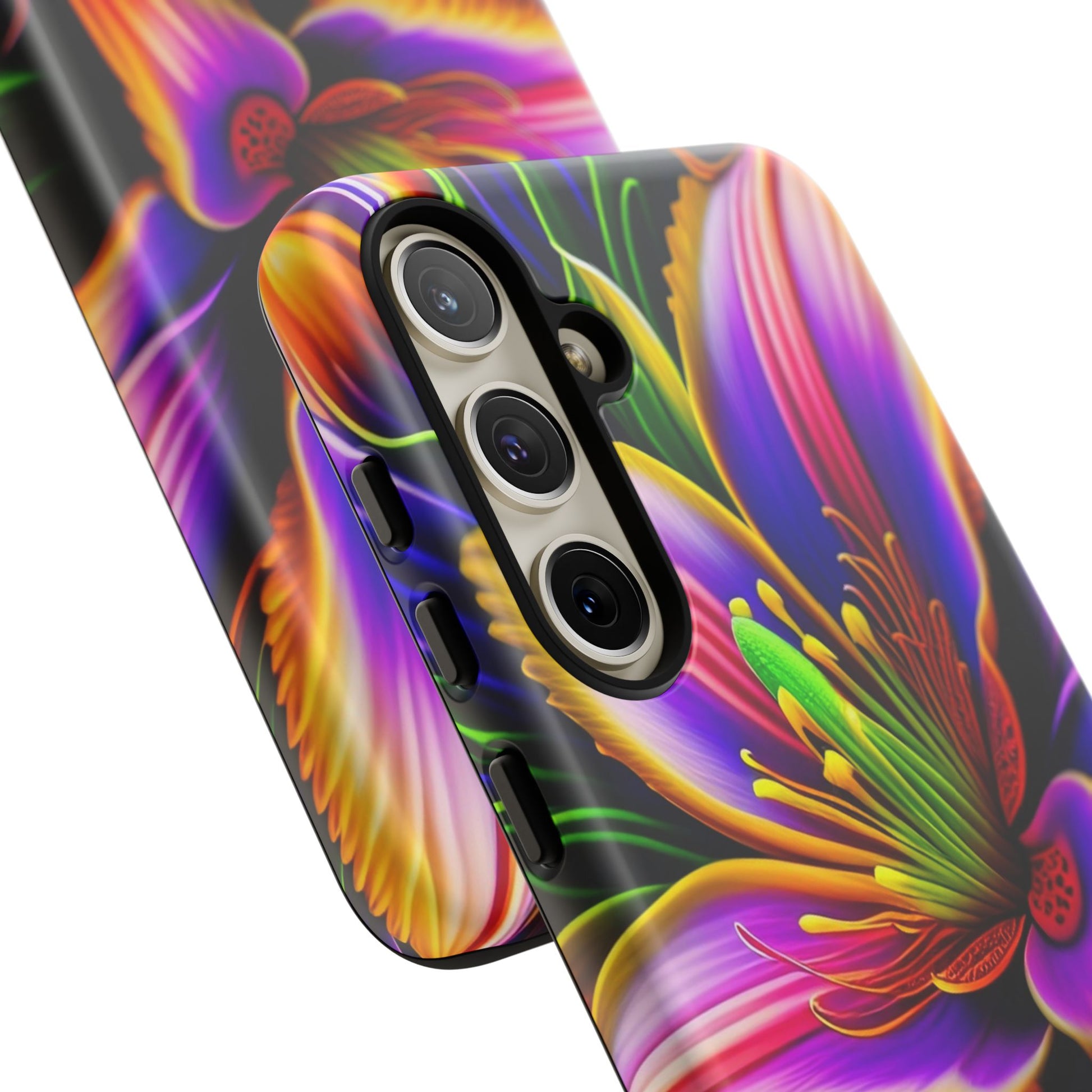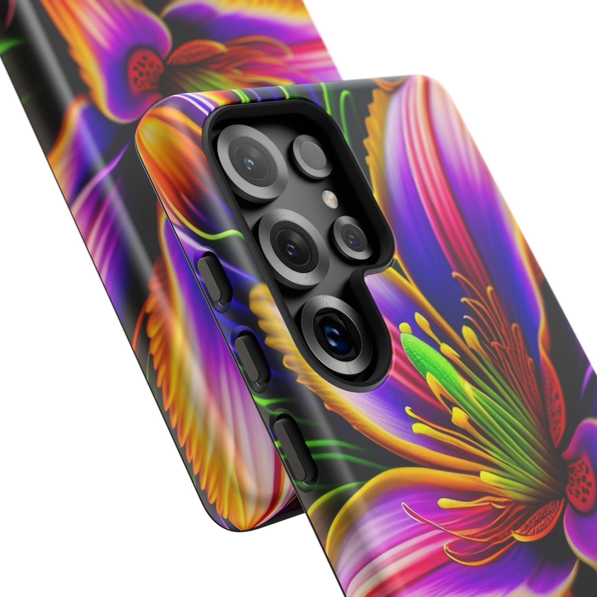 Floral Neon Tough Phone Case — Vivid Purple & Orange Lily Protective Cover