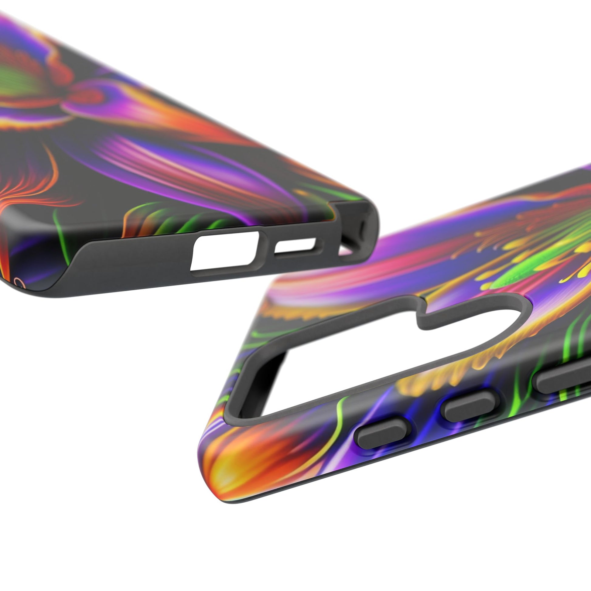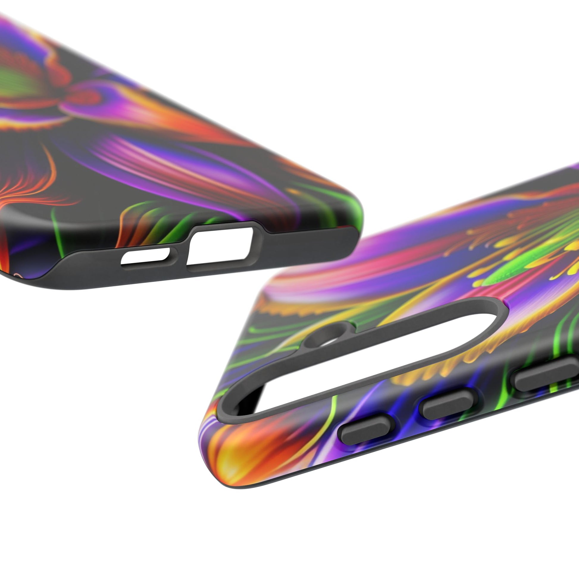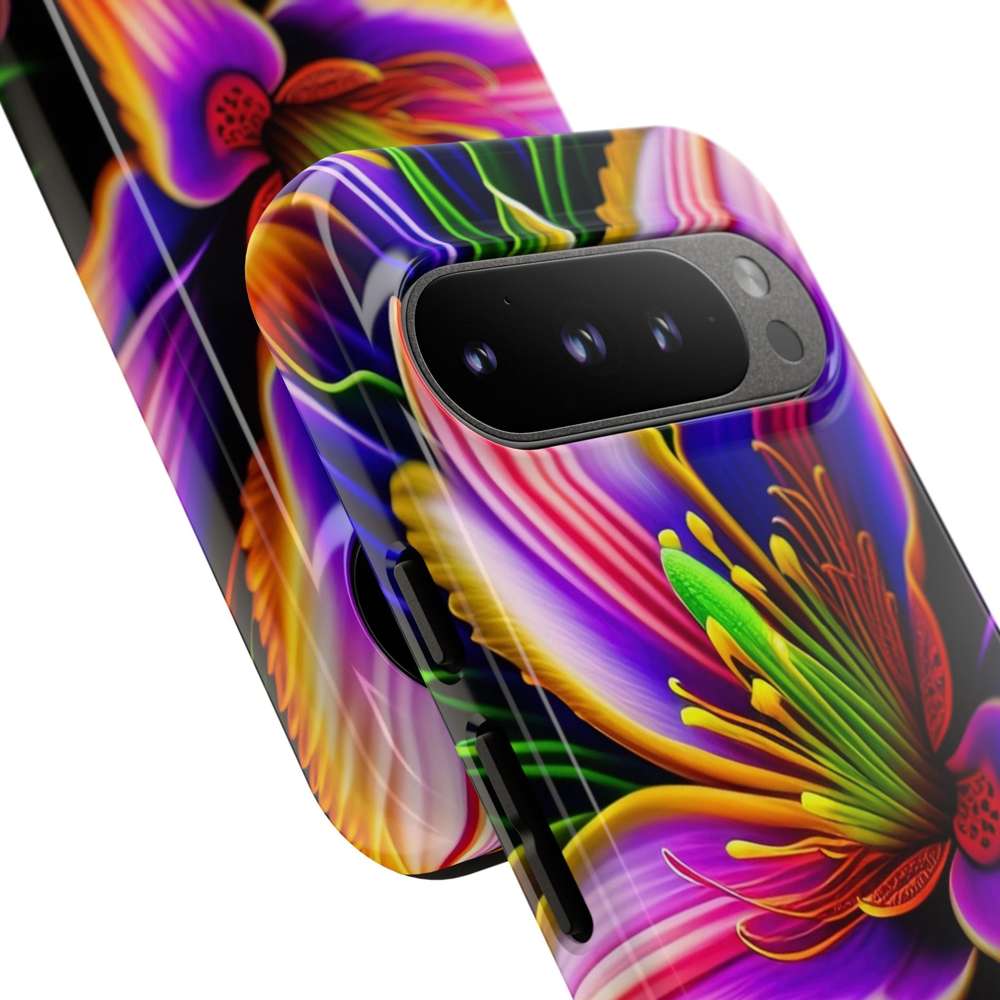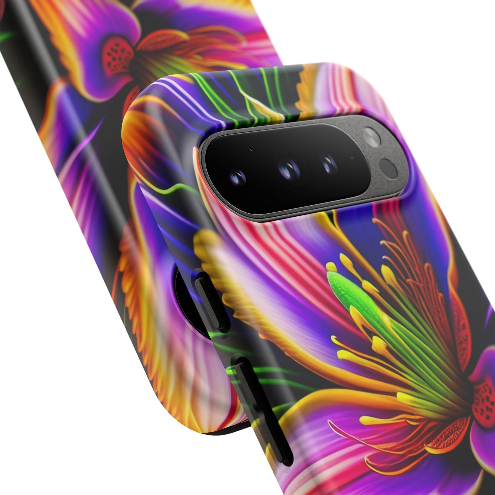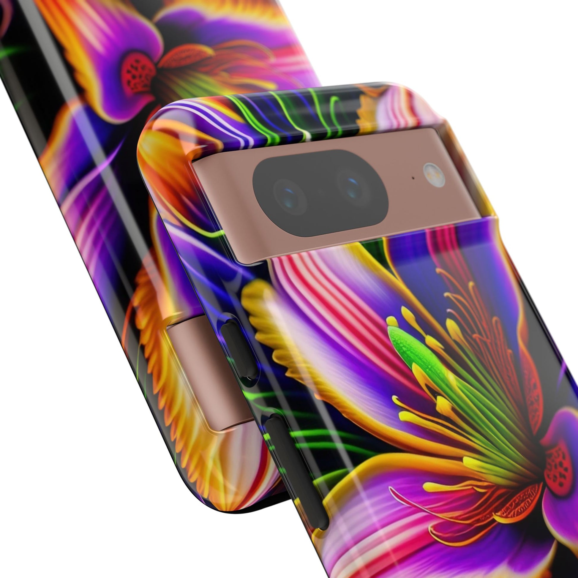 Floral Neon Tough Phone Case — Vivid Purple & Orange Lily Protective Cover