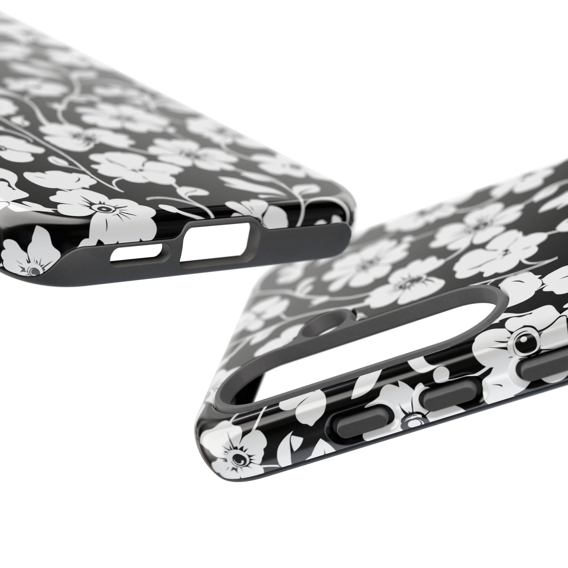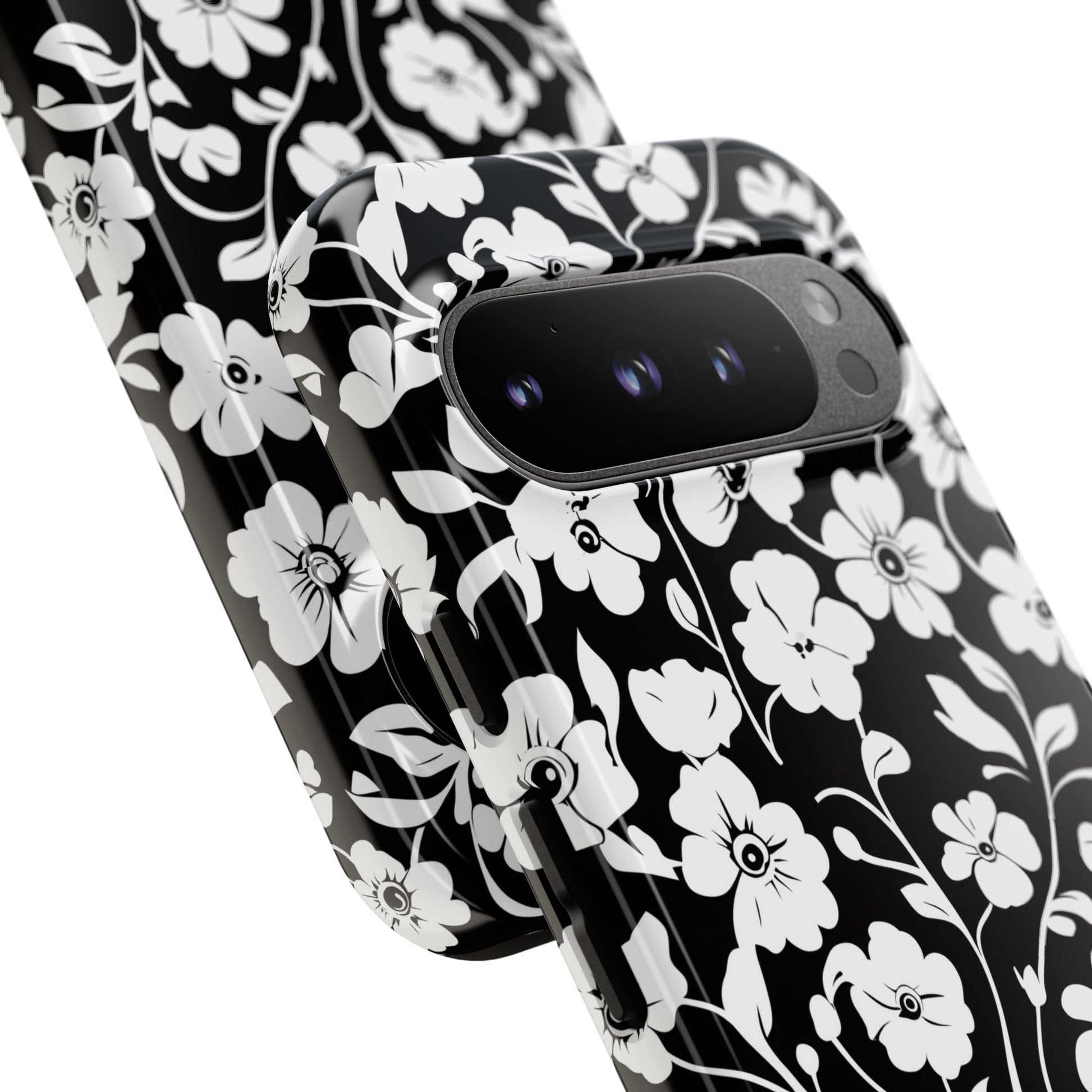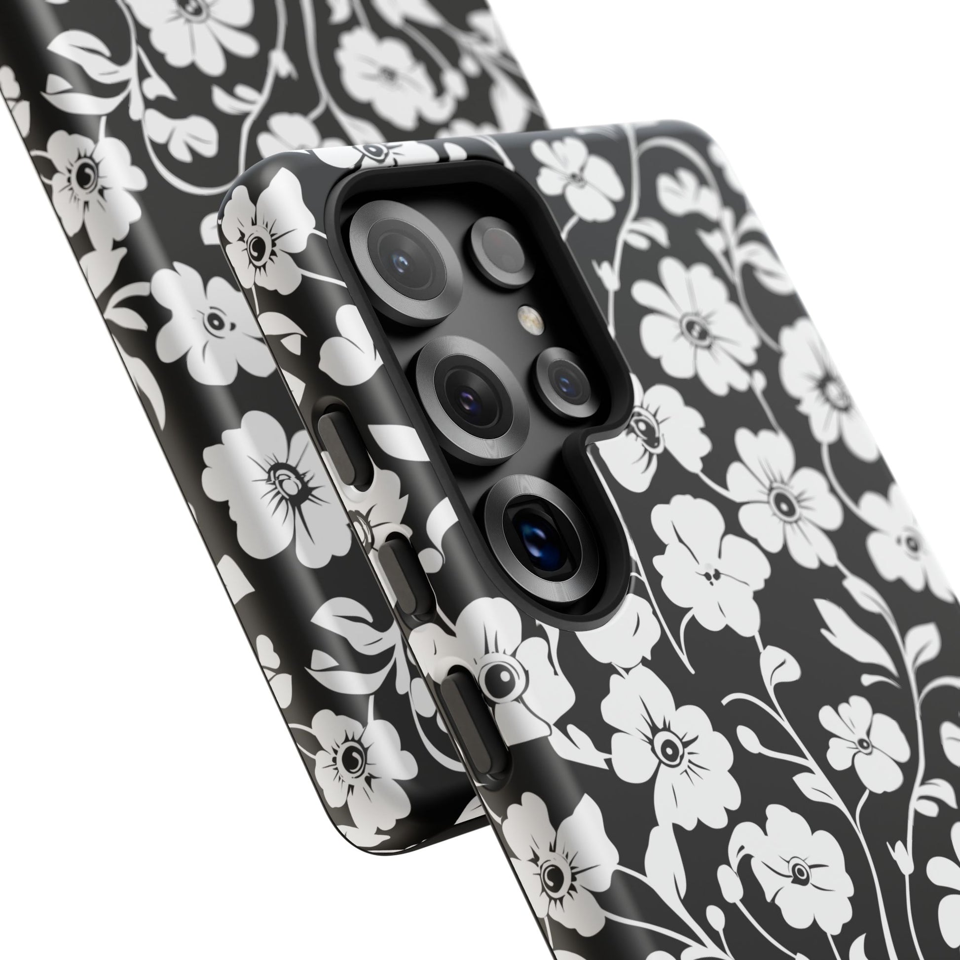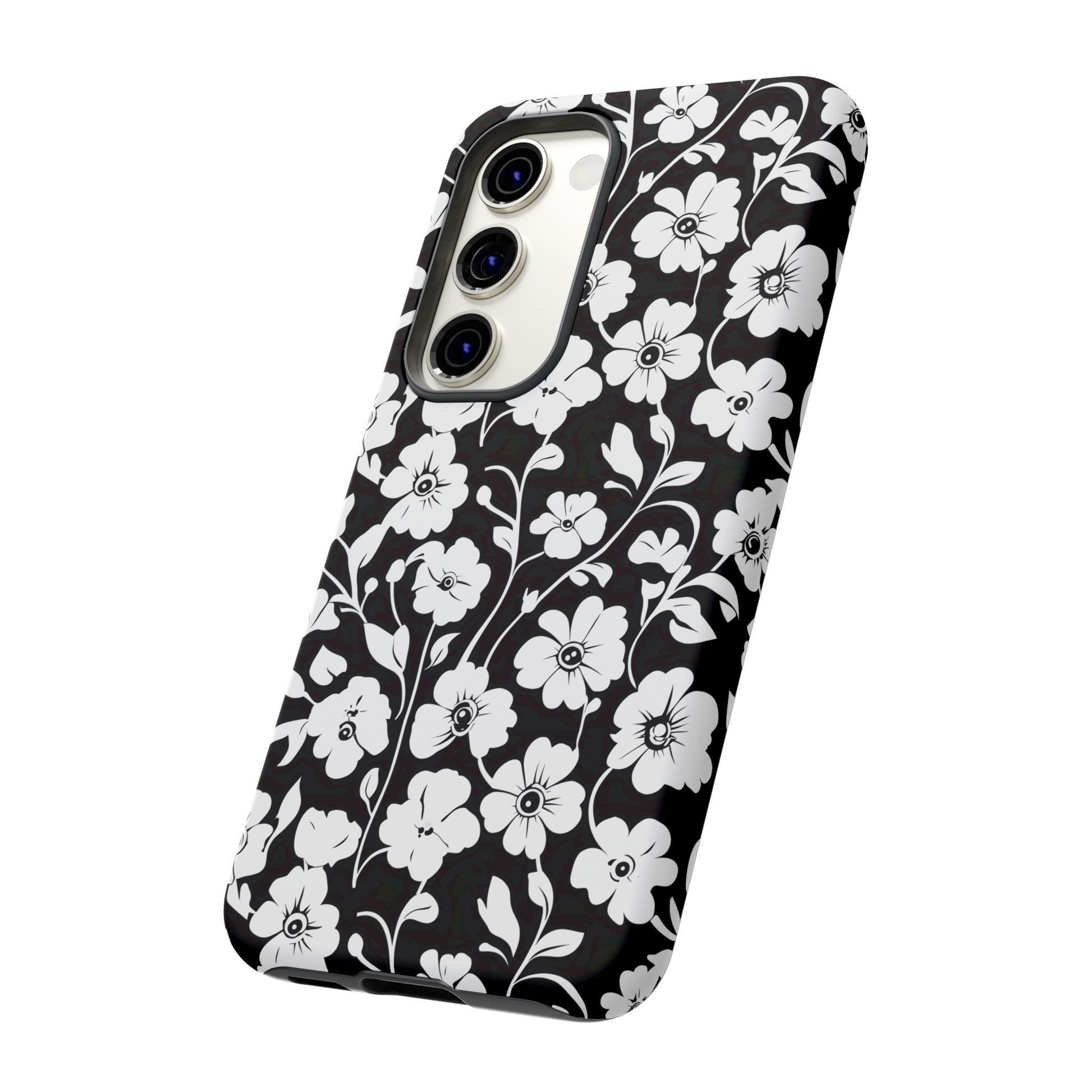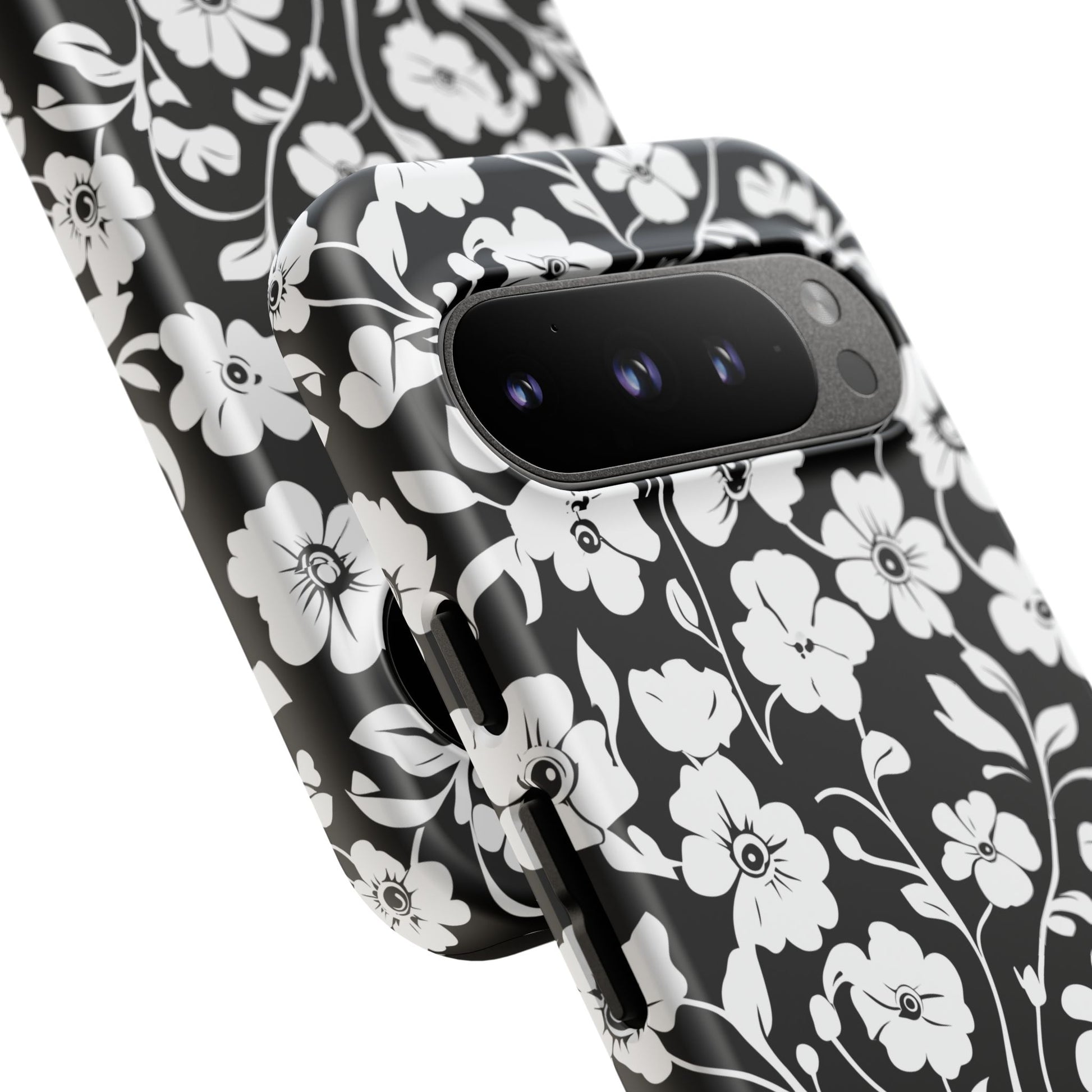 Floral Noir Tough Phone Case — Black & White Flower Protective Cover