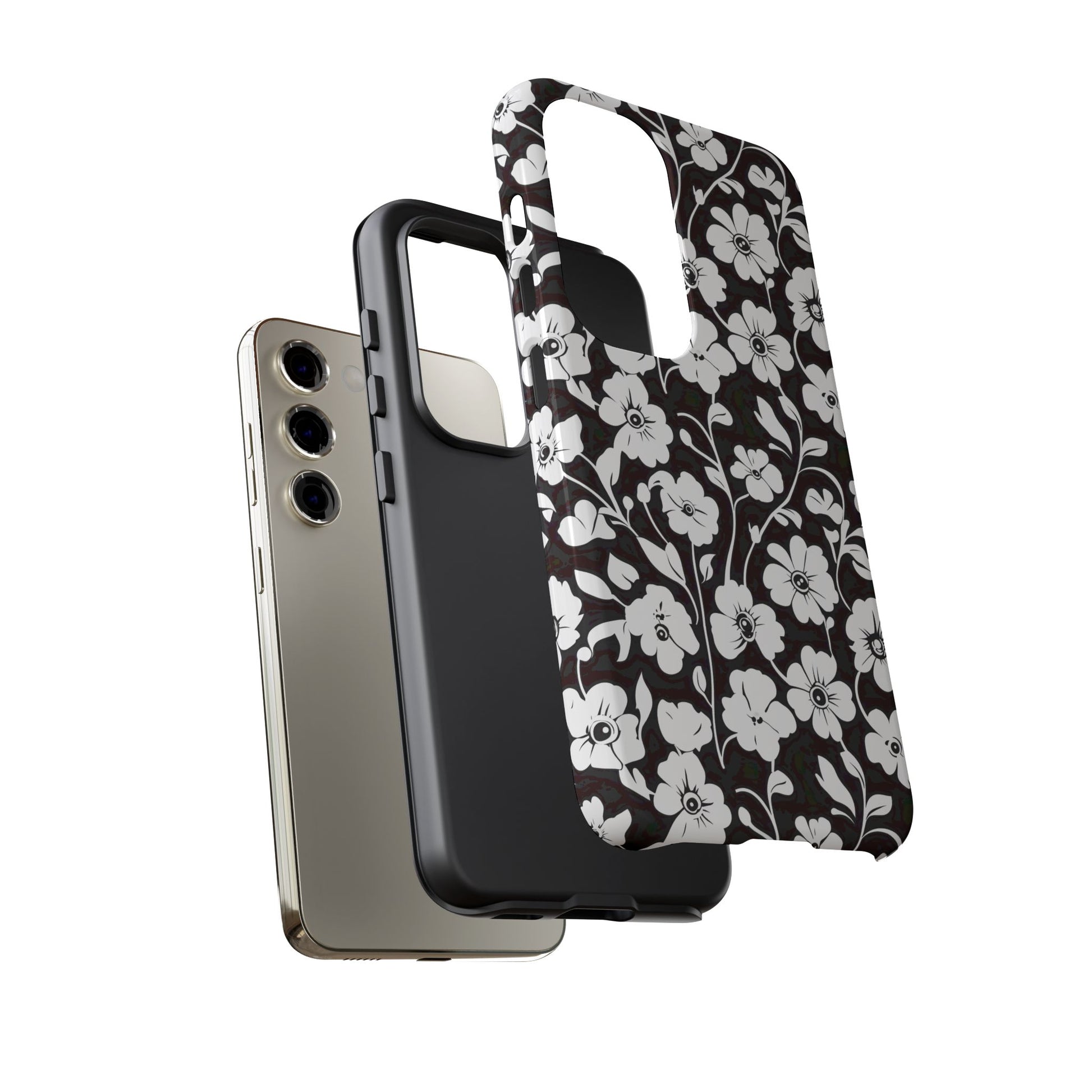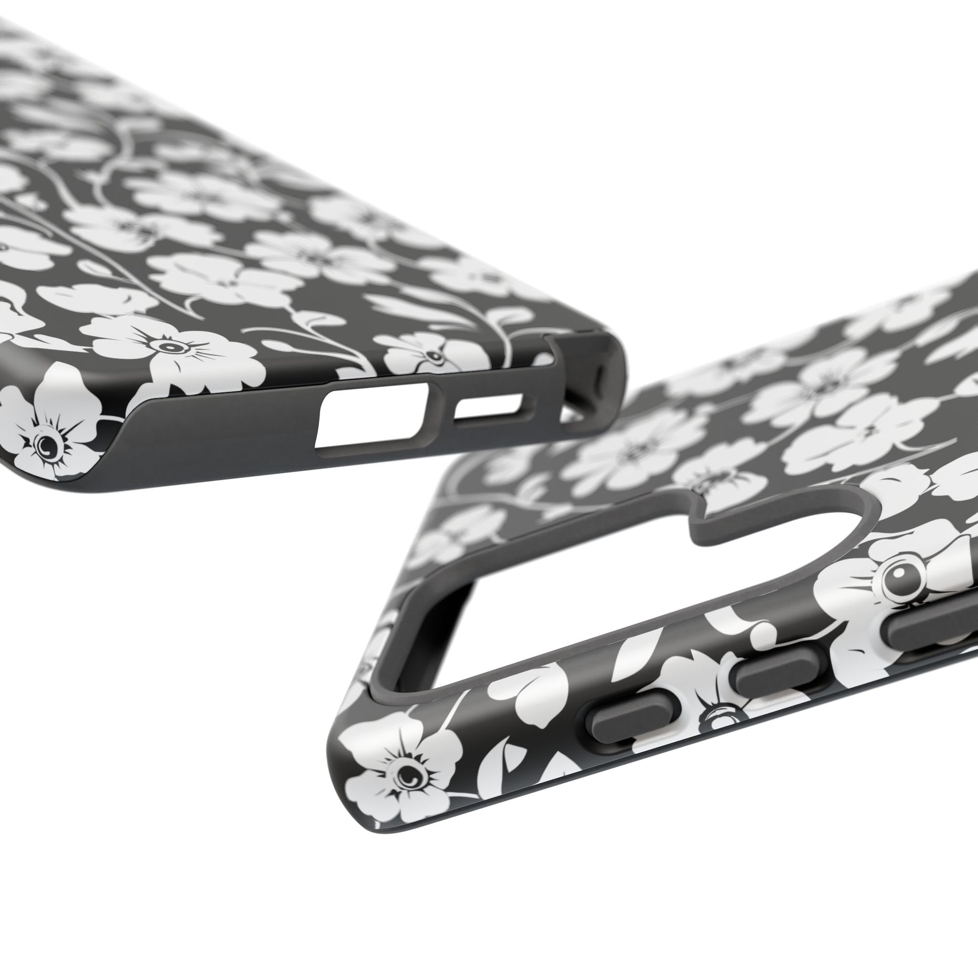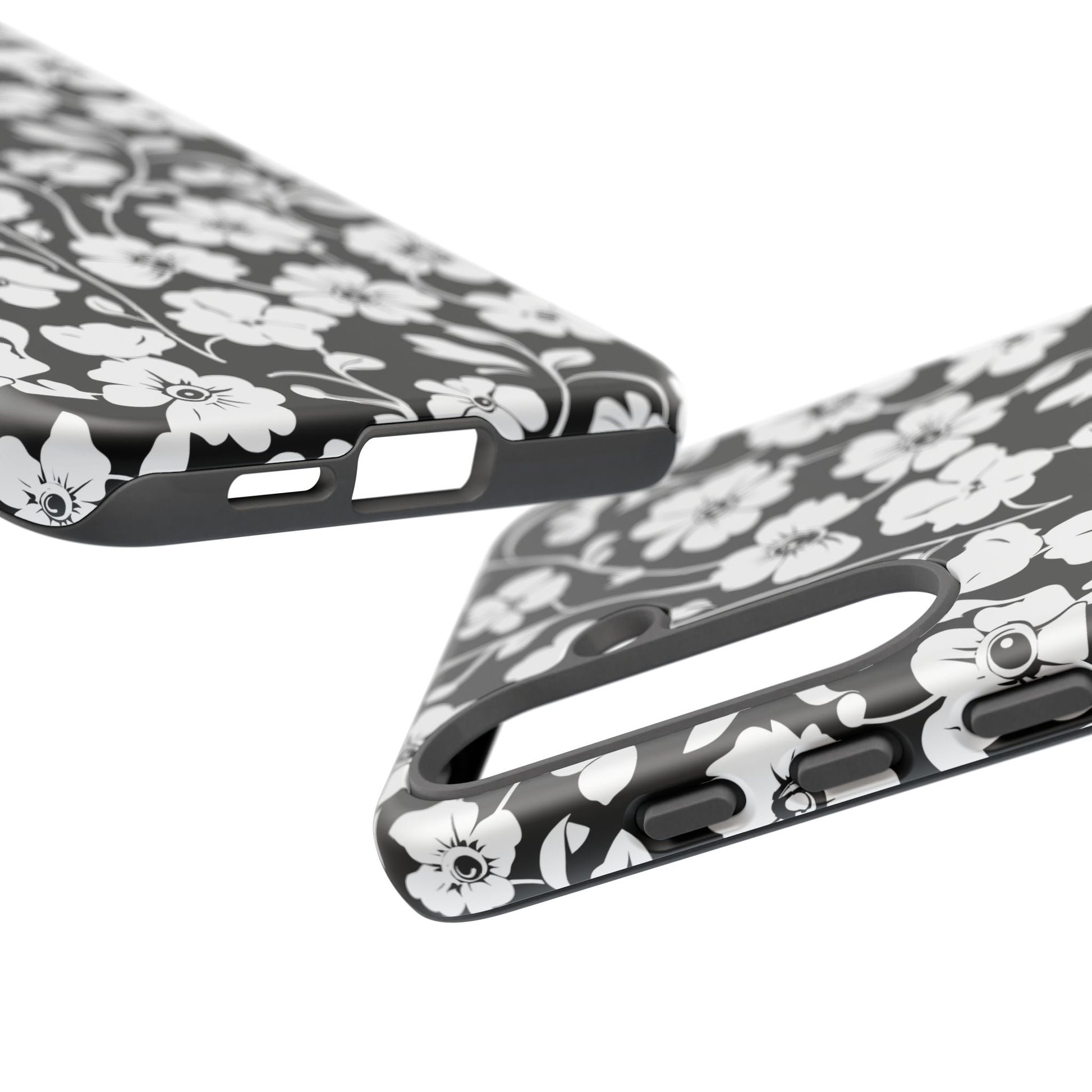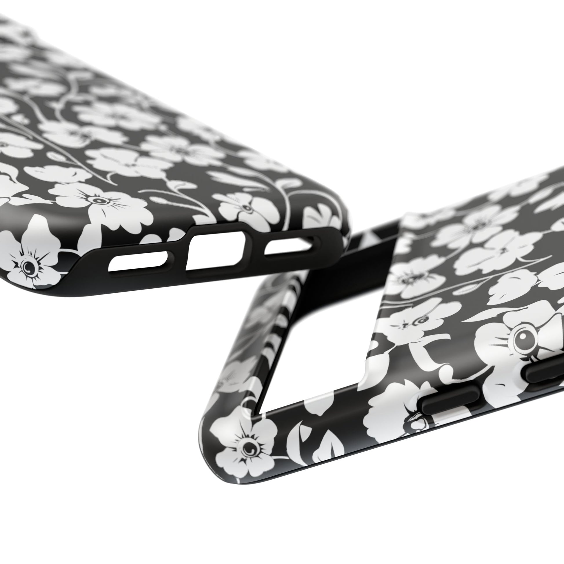 Floral Noir Tough Phone Case — Black & White Flower Protective Cover