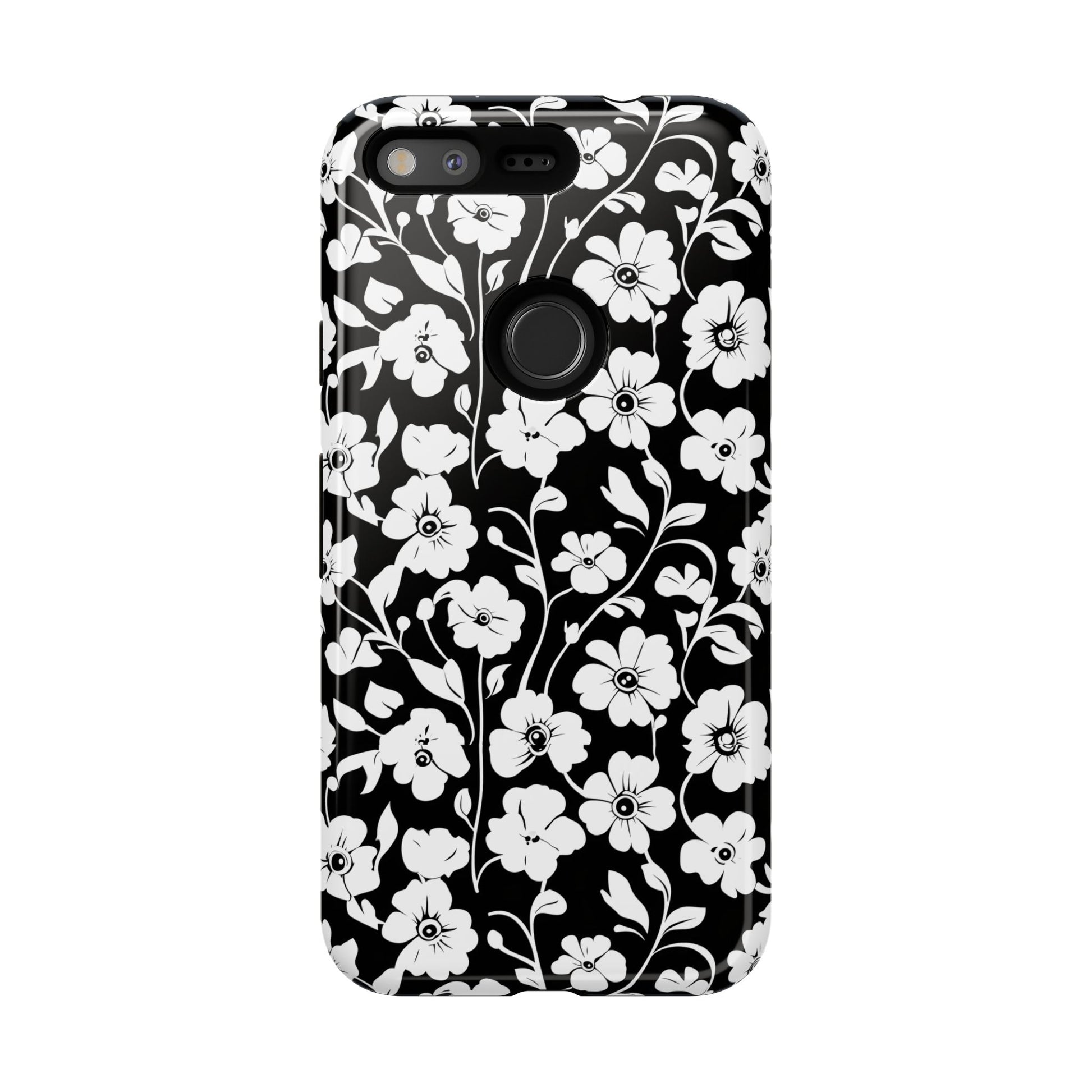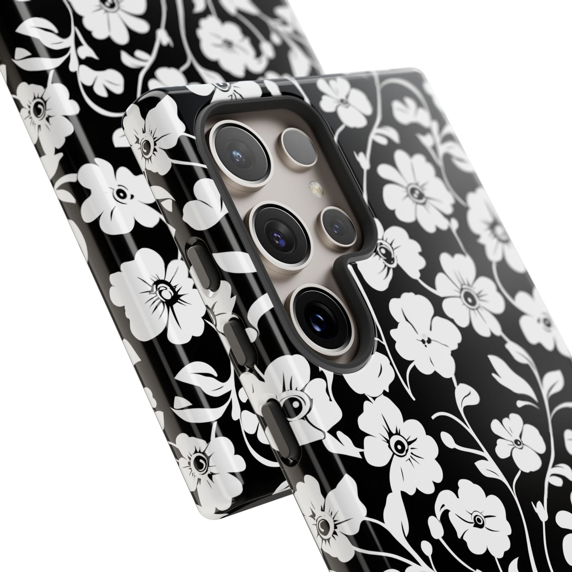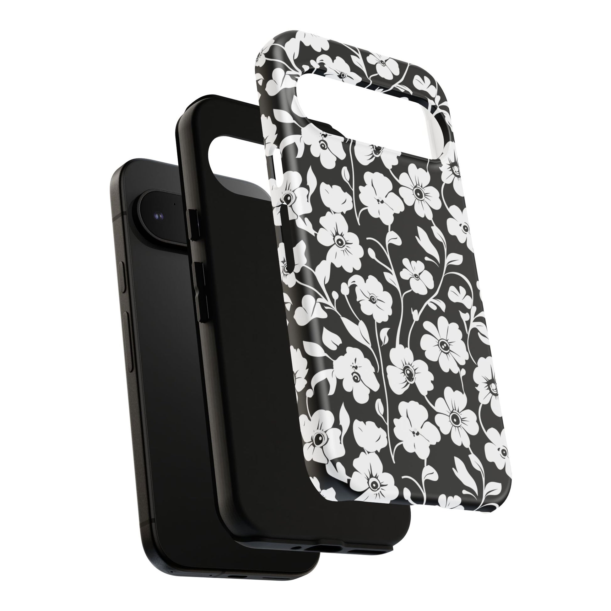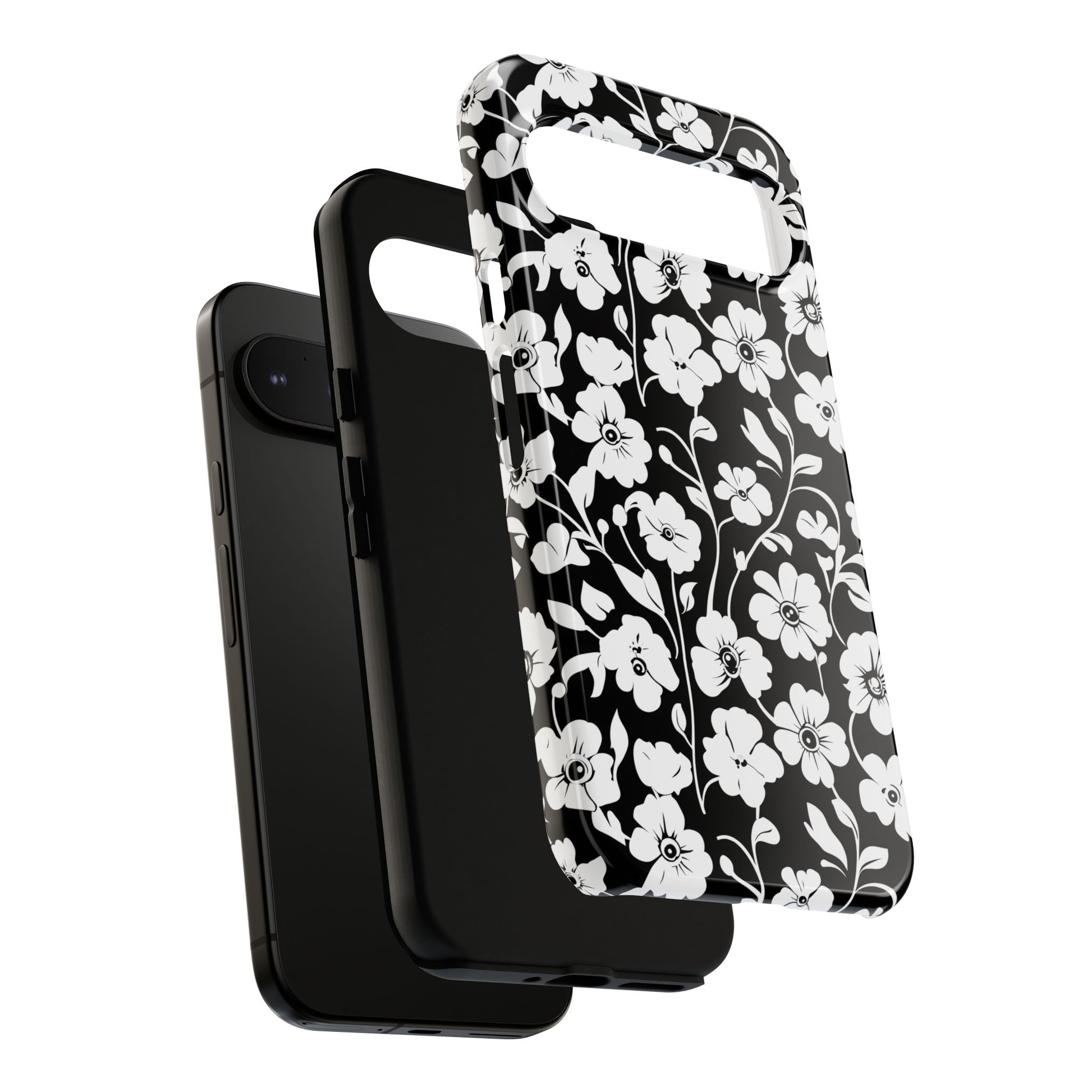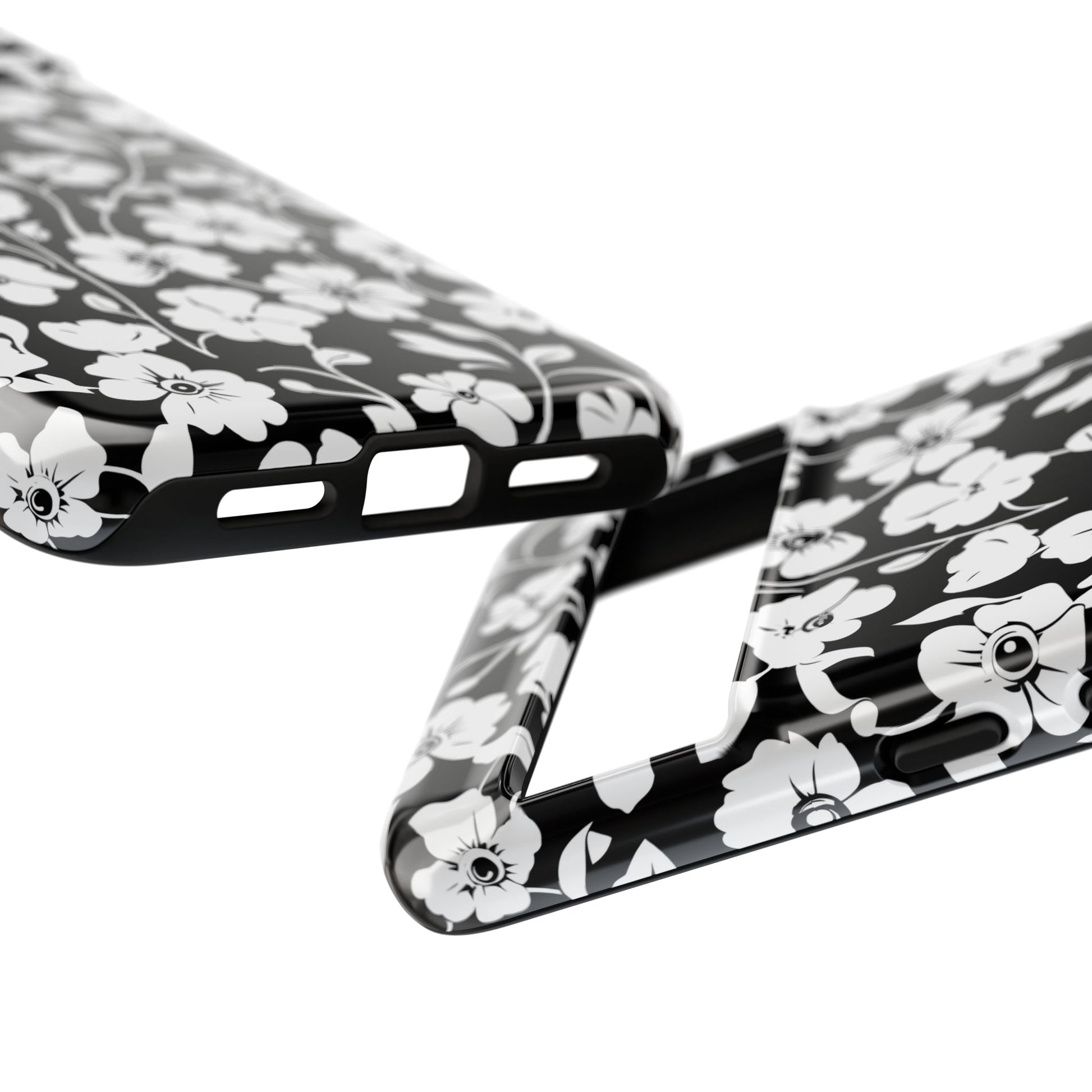 Floral Noir Tough Phone Case — Black & White Flower Protective Cover