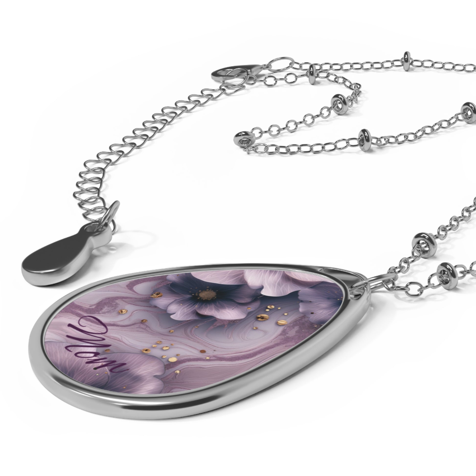 Floral Oval Necklace, Mother's Day Gift, Custom Jewelry for Mom