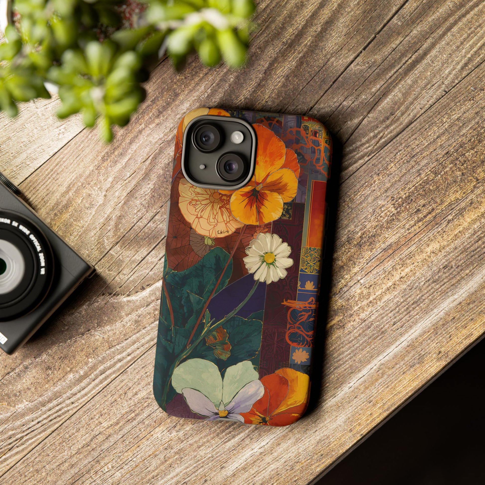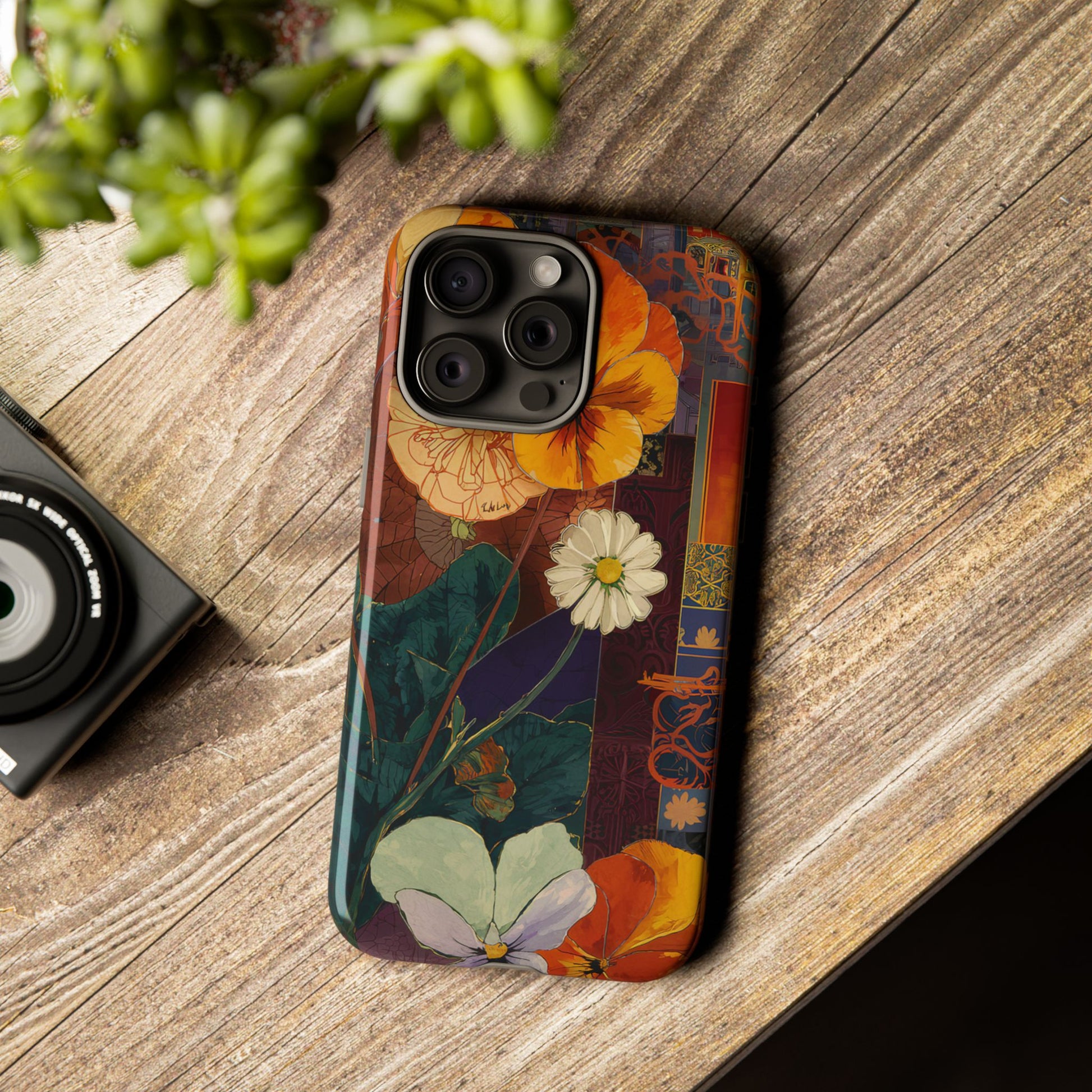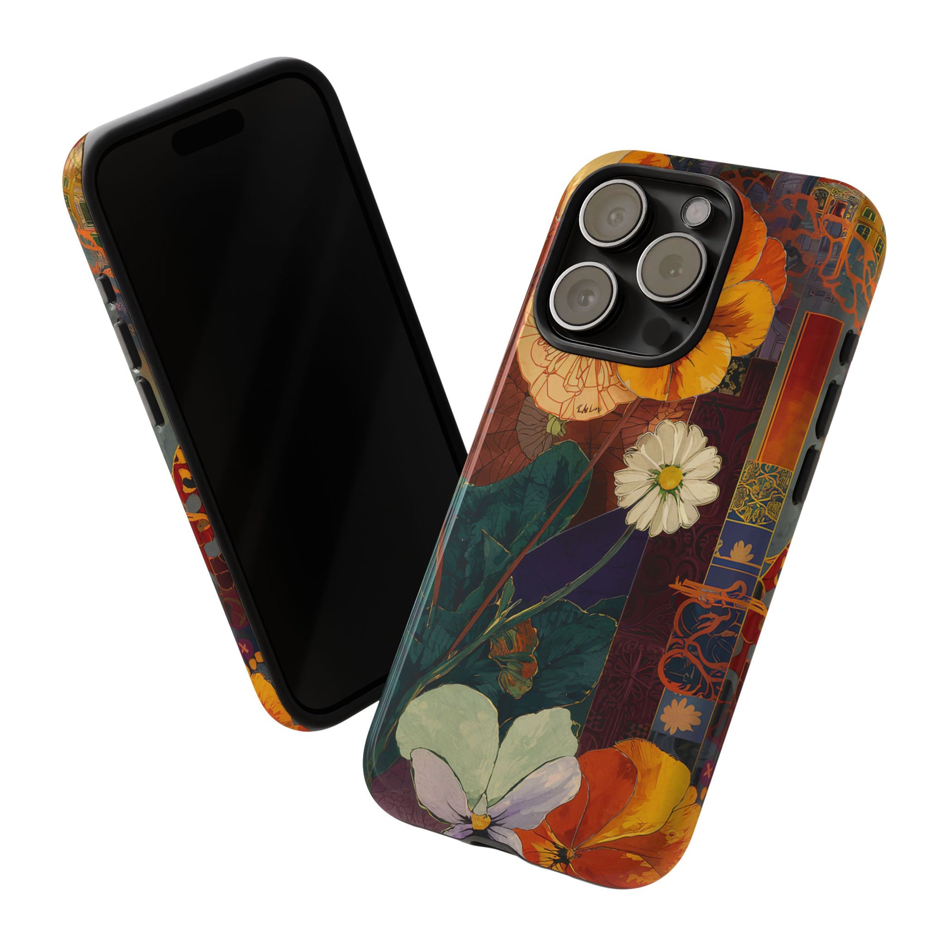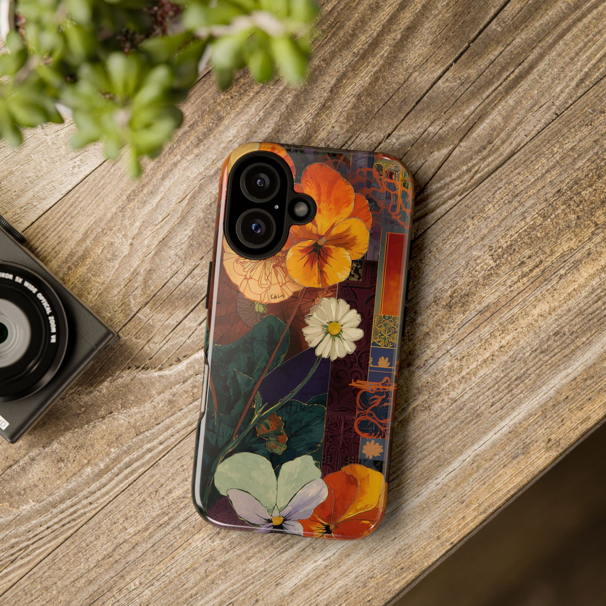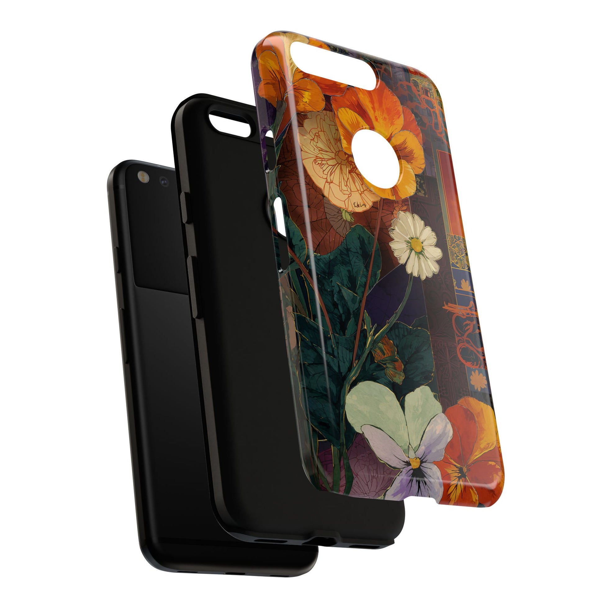 This floral protective phone case wraps your device in rich, painterly blooms and deep, layered textures. Warm pansies and delicate daisies spill across a moody, artful background, giving every glance a small moment of beauty. The dual-layer construction cushions drops while the glossy or matte finish keeps colors vivid. It feels like carrying a miniature work of art — sturdy enough for daily life, elegant enough to stand out when you pull your phone from a bag or pocket.