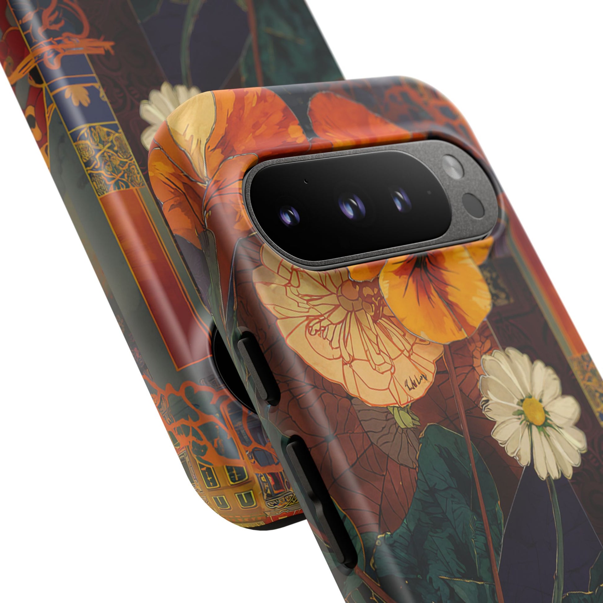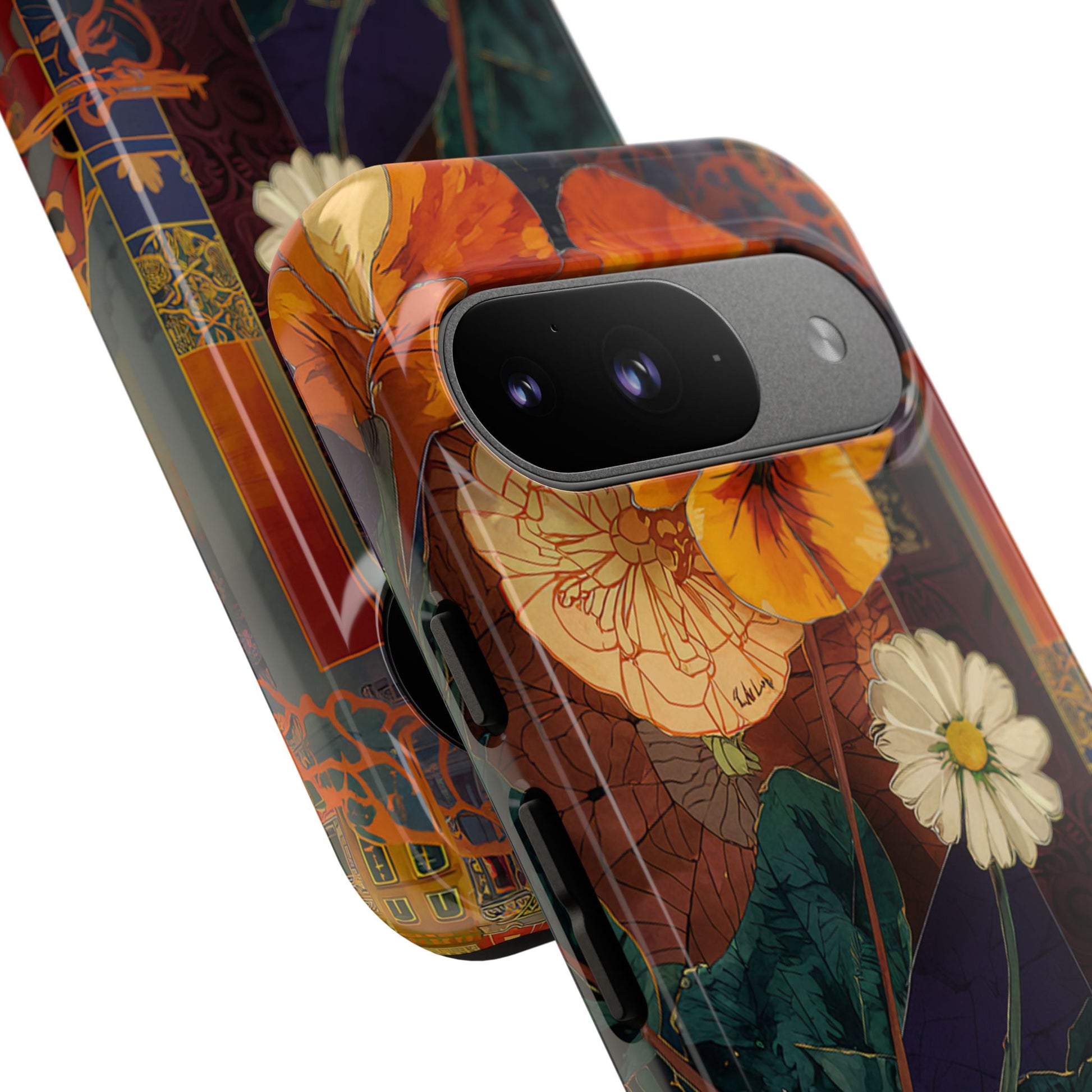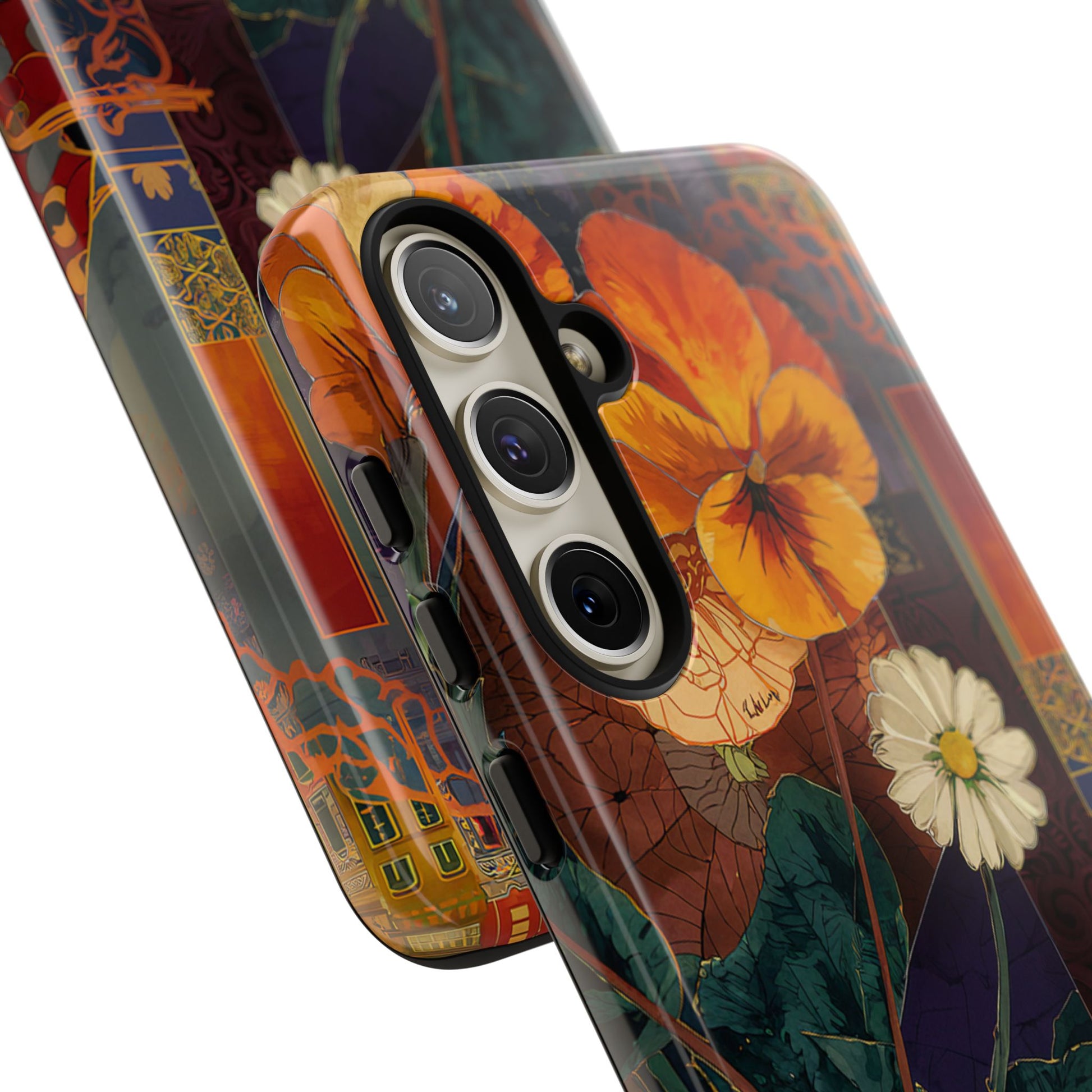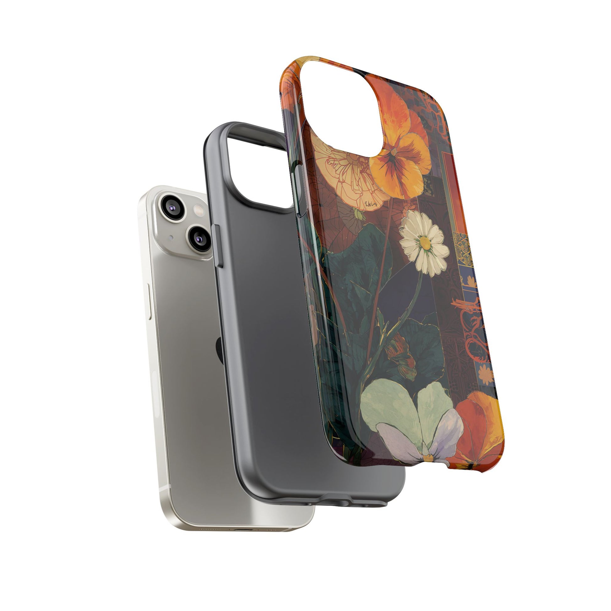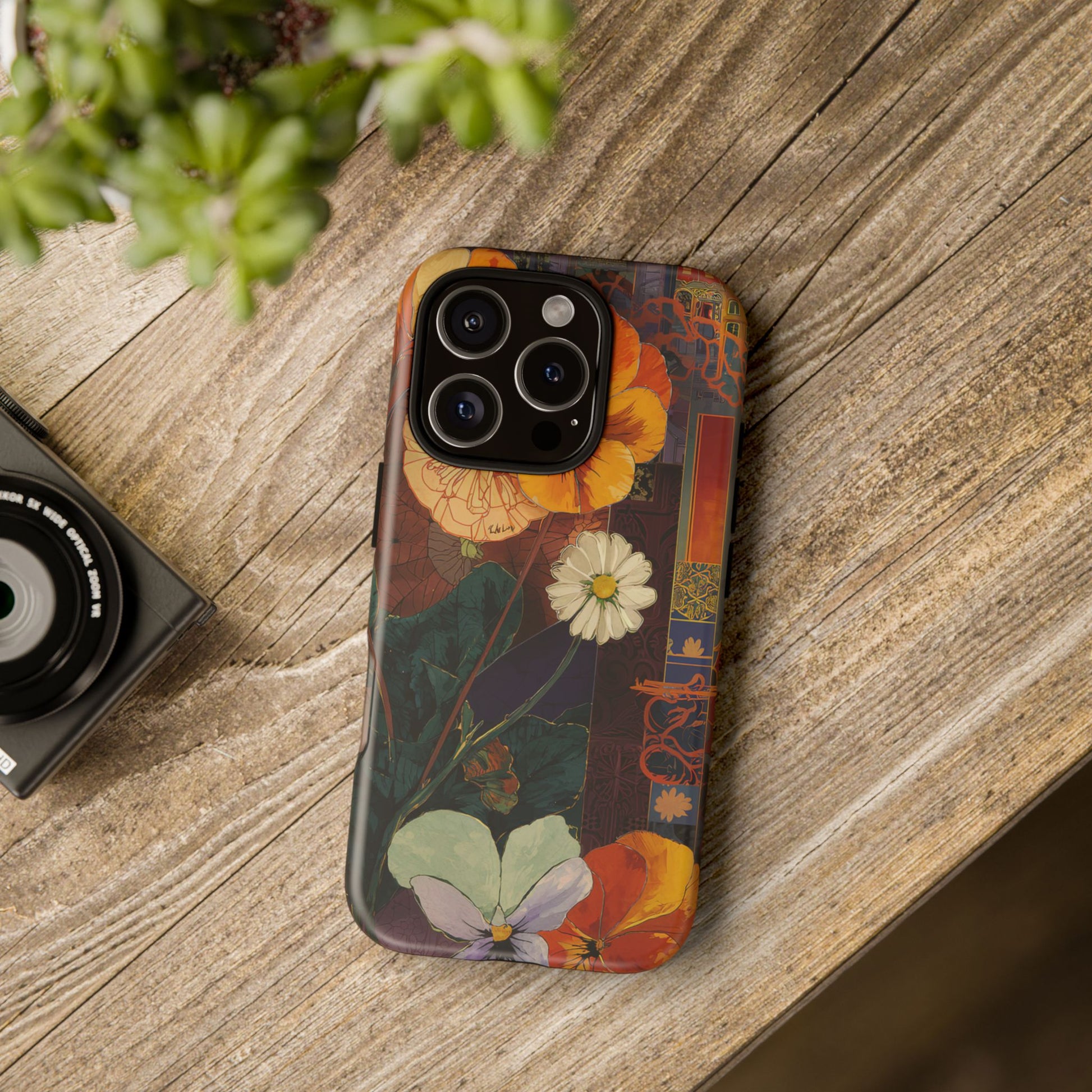 This floral protective phone case wraps your device in rich, painterly blooms and deep, layered textures. Warm pansies and delicate daisies spill across a moody, artful background, giving every glance a small moment of beauty. The dual-layer construction cushions drops while the glossy or matte finish keeps colors vivid. It feels like carrying a miniature work of art — sturdy enough for daily life, elegant enough to stand out when you pull your phone from a bag or pocket.