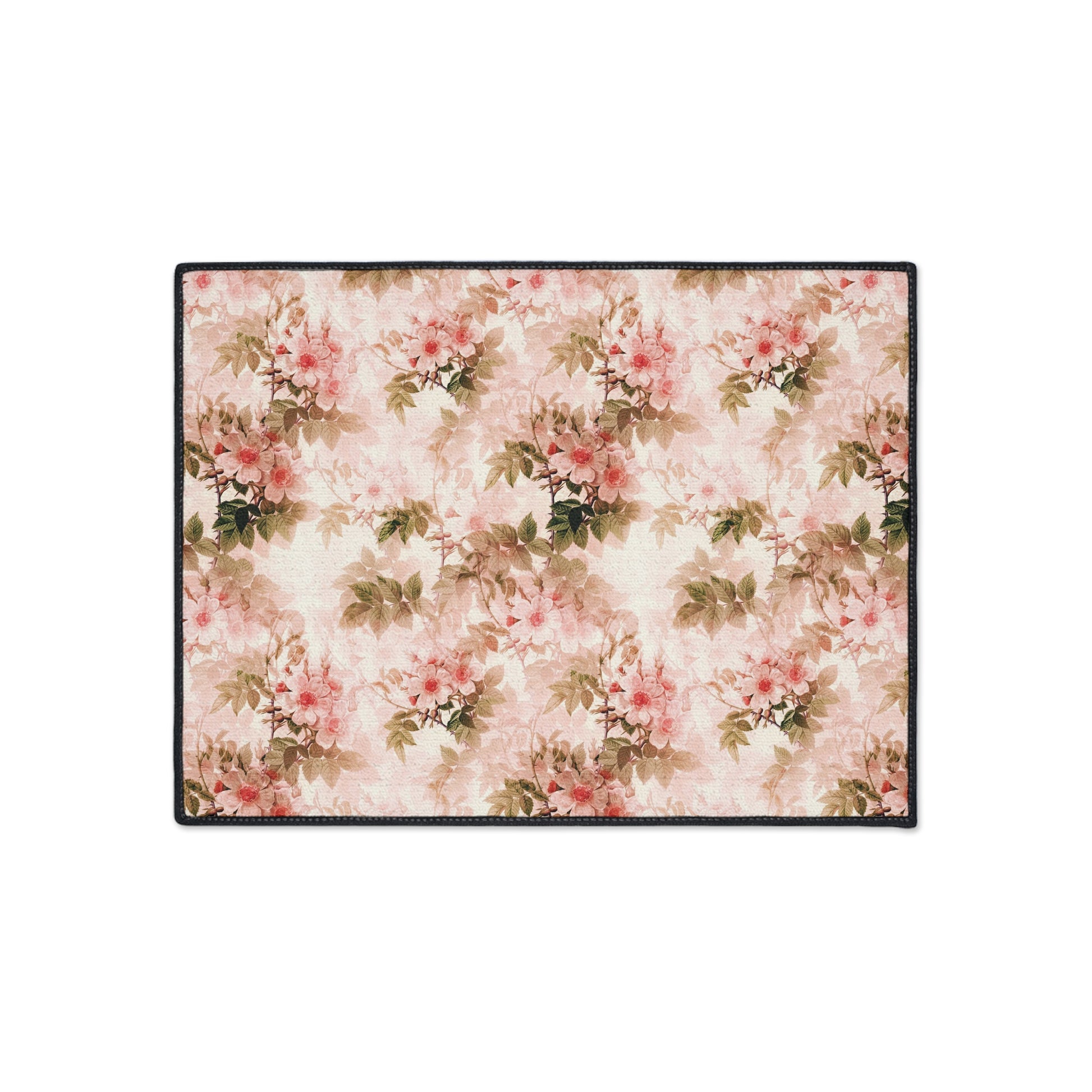 Floral Vintage Heavy-Duty Floor Mat — Pink Rose Garden Rug