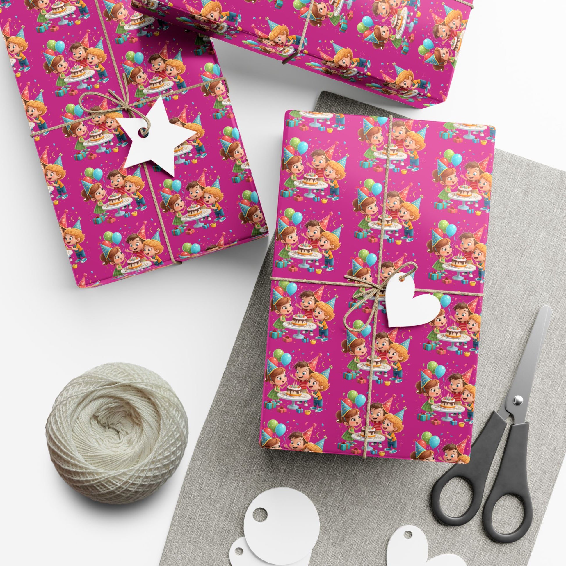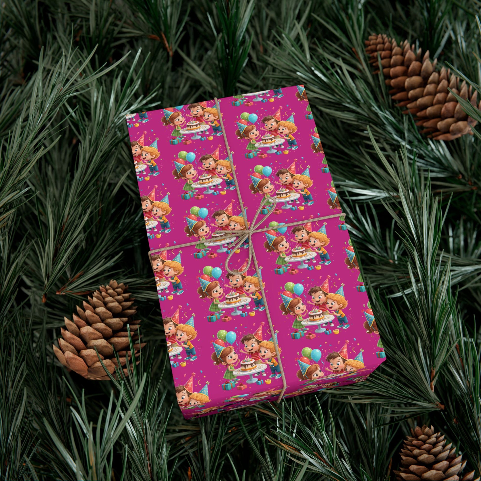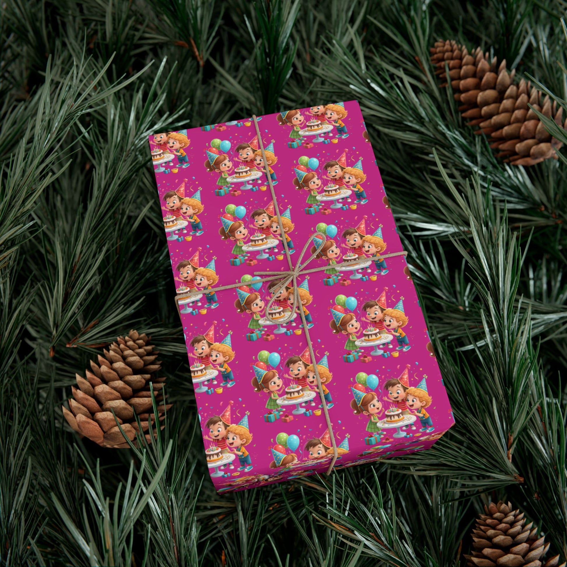 Bright, durable wrapping paper that brings playful energy to every present. The vivid magenta background and repeating illustration of cheerful children with balloons gives each package a nostalgic, party-ready look. The paper is smooth and tear-resistant, folding crisply around corners without cracking. Choose satin for a subtle sheen or matte for a refined, modern finish. Printed with water-based, Greenguard UL Certified inks and fully recyclable, this wrap adds color without compromise. Use it to make birthdays, baby showers, and celebration piles feel joyful and intentional.