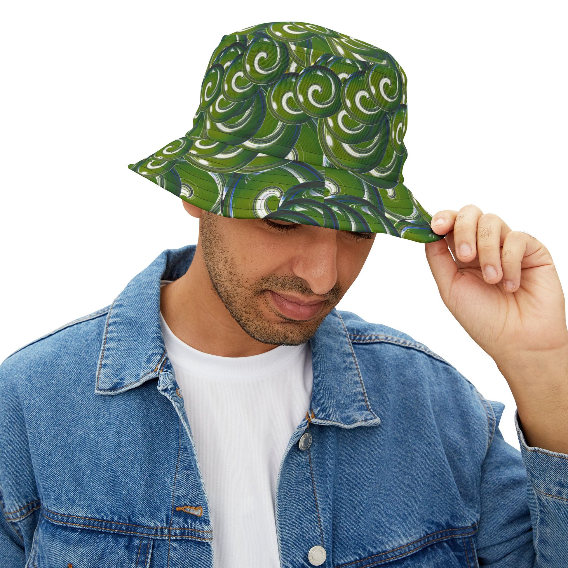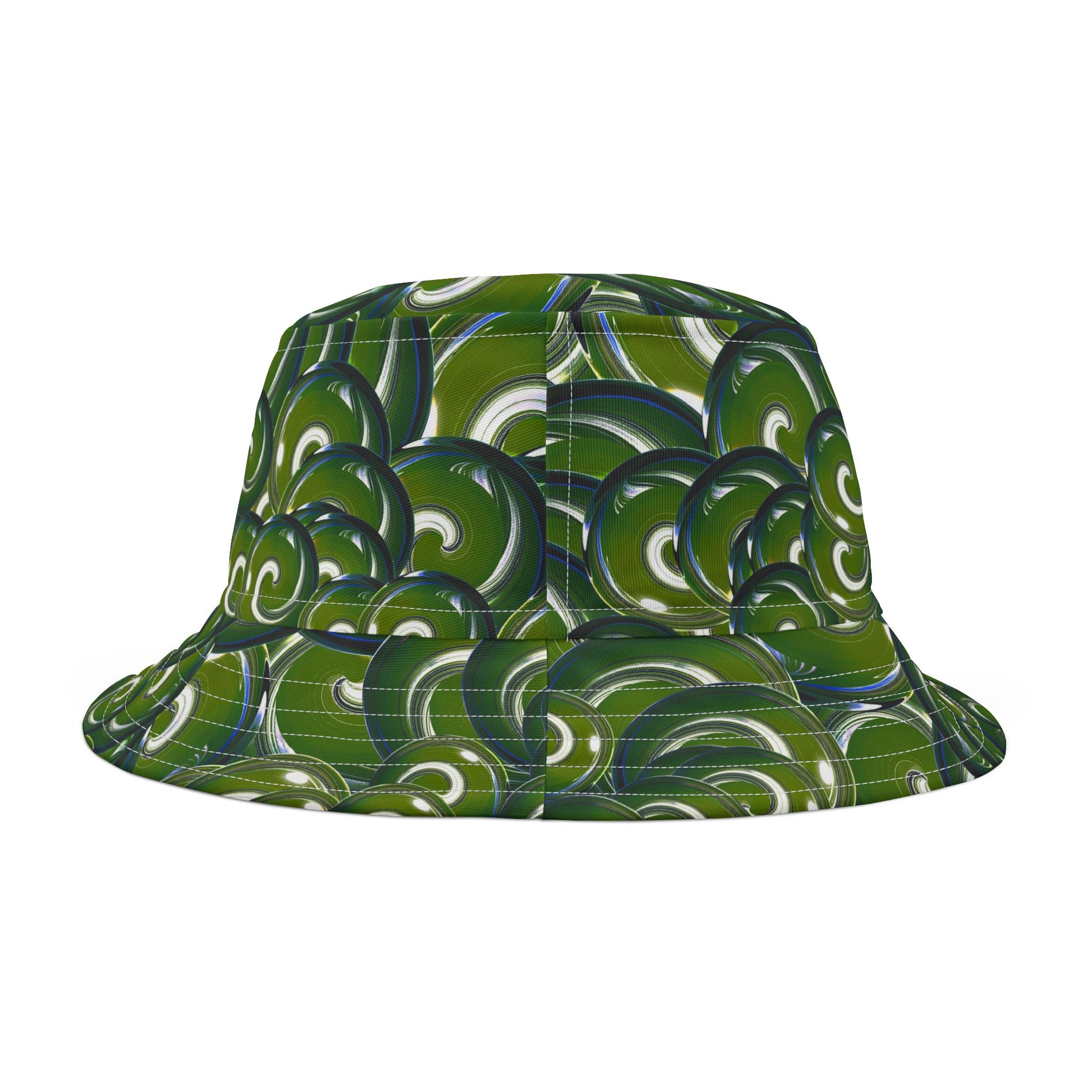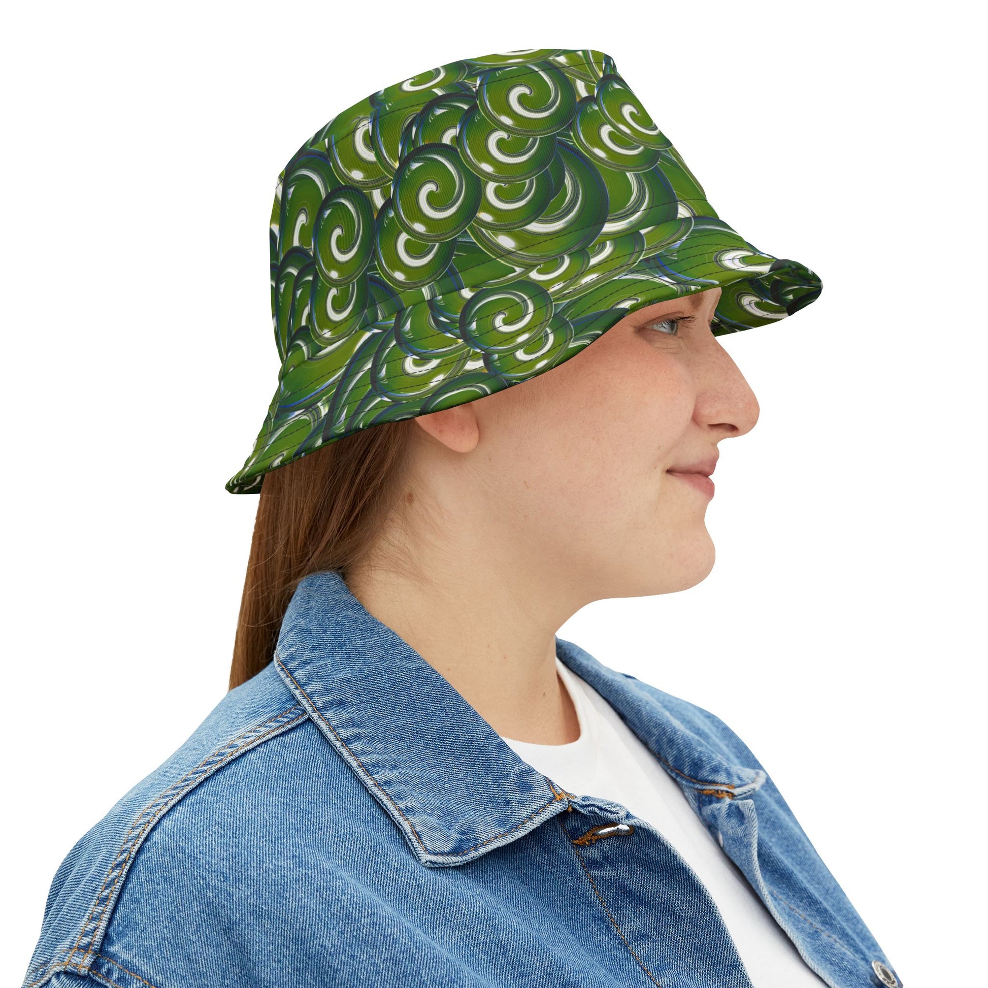 Green Swirl Pattern Bucket Hat – All-Over Print Casual Sun Hat