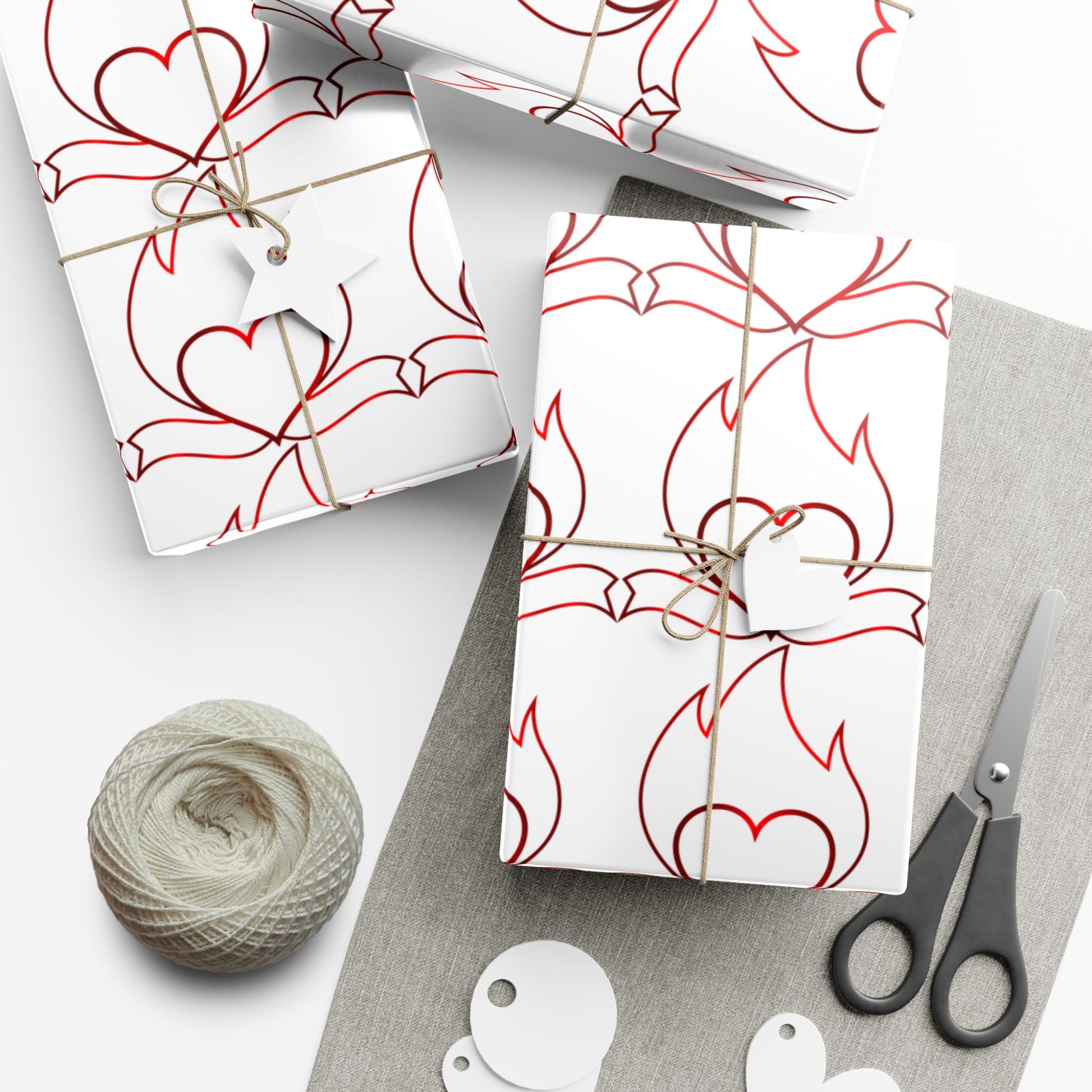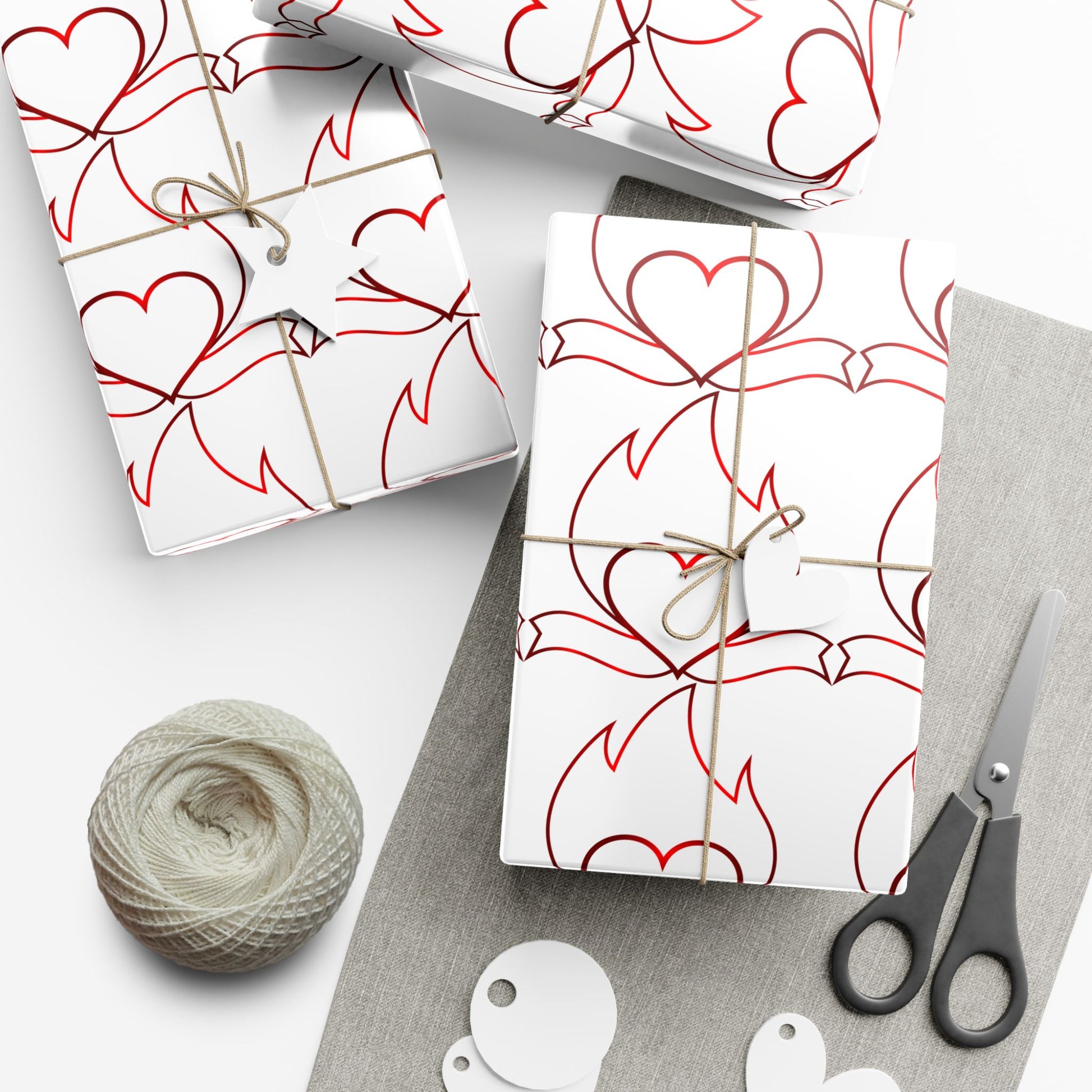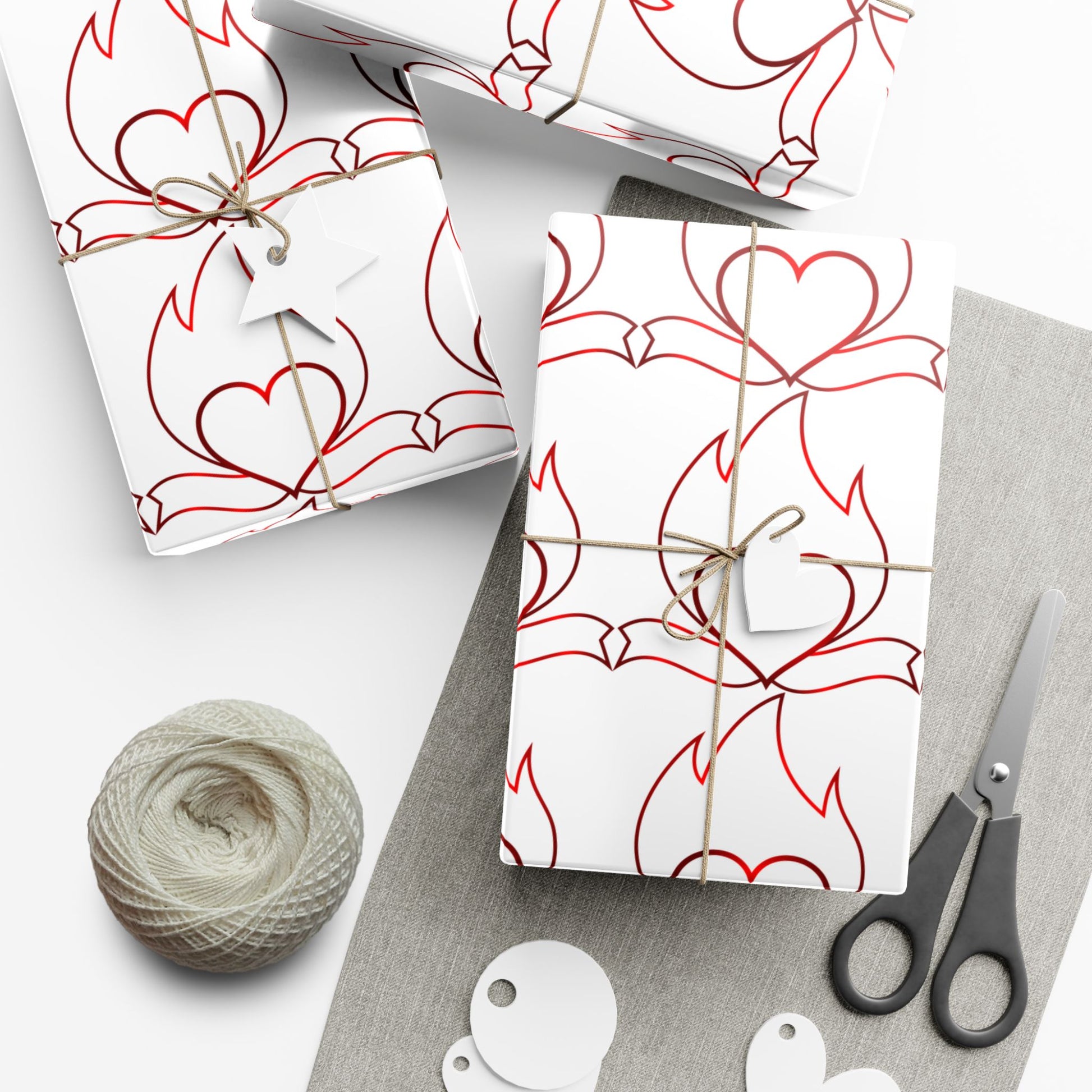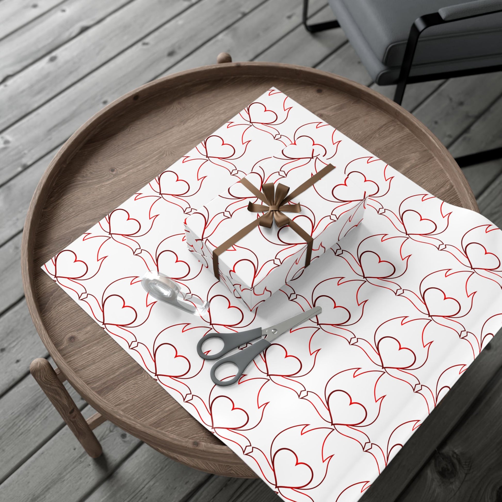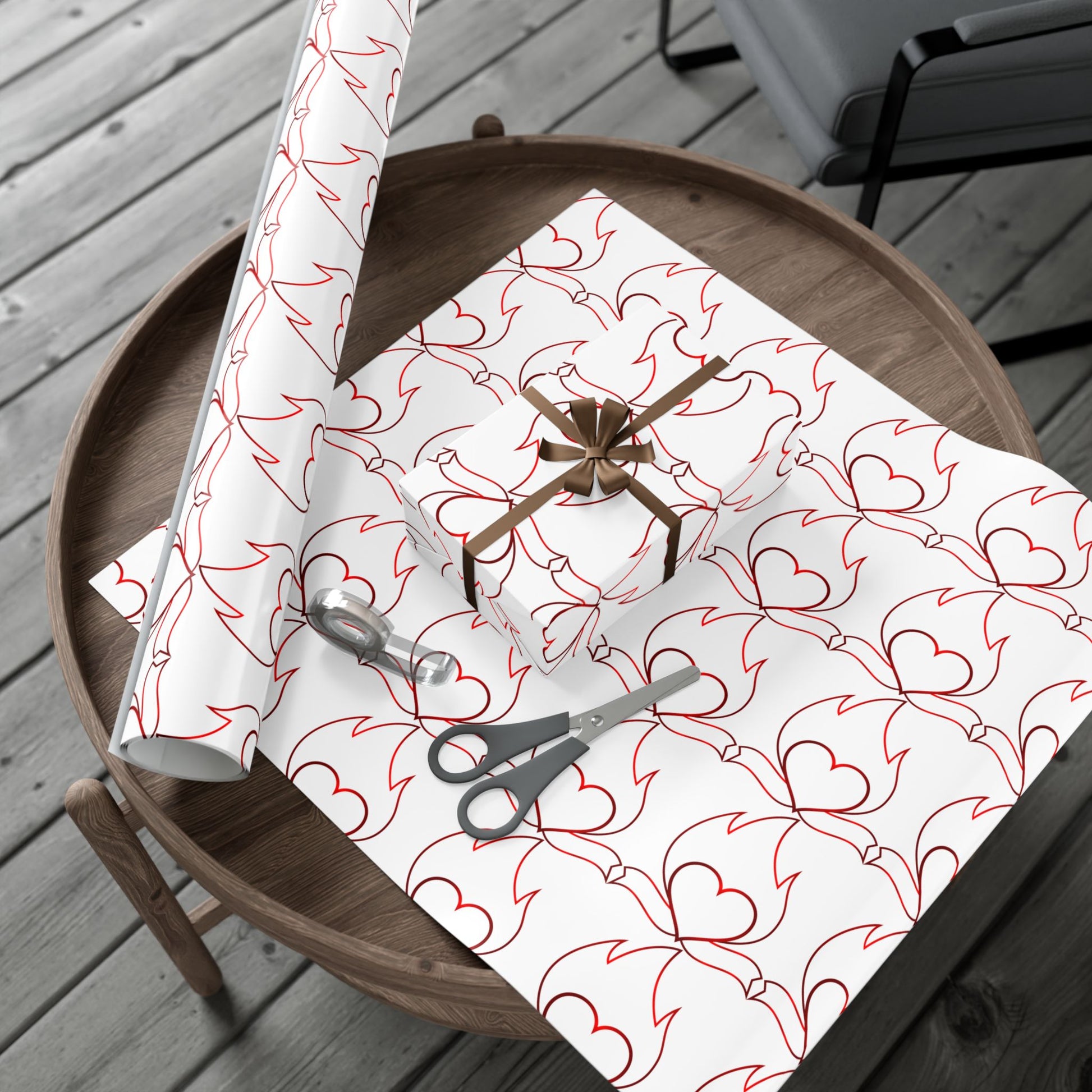 A sheet of gift wrap that turns ordinary packages into thoughtful, artful moments. The repeating, hand-drawn heart-and-flourish pattern in warm red lines feels personal — like a love note that wraps around a present. The smooth satin or refined matte finish gives each parcel a polished look, while the durable, flexible paper stands up to folding, tying, and multiple creases without tearing or cracking. Printed with water-based GreenGuard UL certified inks, the design stays bright and true and the paper stays recyclable and eco-conscious. Use it for wedding favors, anniversary surprises, valentines, or any time you want the wrapping to speak as softly and clearly as the gift inside.