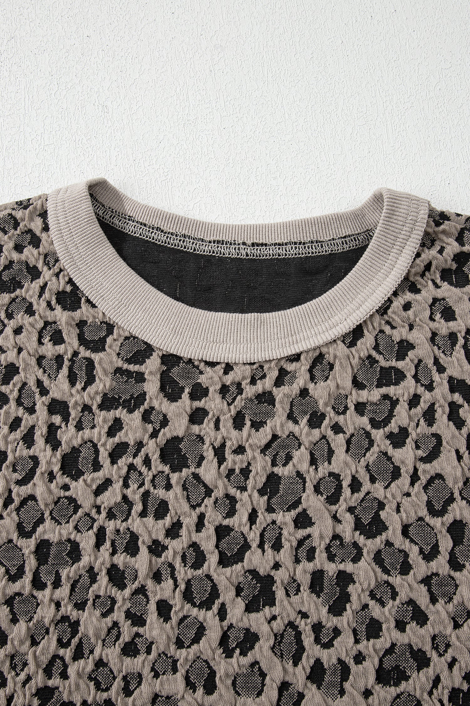 Khaki Jacquard Leopard Half Sleeve Jumper Wide Leg Pant Set
