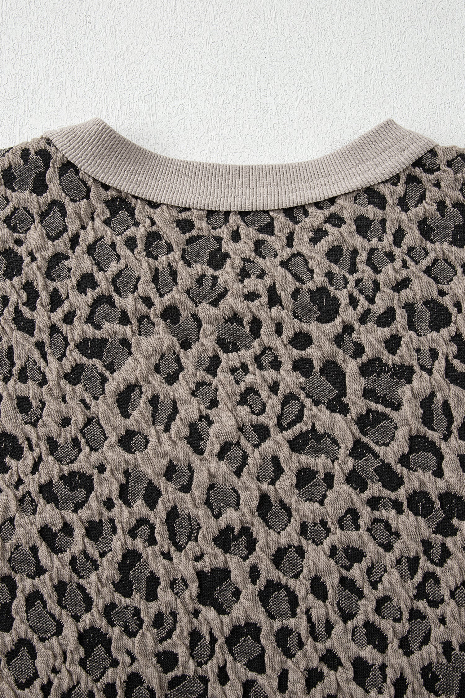 The jacquard leopard print makes this two piece pants set stylish and textured.