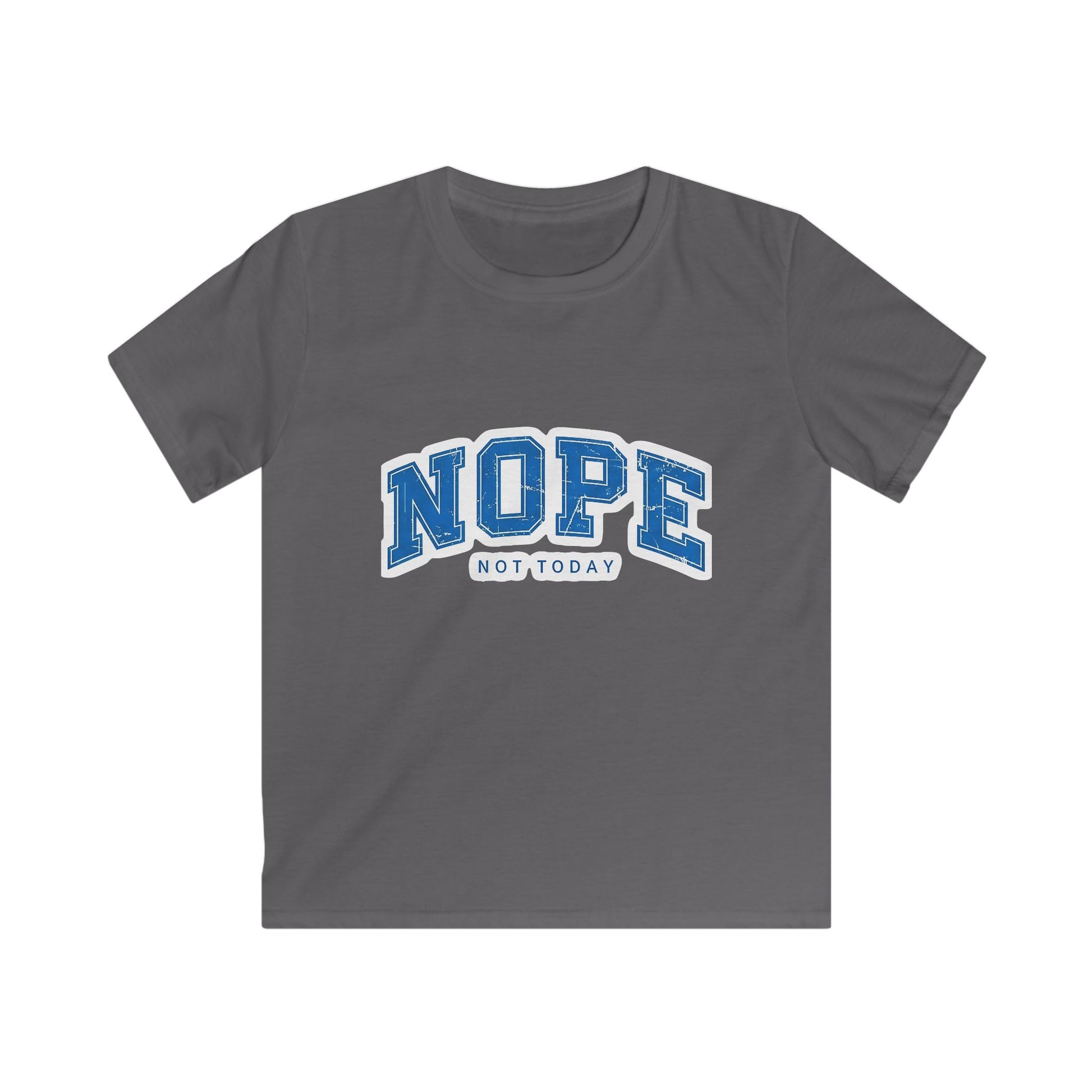 Light, confident, and a little cheeky — this kids tee says it all with bold collegiate lettering that reads “NOPE” and a small “not today” beneath. The soft, smooth fabric and classic fit make it easy for active days at the park, school, or lounging at home. It feels gentle against sensitive skin, keeps its shape after washes, and moves with the kid who’d rather explore, nap, or say no to chores — all with attitude.