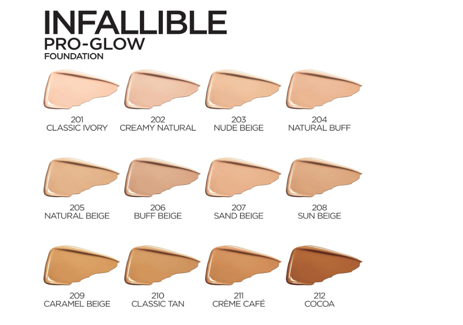 About this item: Infallible Pro Glow Foundation With Spf: Lightweight and creamy, this long lasting medium-coverage foundation goes on smooth and finishes with a glow that lasts; The hydrating foundation with SPF is ideal for normal to dry skin Infallible Face Makeup: Everything from the Infallible foundations, contour kits, and powders are professionally formulated for an expert look that lasts for hours on end, so you get color, definition and coverage that lasts The Foundation Of Your Look: From BB creams to blush, L'Oréal has everything you need for a smooth, even finish; Highlight to illuminate your look, use concealer to hide imperfections or apply contouring makeup for enhanced, defined features Because You're Worth It: L'Oréal Paris helps you create the look you want with our full line of makeup including foundations, concealers, highlighter makeup, eyeshadow palettes, lipsticks and much more Perfect To Pair With: Try with our Infallible Pro Glow Face Primer to prepare, perfect and illuminate while it hydrates skin for better makeup application