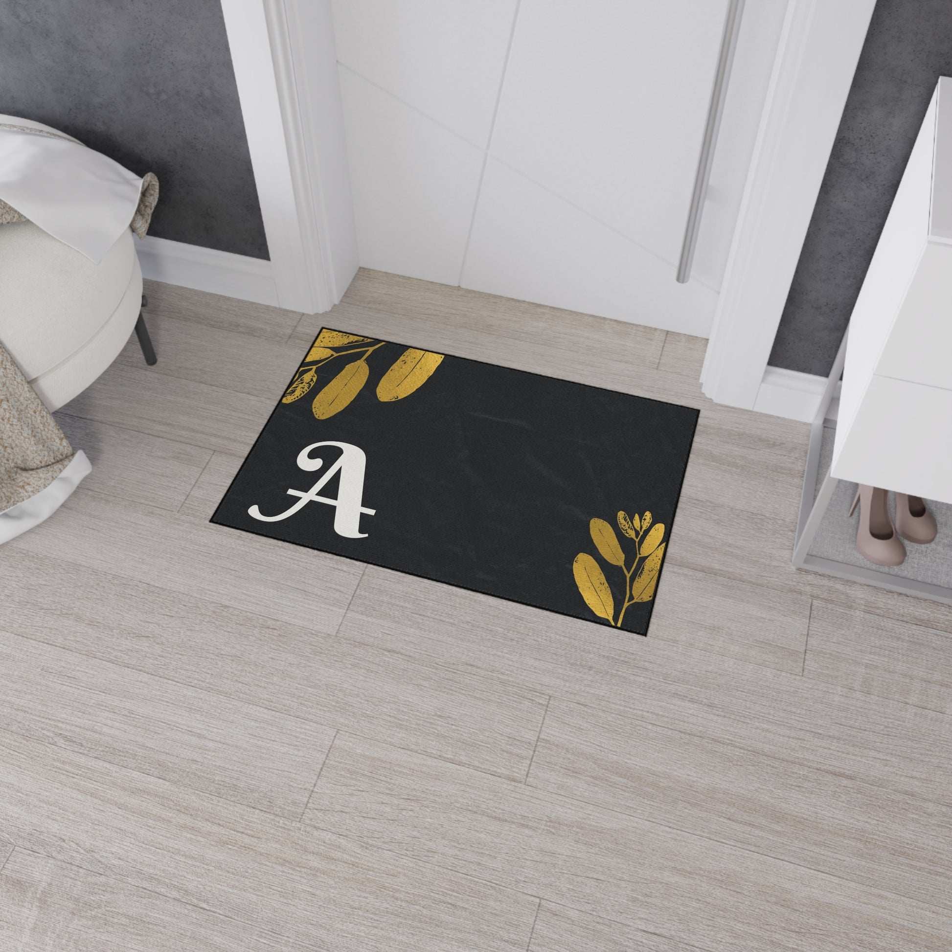 Monogram A Heavy Duty Floor Mat — Black & Gold Botanical Doormat