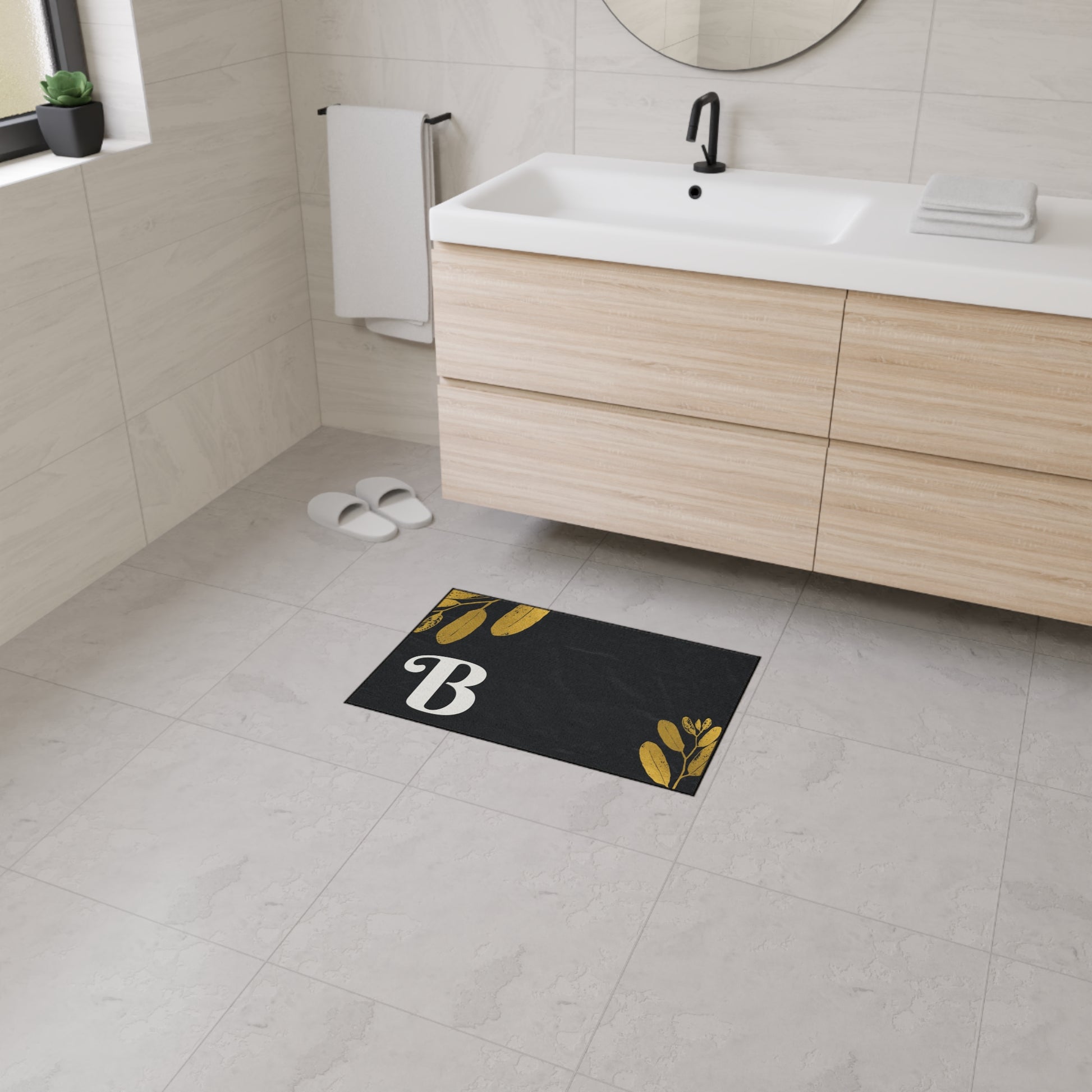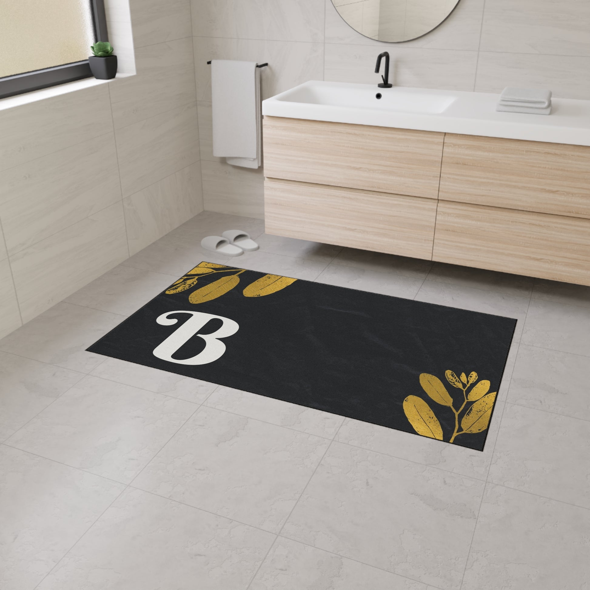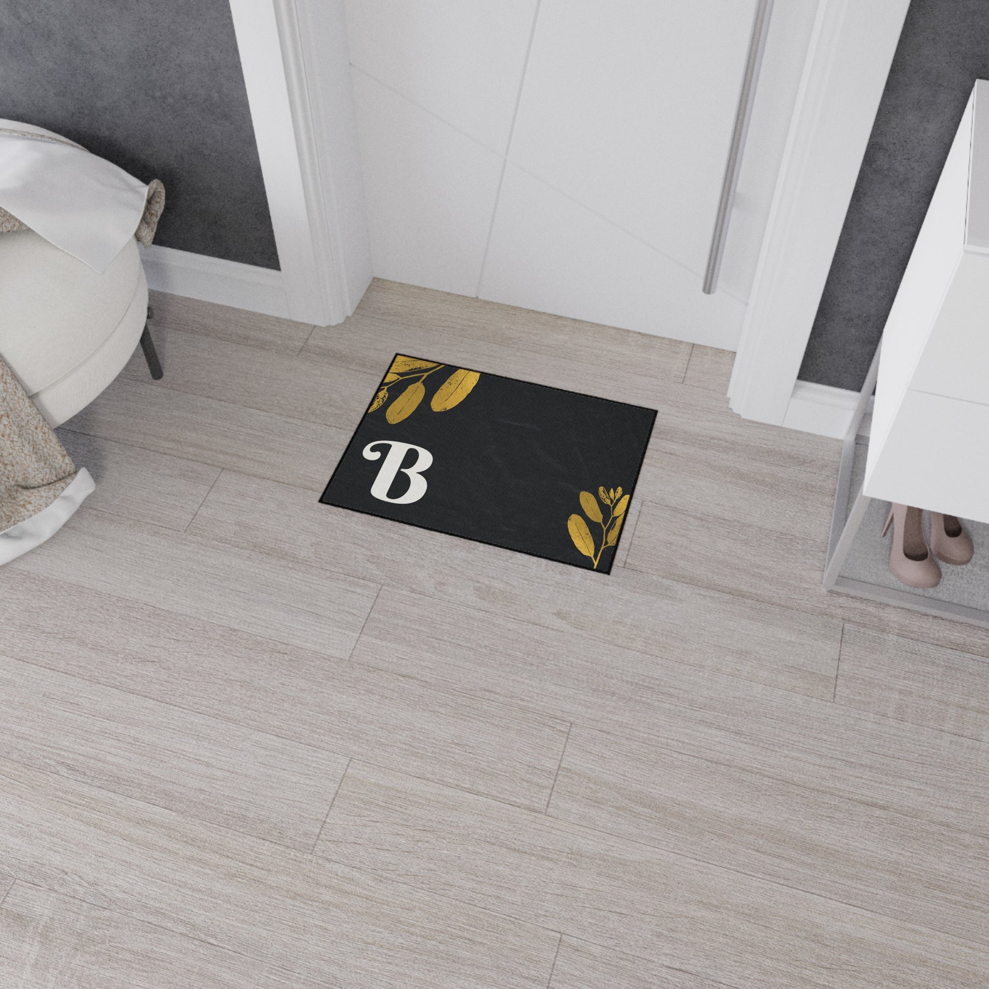 Monogram B Heavy Duty Floor Mat — Black & Gold Botanical Doormat