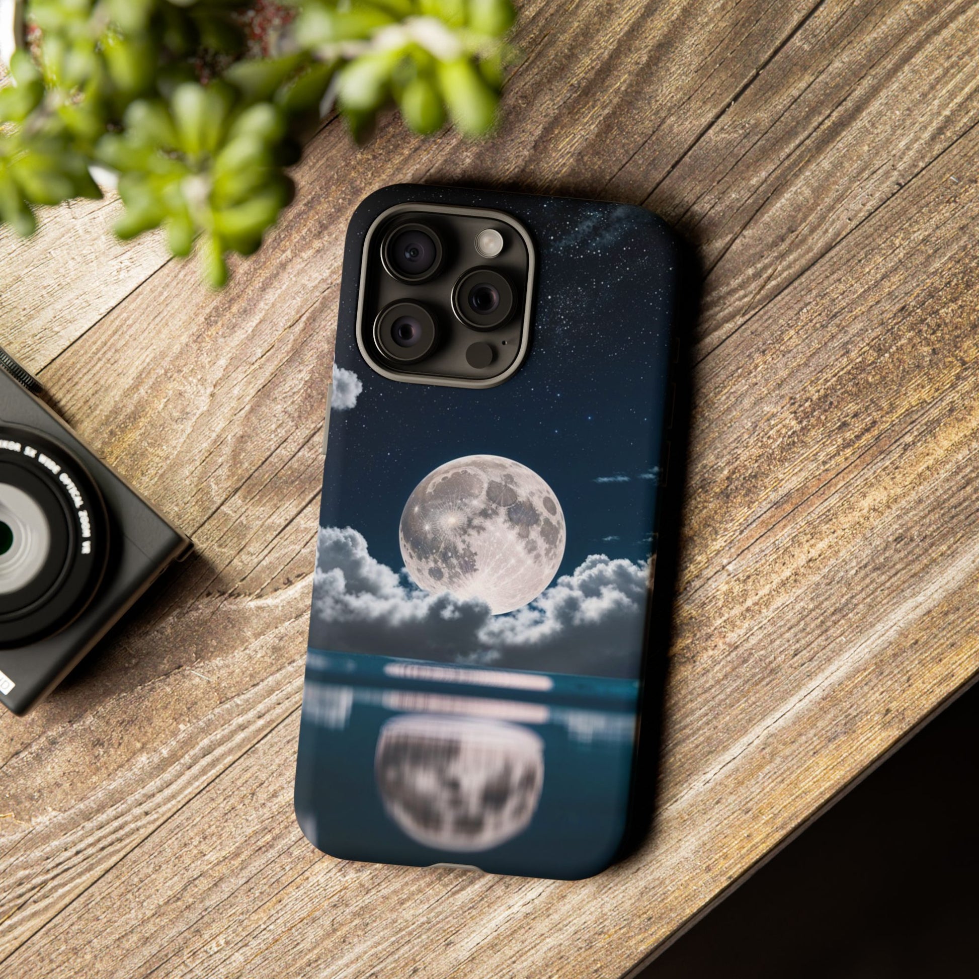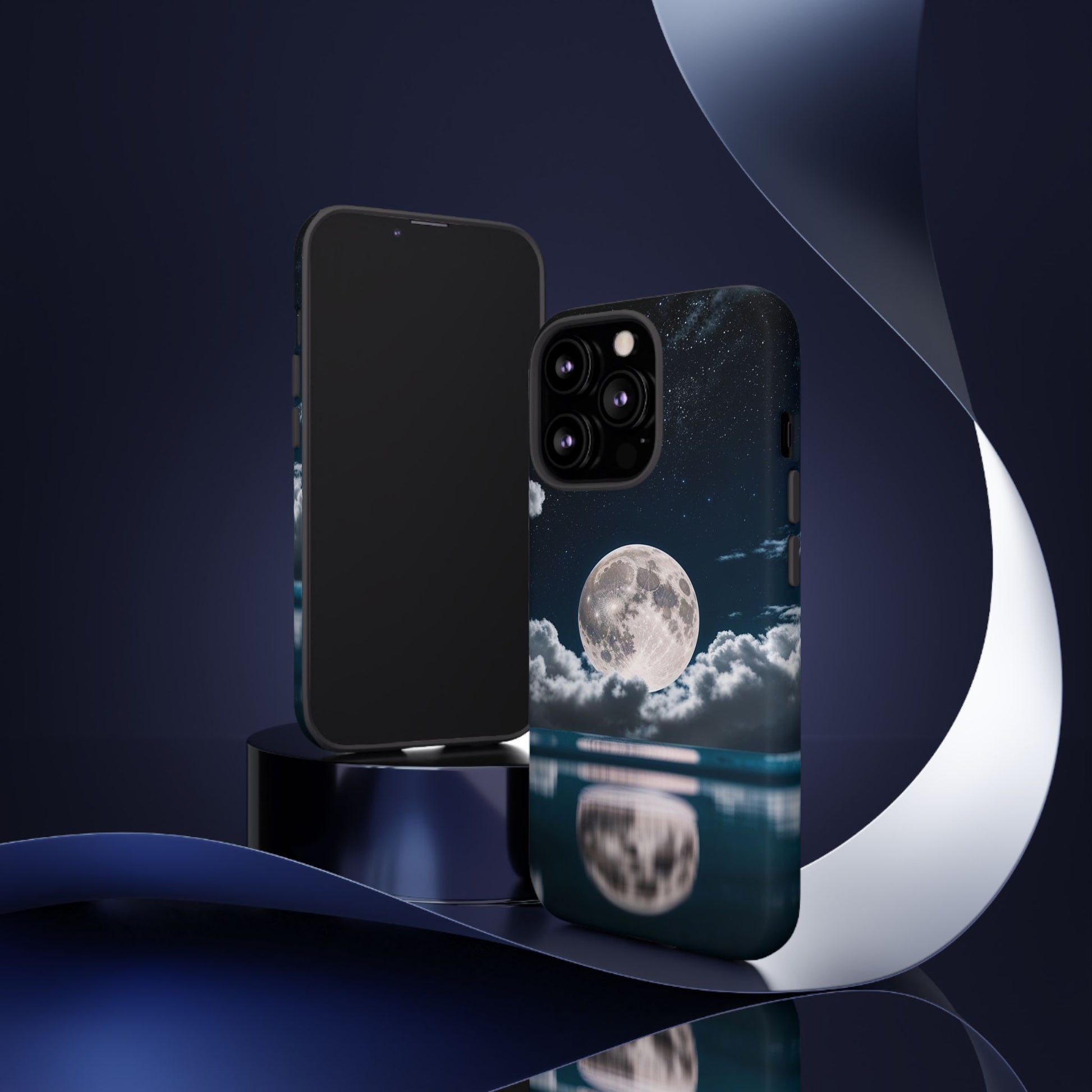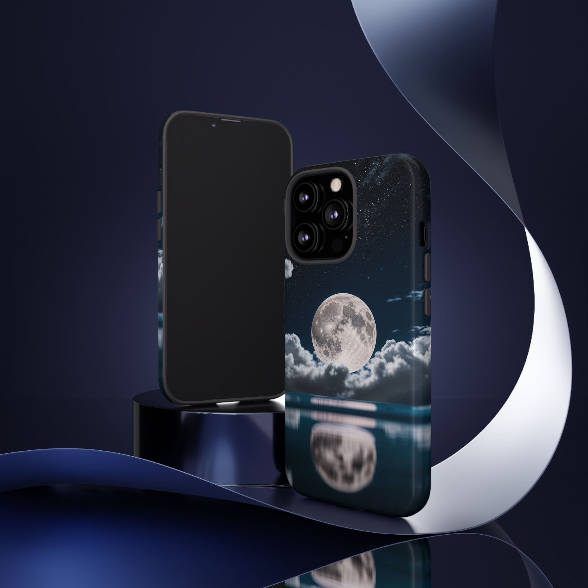 Moonlit Reflection Phone Case — Night Sky Moon & Clouds Tough Case