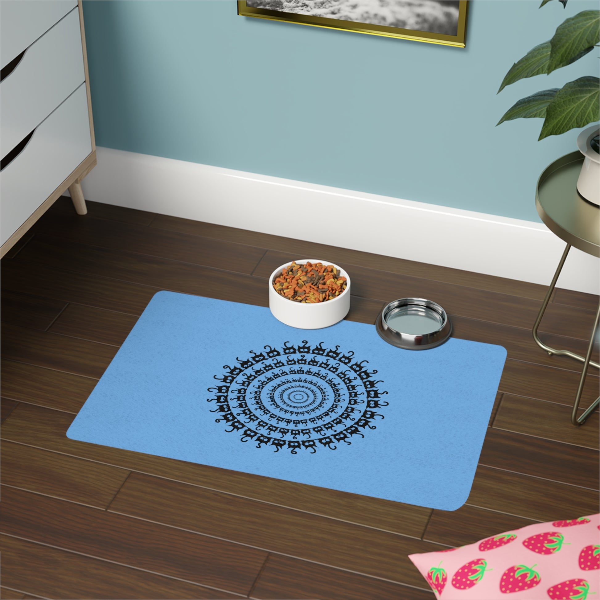 Pet Food Mat — Blue Mandala Paw Print Design (12x18)