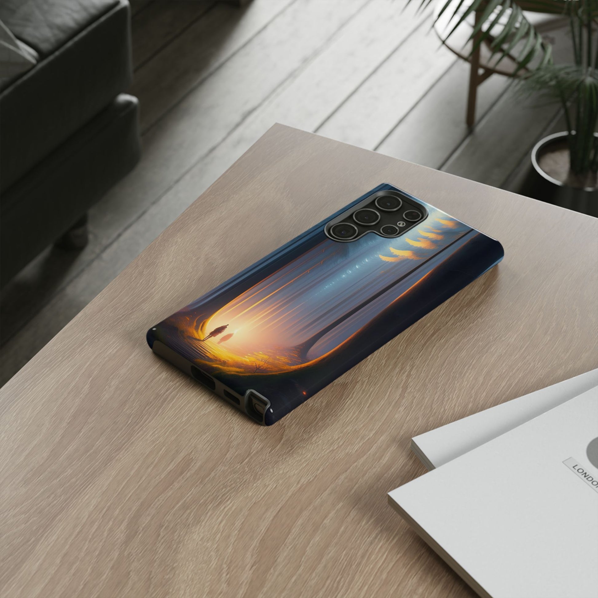 Carry a sliver of wonder with you. This slim, dual-layer phone case wraps a dreamy, cinematic landscape around your device — misty vertical light, distant glowing figures, and a warm horizon that feels like a remembered evening walk. It’s for people who notice atmosphere: the way city lights blur after rain, the hush before a show, or the small companionship of someone at your side. The case protects without hiding the artwork; glossy or matte finishes let the colors sing or soften to a subtle mood. Thoughtful cutouts and a snug silicone liner keep your phone safe and usable while the design turns everyday handling into a quiet, evocative moment.