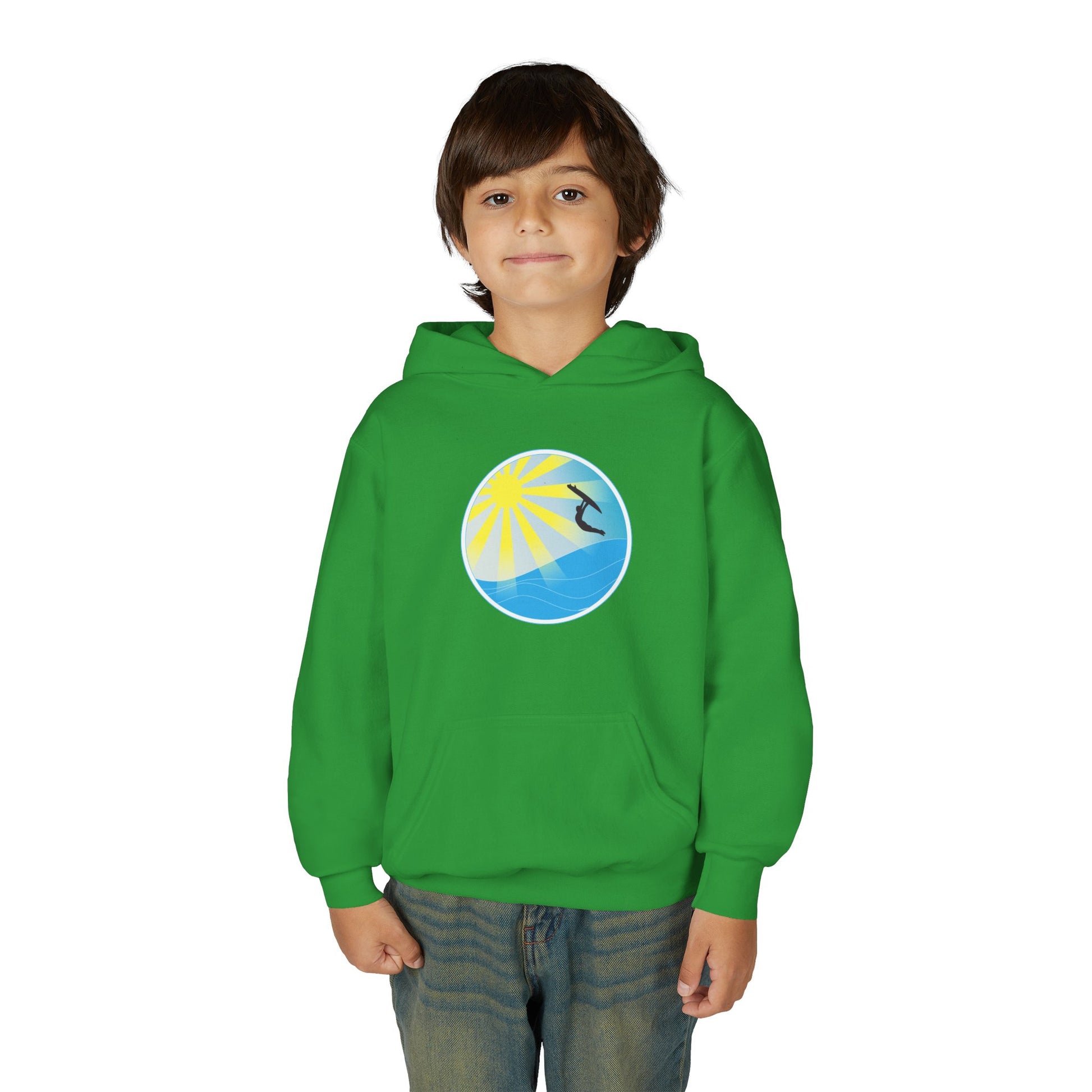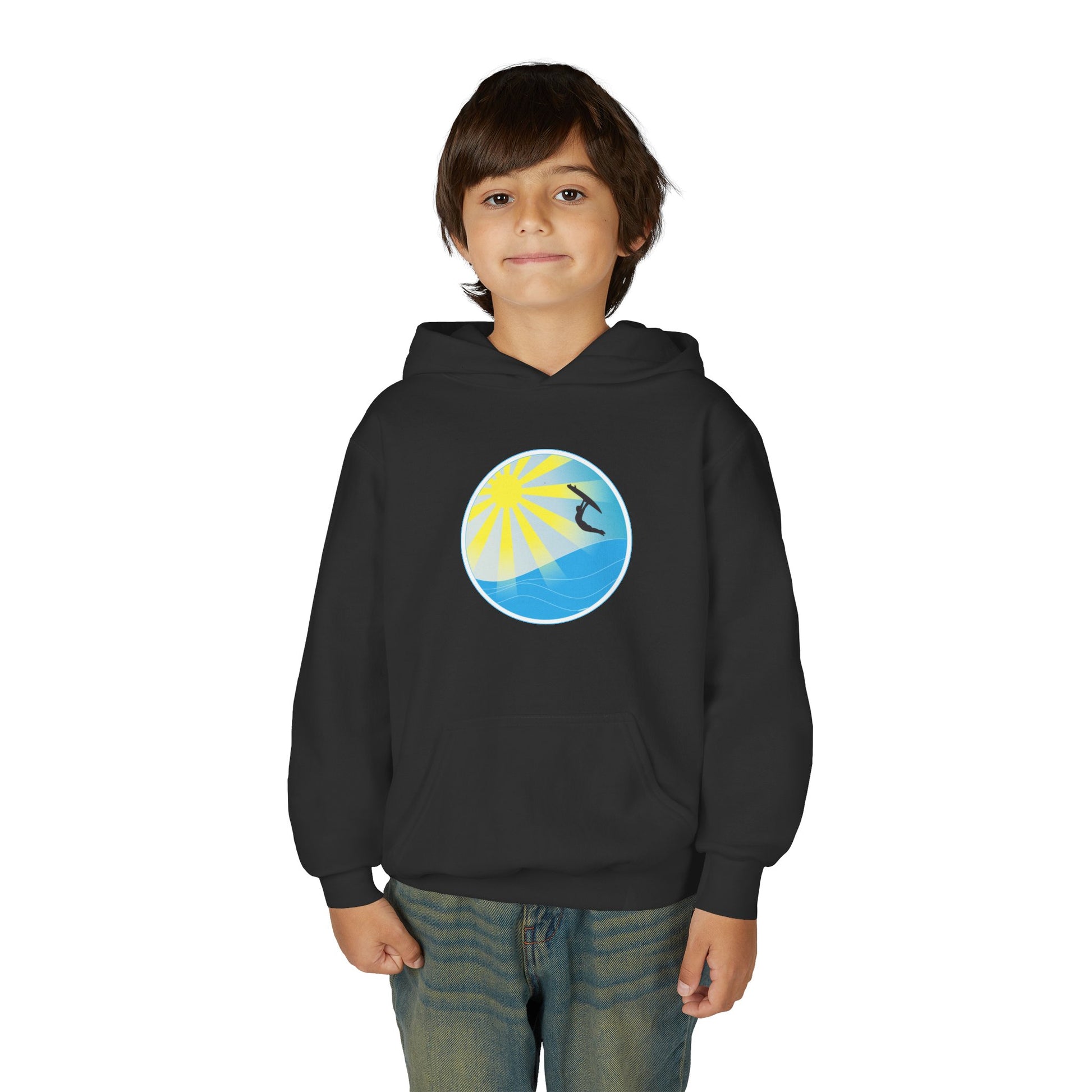 Sunrise Surf Circle Youth Hoodie | Surfing Wave Graphic