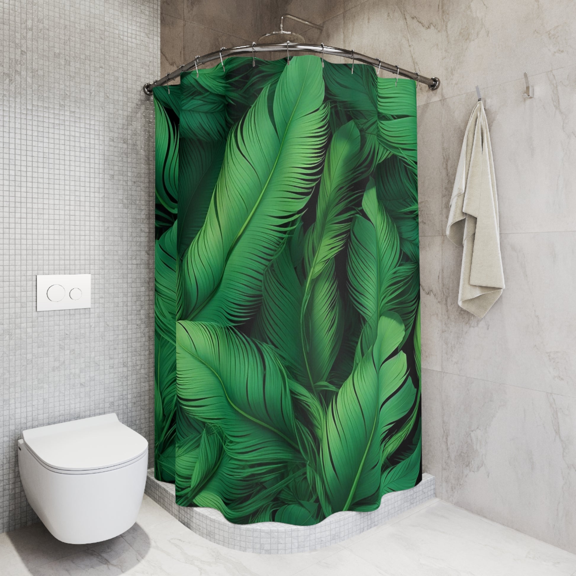 Tropical Leaf Shower Curtain - Lush Green Bathroom Decor, Bohemian Style, Leafy Design, Nature Themed, Gift for Home