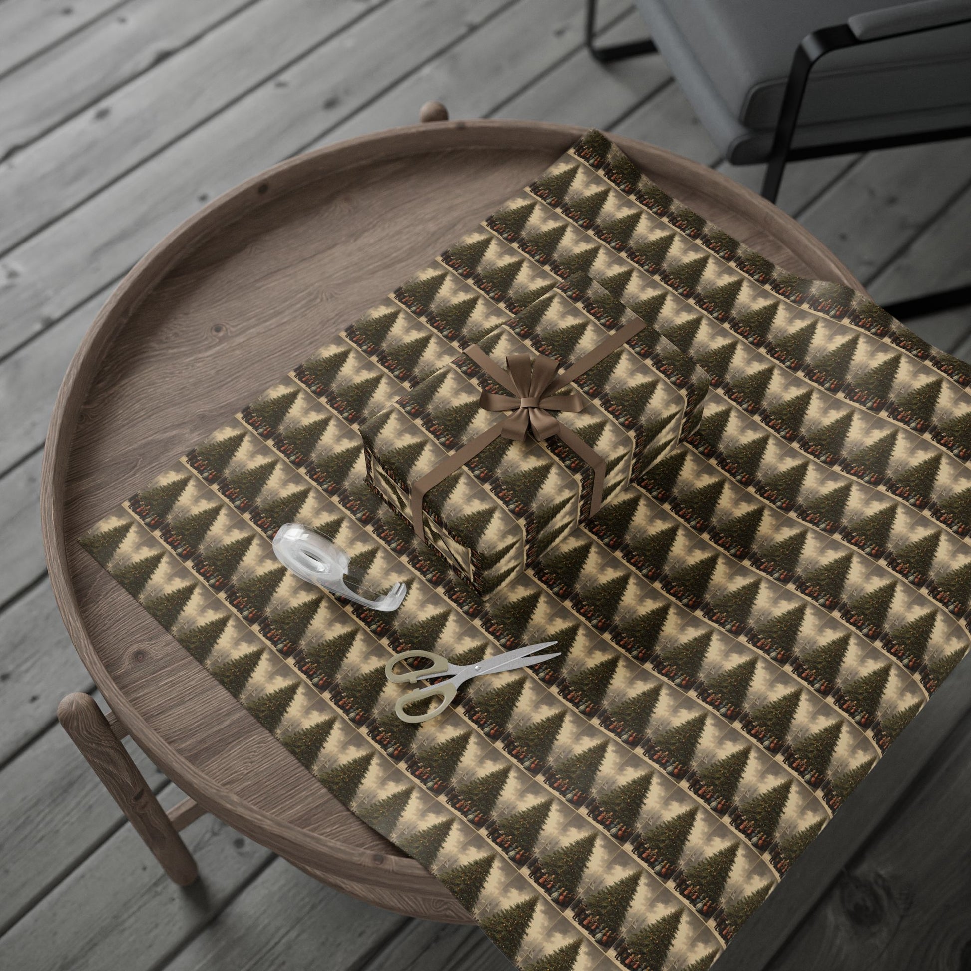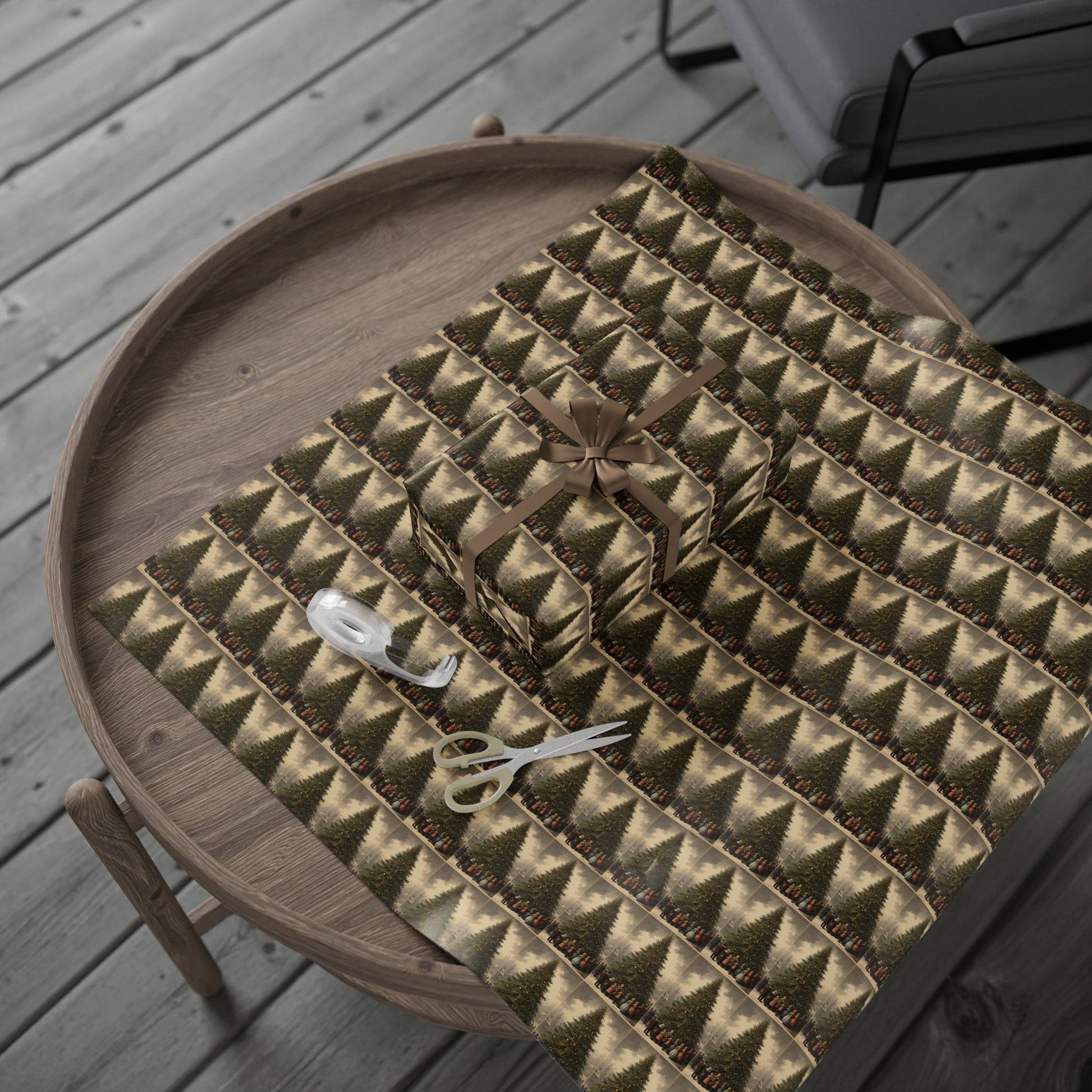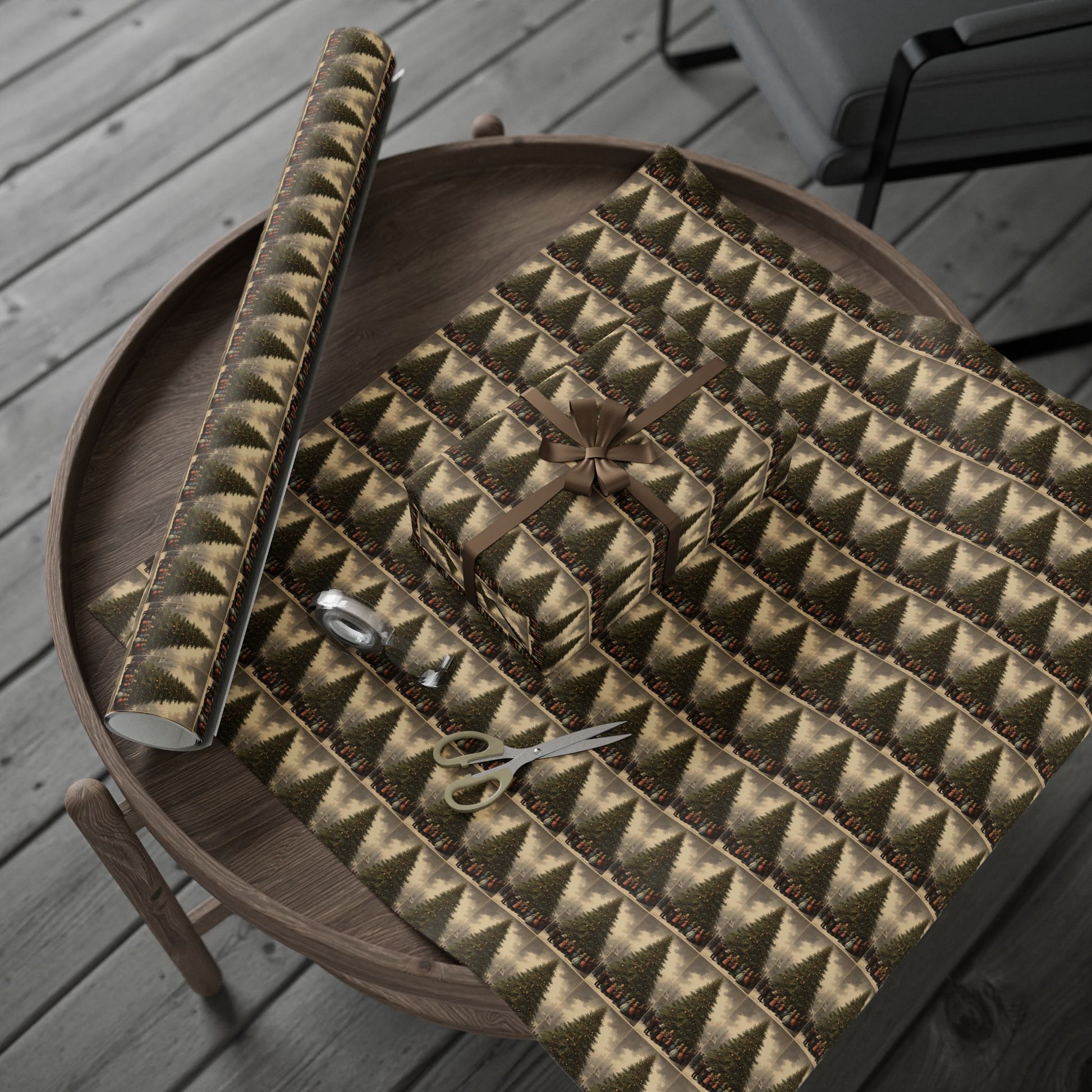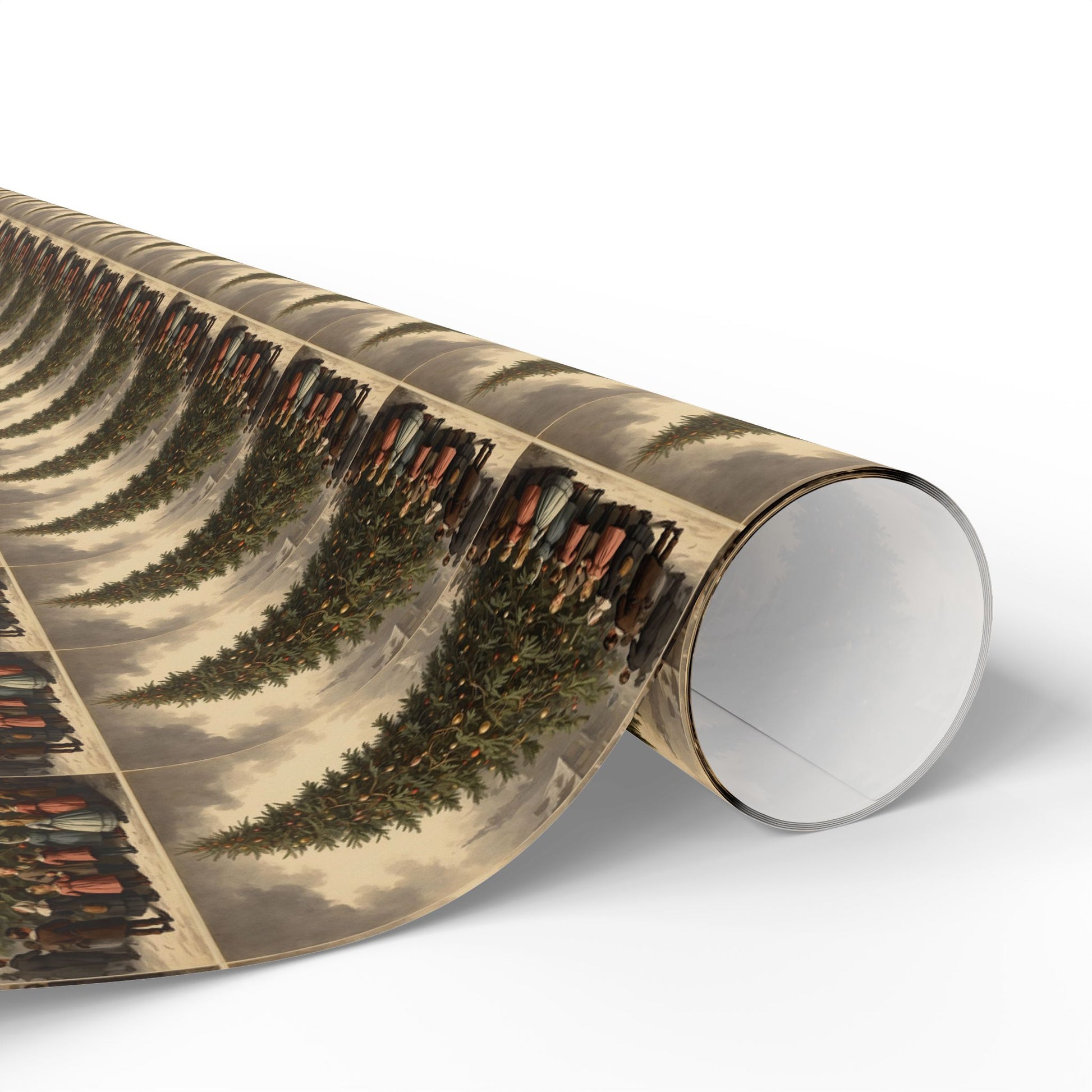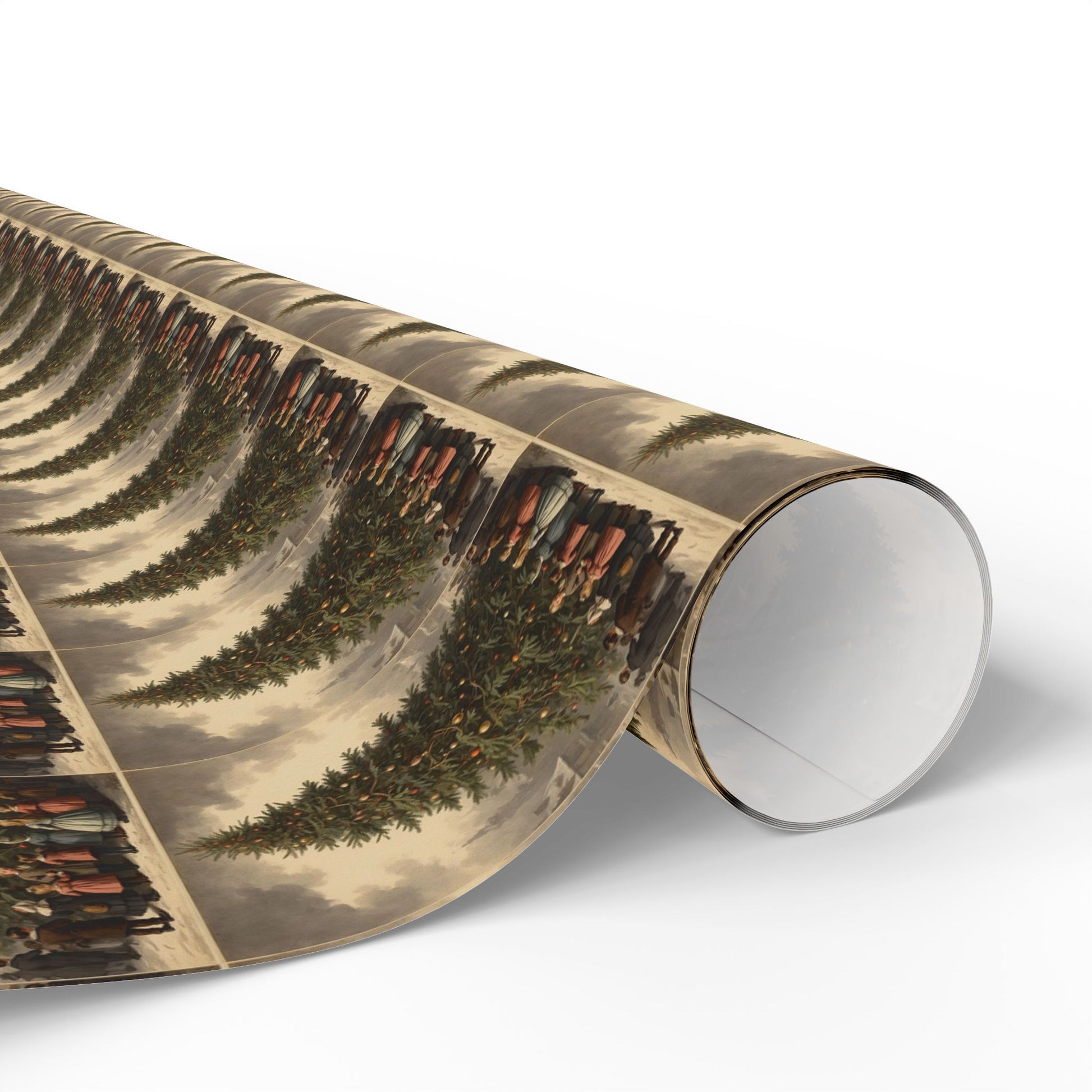 This wrapping paper brings a quiet, vintage holiday mood to your presents. The repeating scene — muted evergreens along a snow-dusted street and cozy houses — feels like an old photograph come to life. Use the long, narrow sheets to wrap bottles, boxes, or to line gift bags; the high-definition print and choice of glossy or matte finish give each parcel a considered, nostalgic look. The subtle tones and classic imagery let the wrapped gift arrive already telling a story of cold evenings, warmly lit windows, and slow walks home.