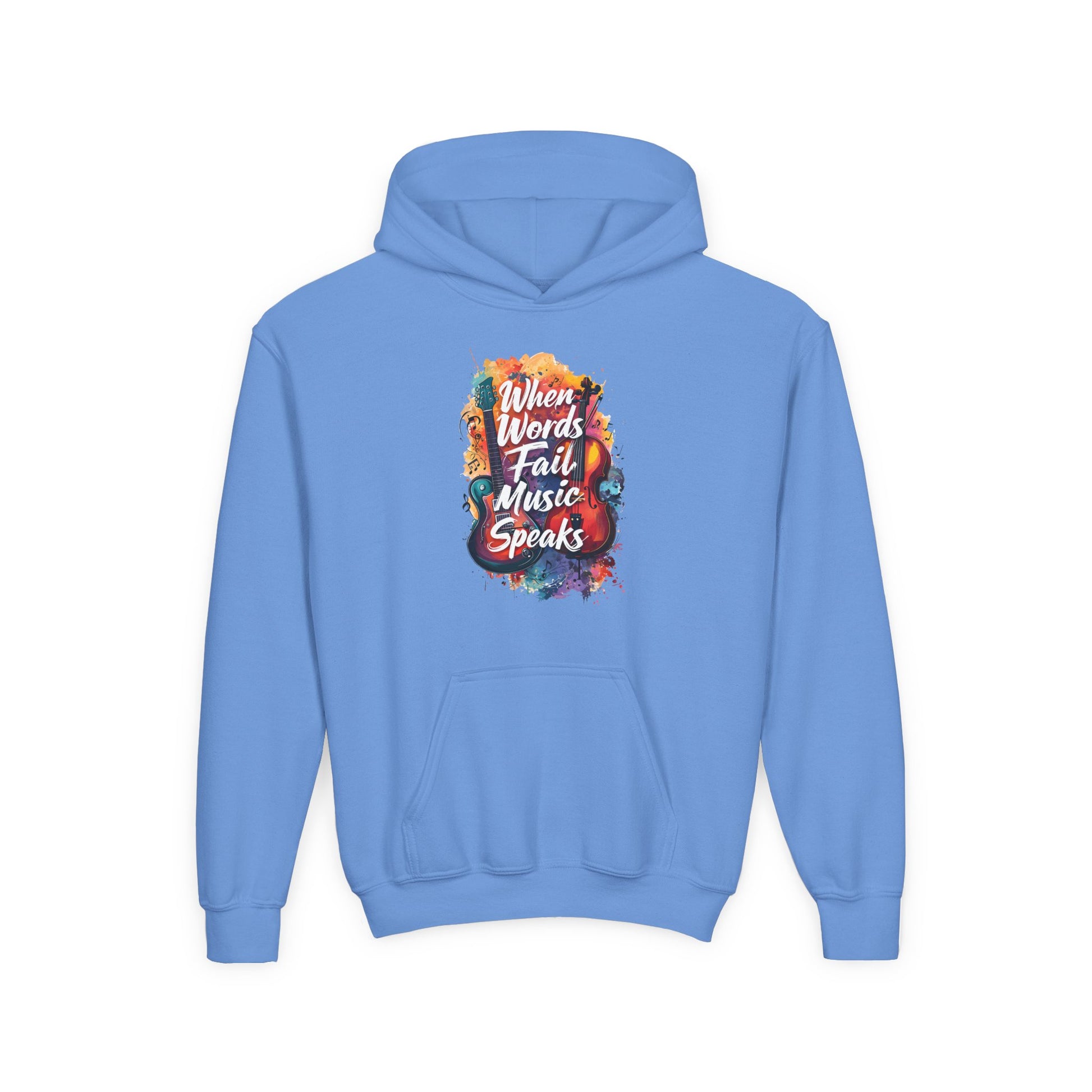 Youth Hoodie — "When Words Fail Music Speaks" Colorful Watercolor Design